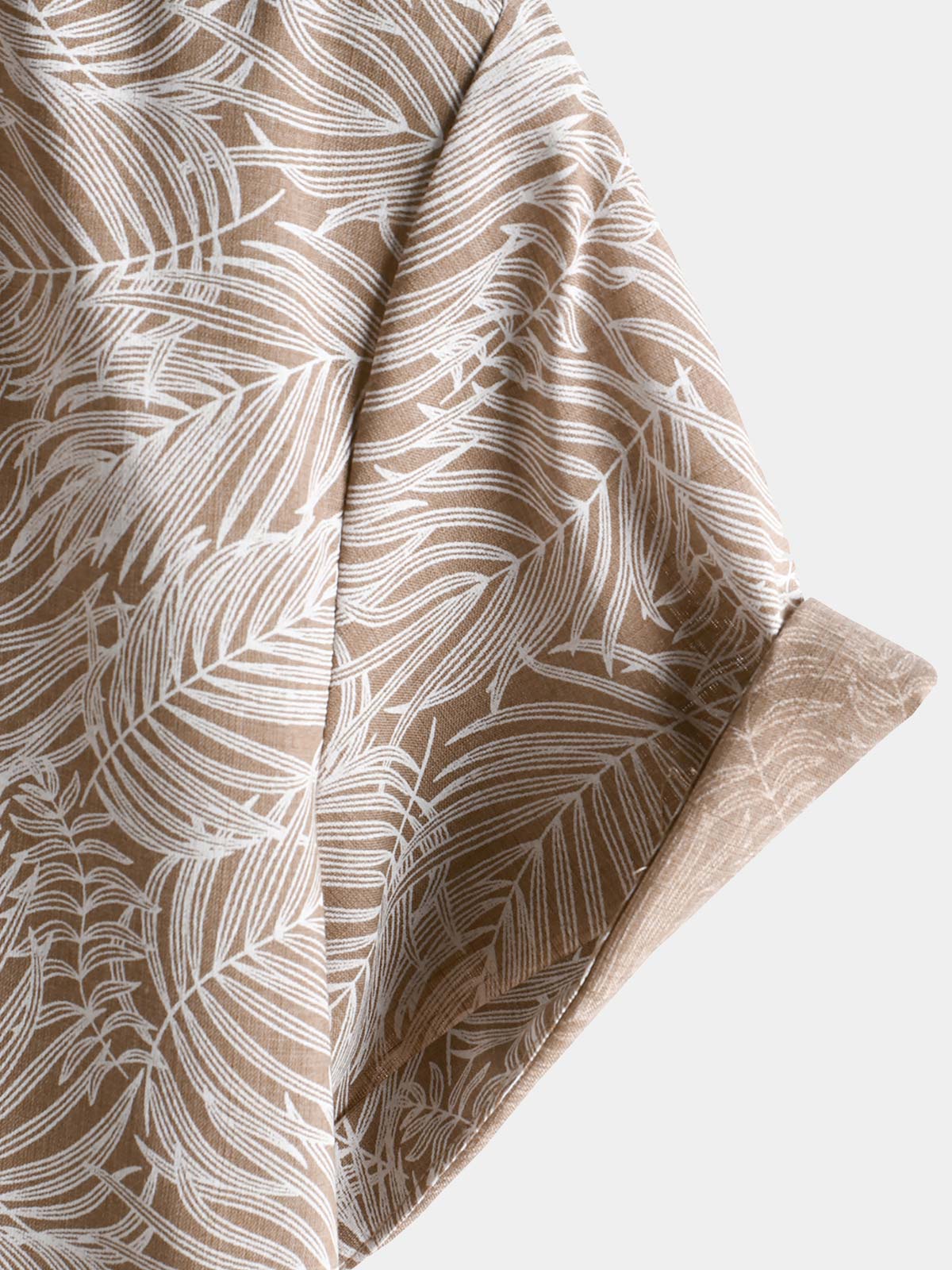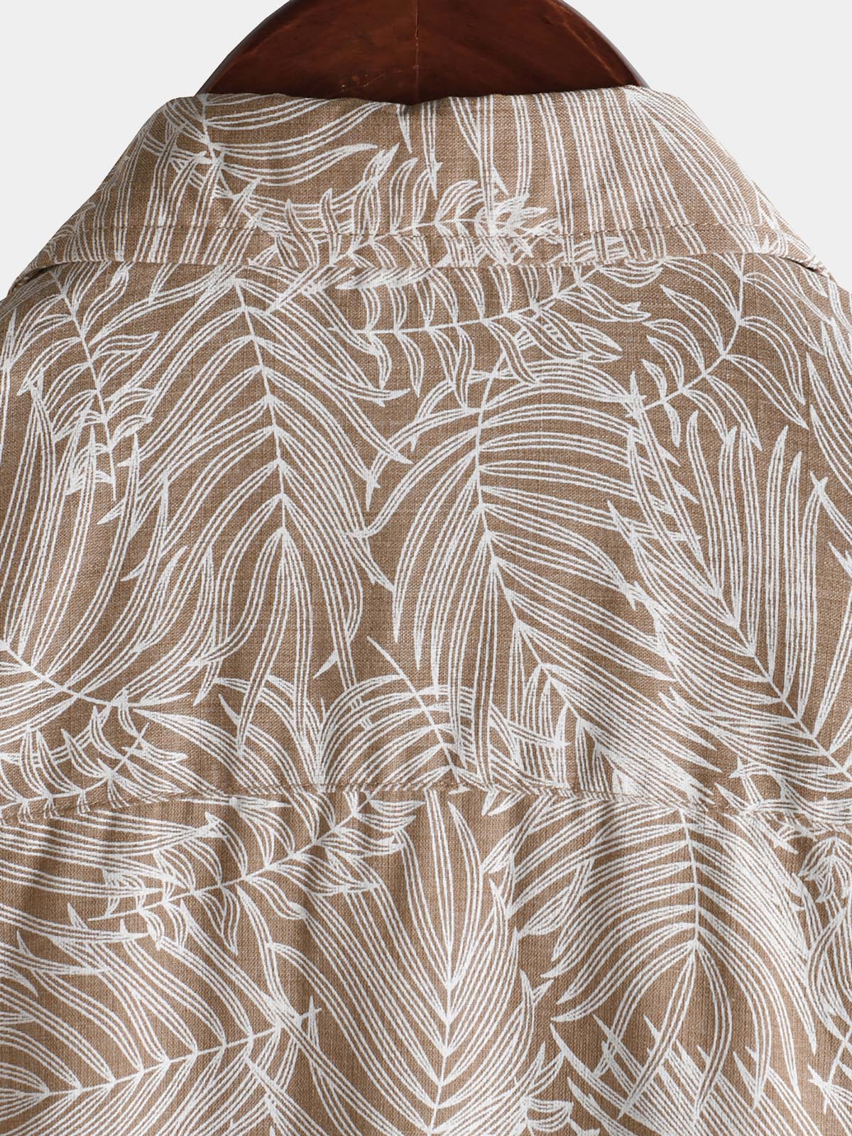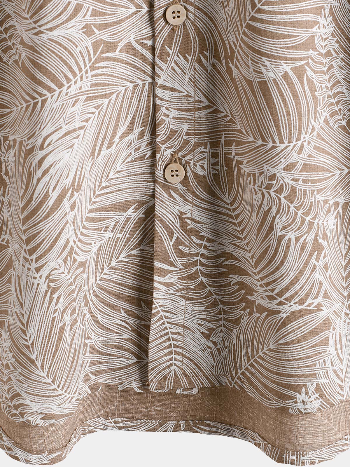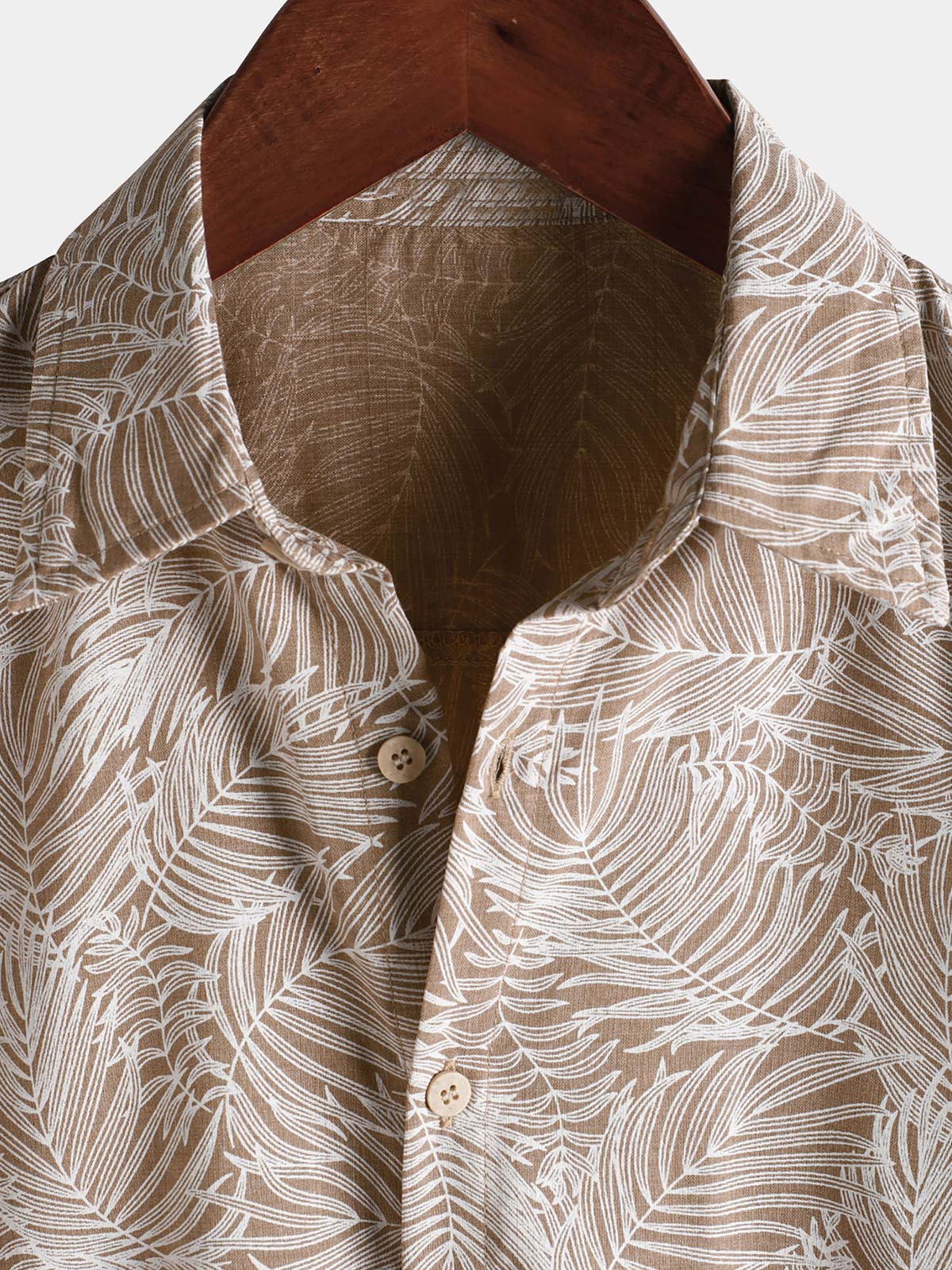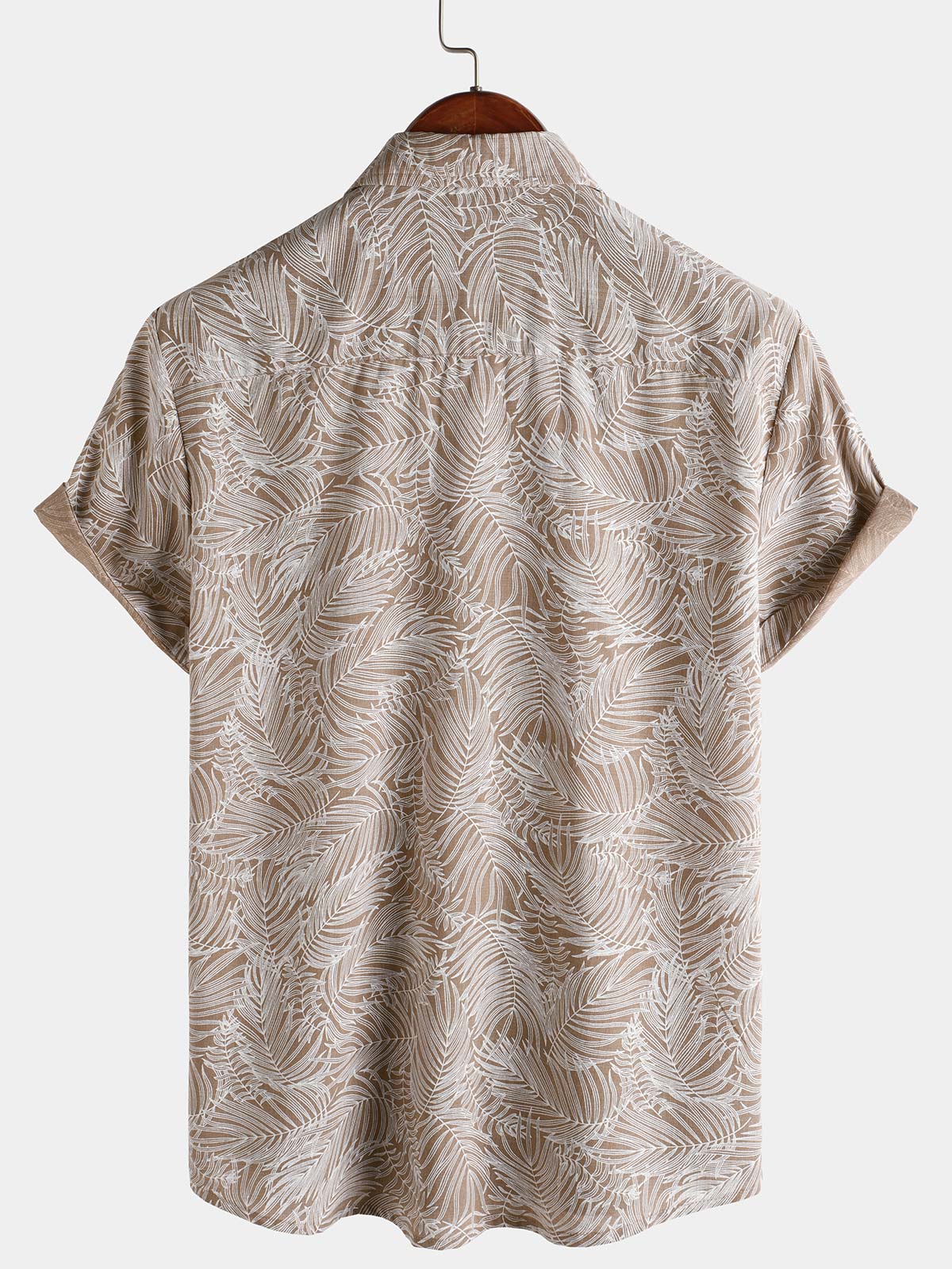 Men's Tropical Khaki Leaf Short Sleeve Summer Hawaiian Shirt