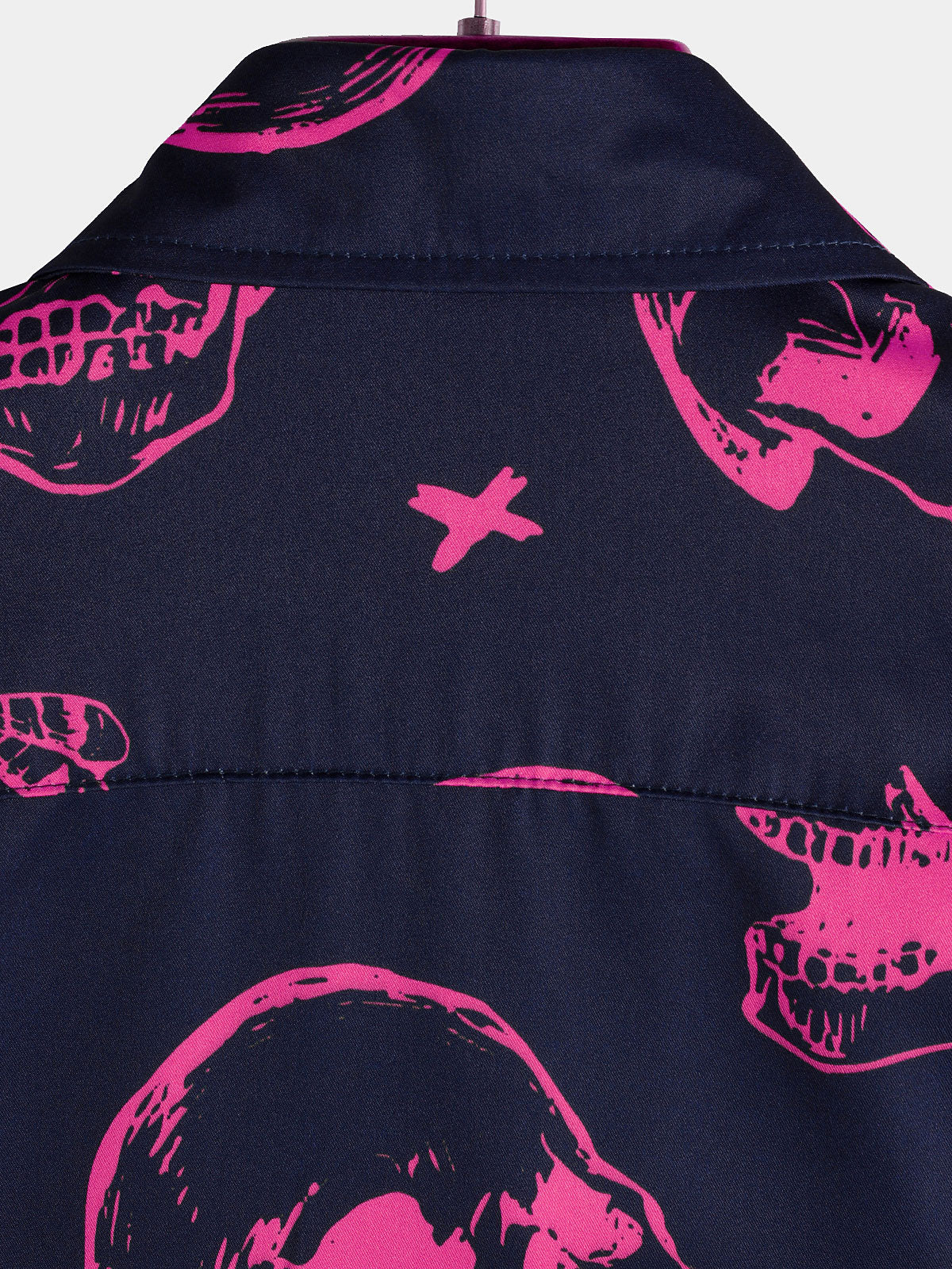 Men's Pink Skull Print Art Graphic Button Short Sleeve Aloha Hawaiian Shirt