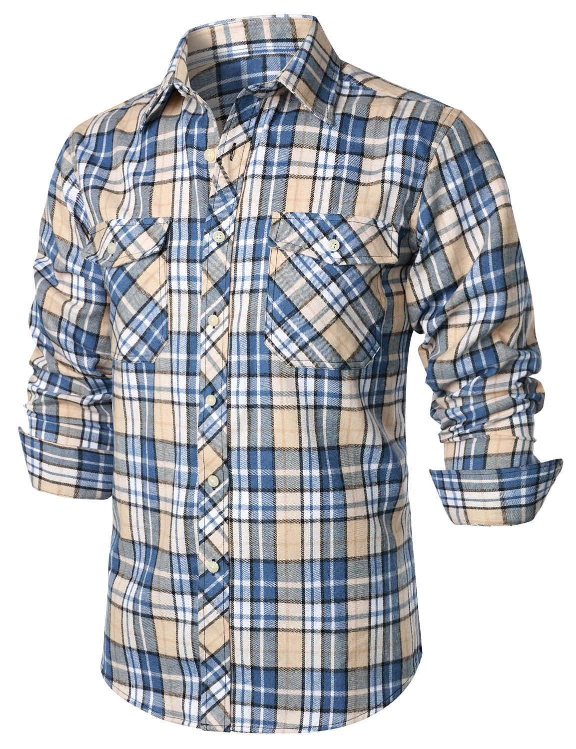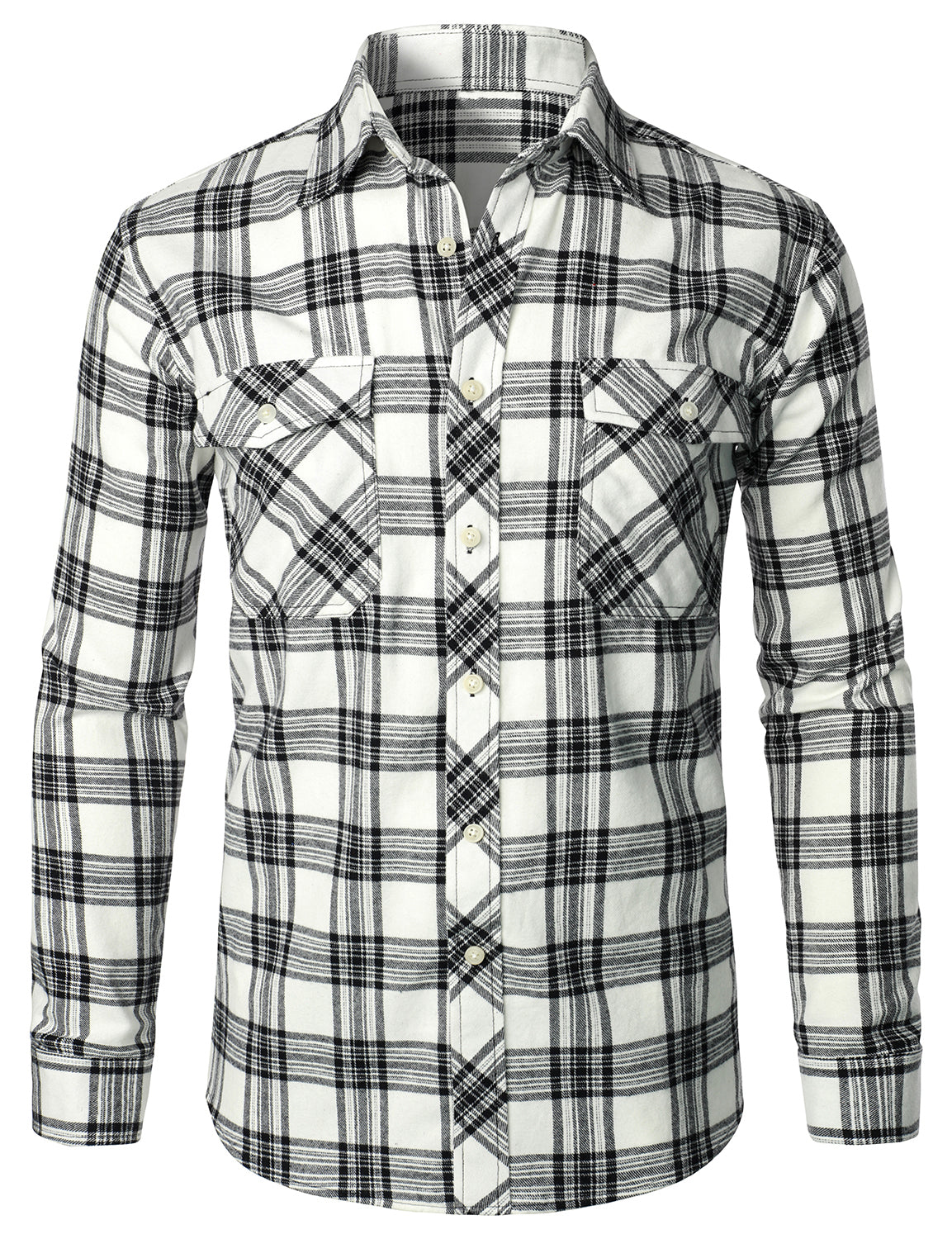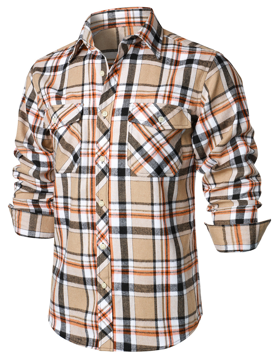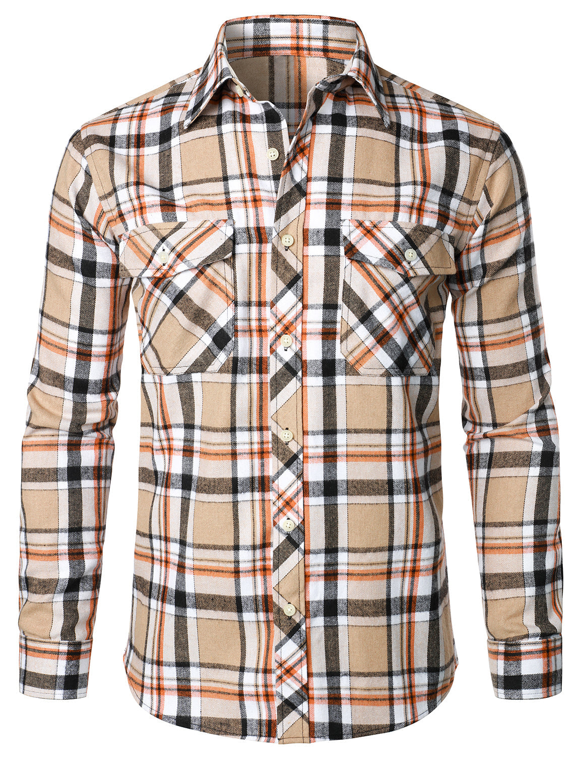 Men's Plaid Double Pocket Button Up Checkered Lapel Long Sleeve Fall Winter Shirt