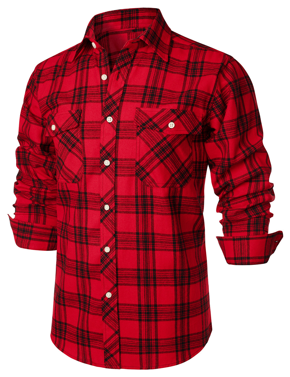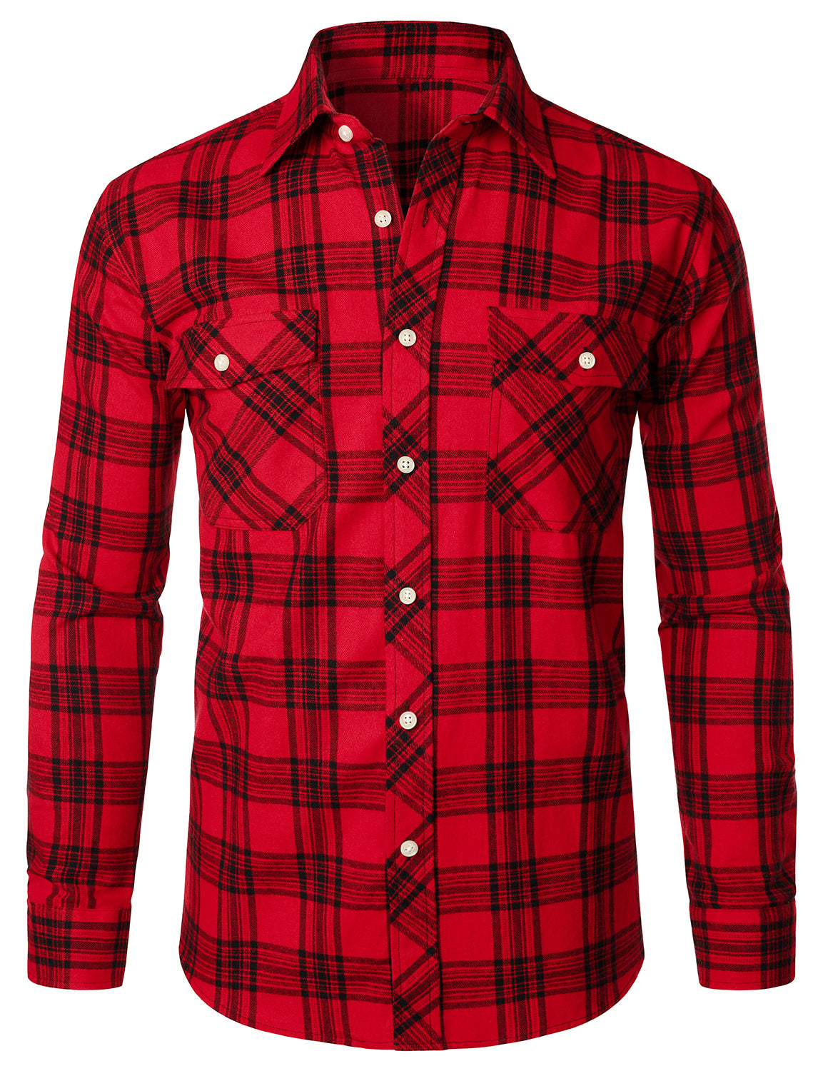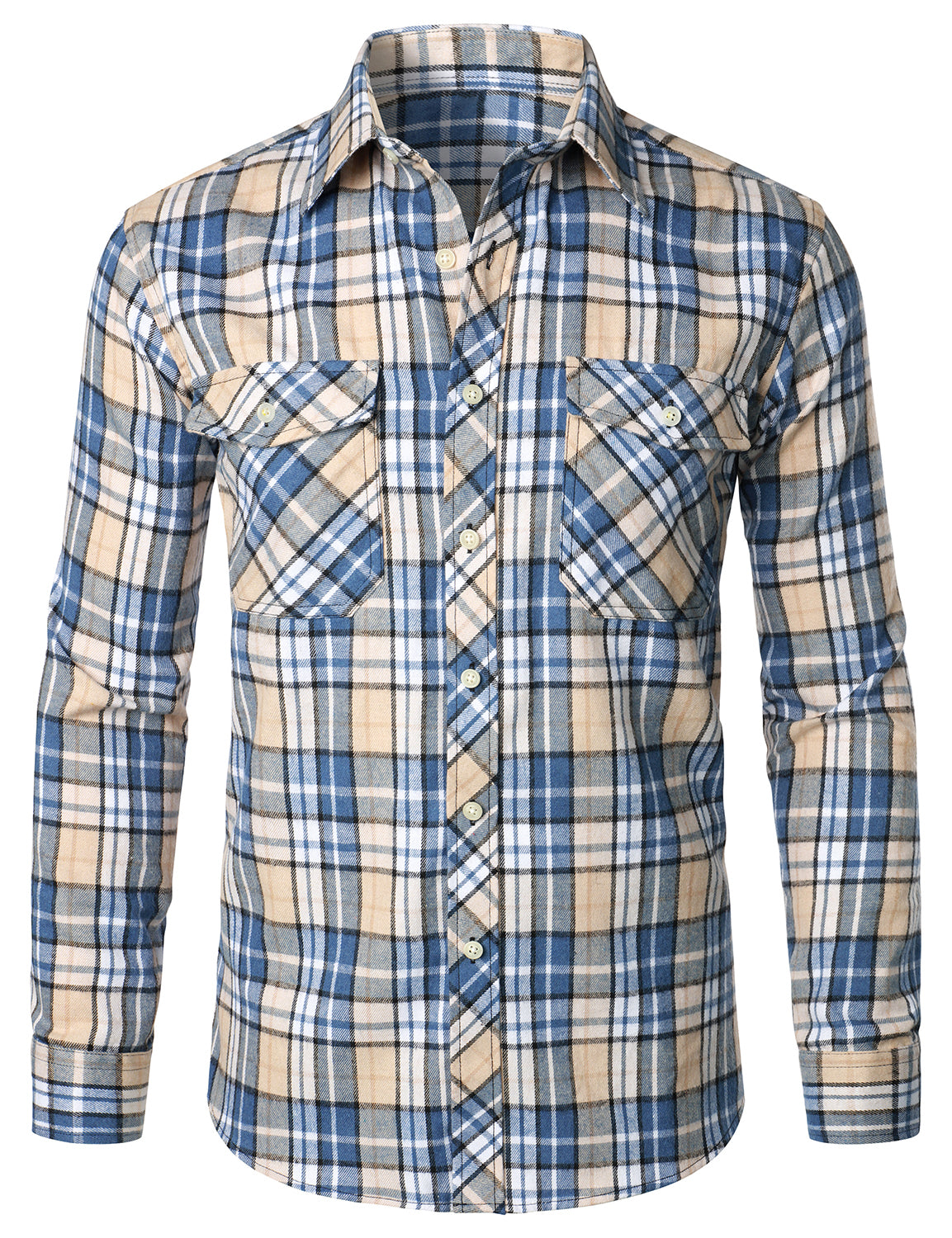Men's Plaid Double Pocket Button Up Checkered Lapel Long Sleeve Fall Winter Shirt