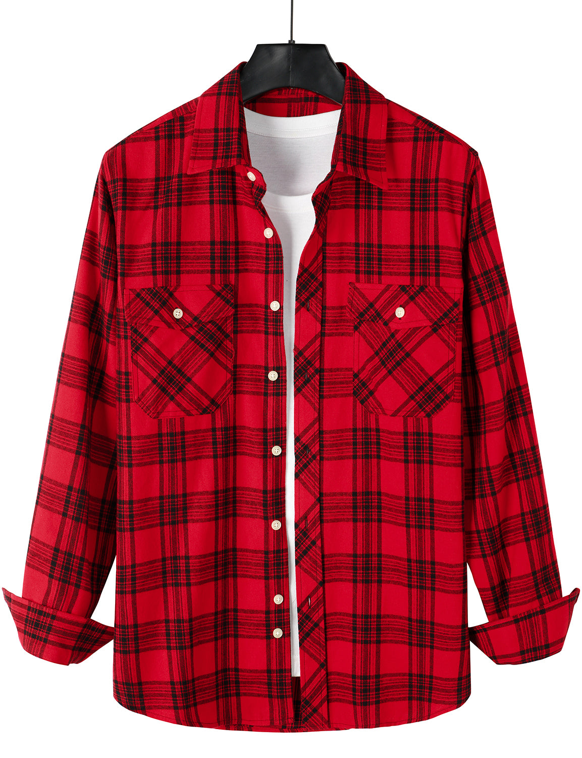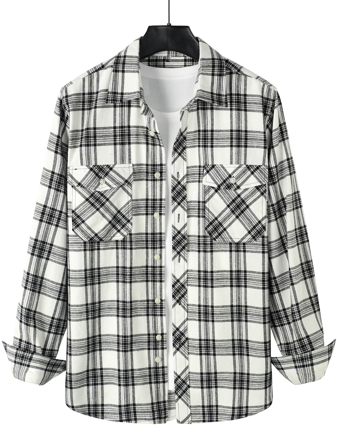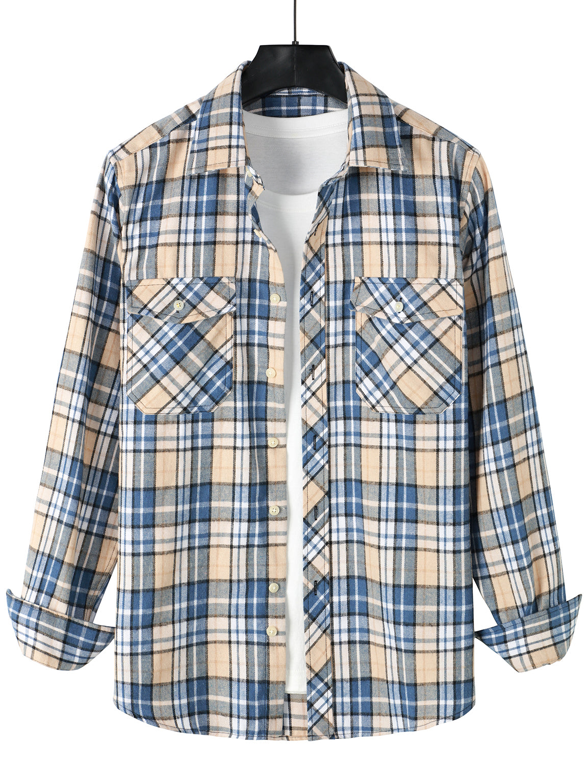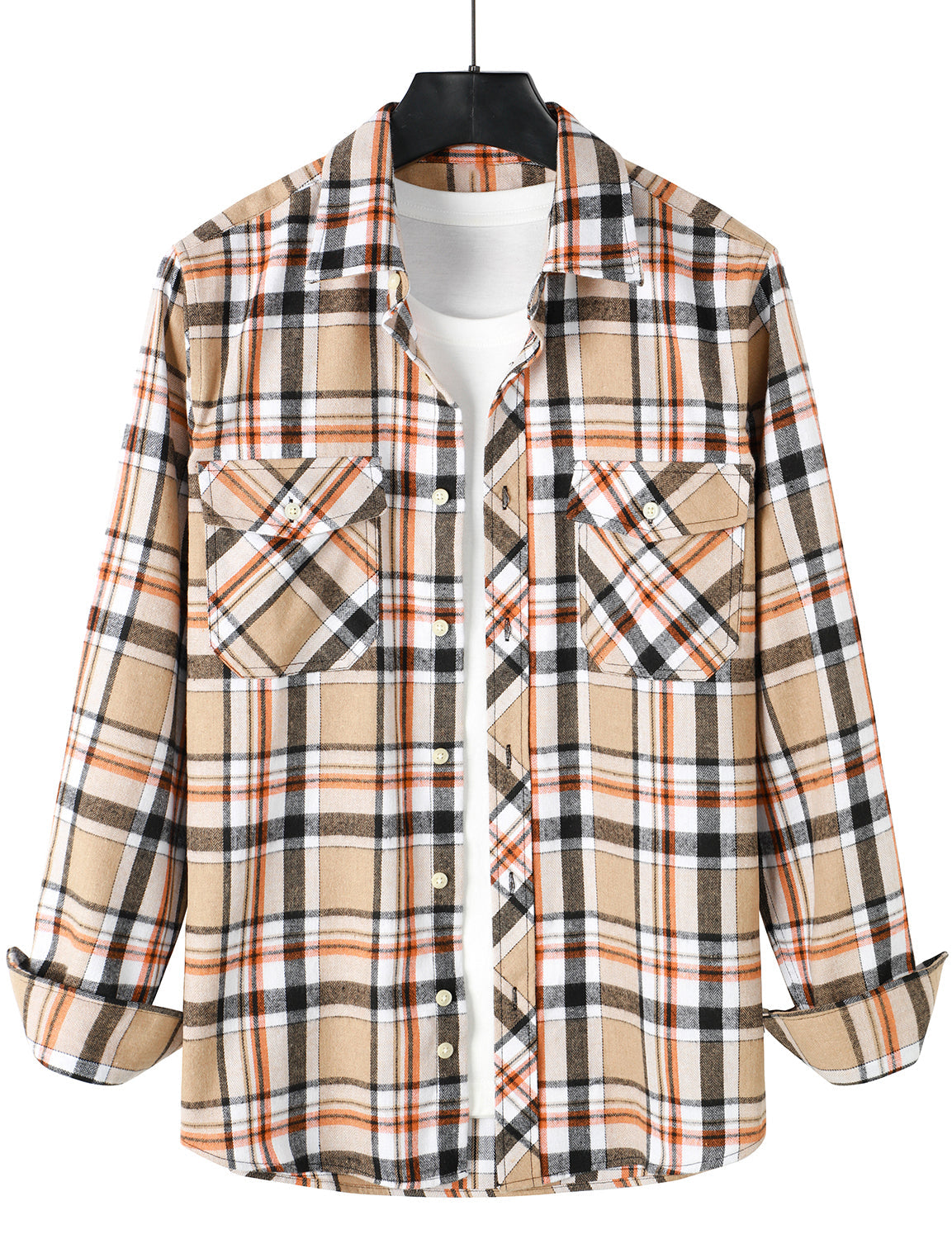 Men's Plaid Double Pocket Button Up Checkered Lapel Long Sleeve Fall Winter Shirt