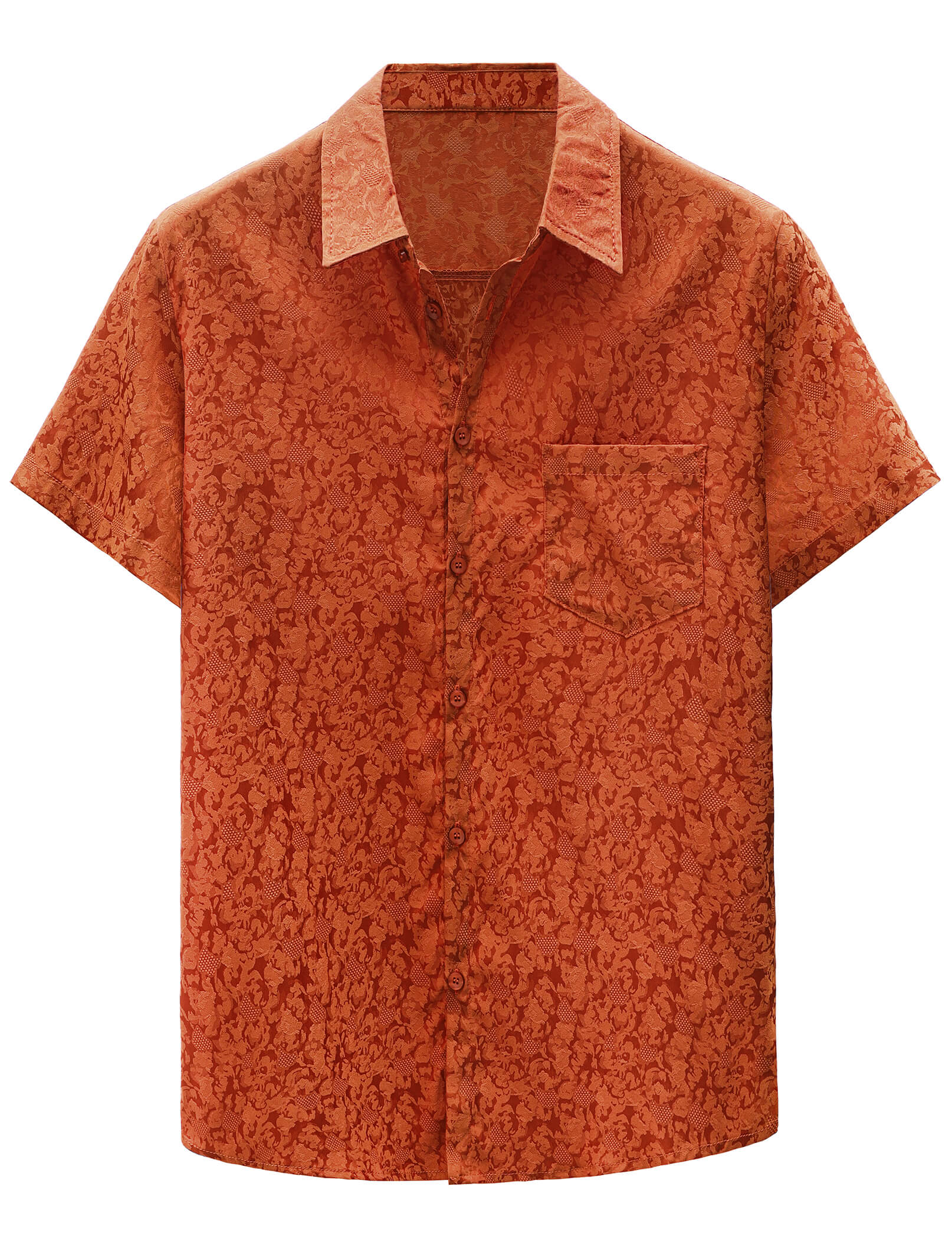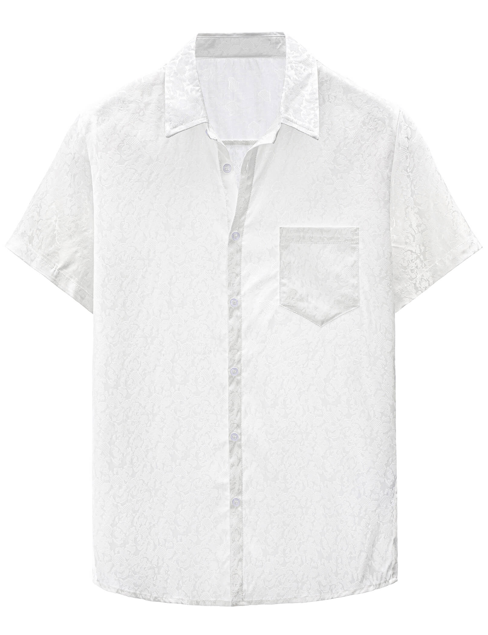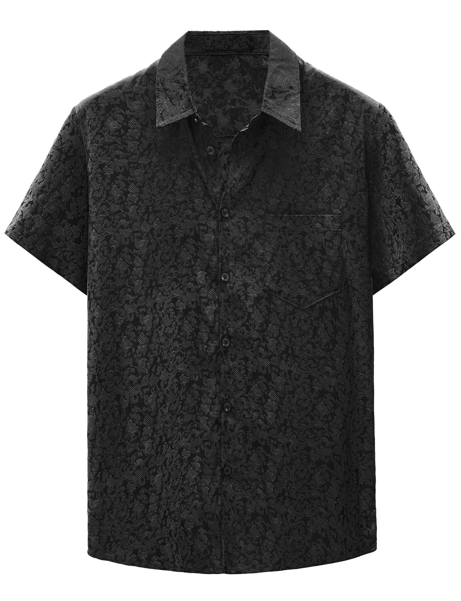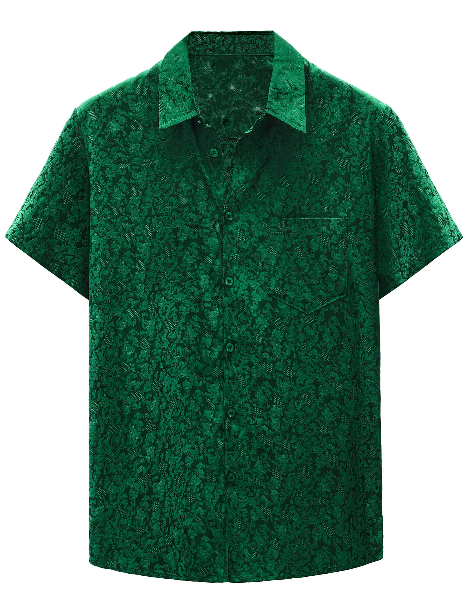 Men's Jacquard Satin Casual Short Sleeve Button Up Shirts