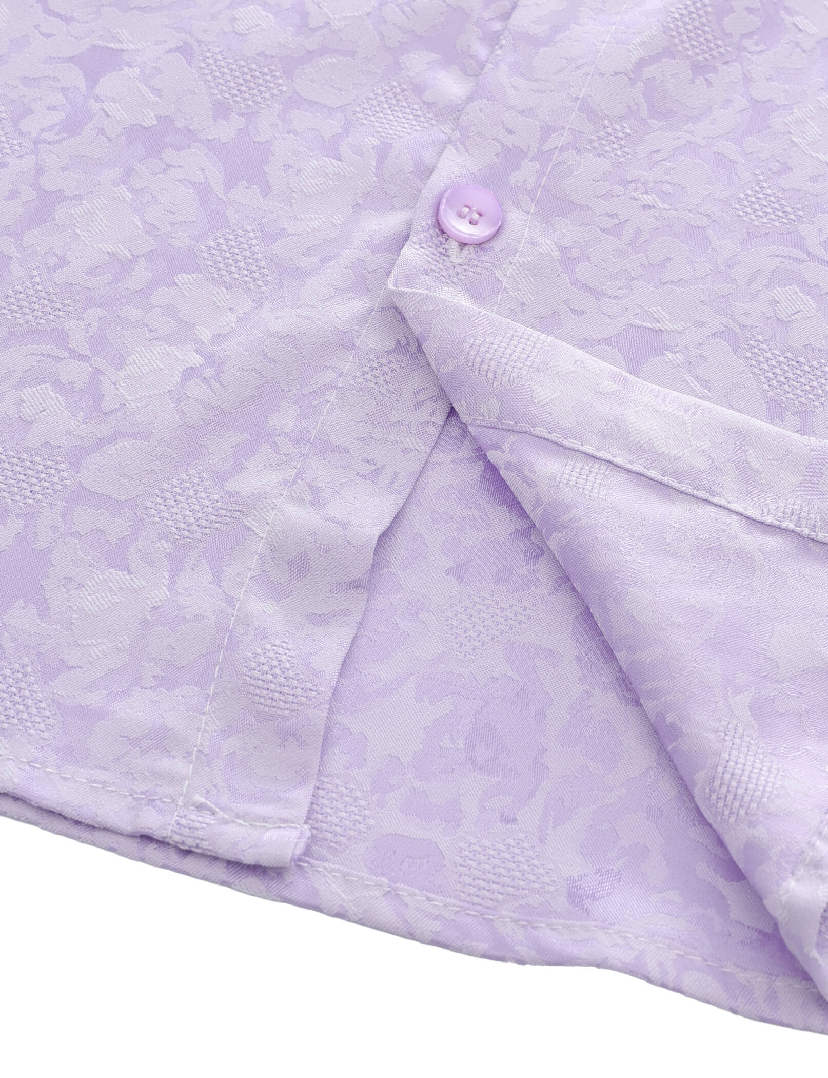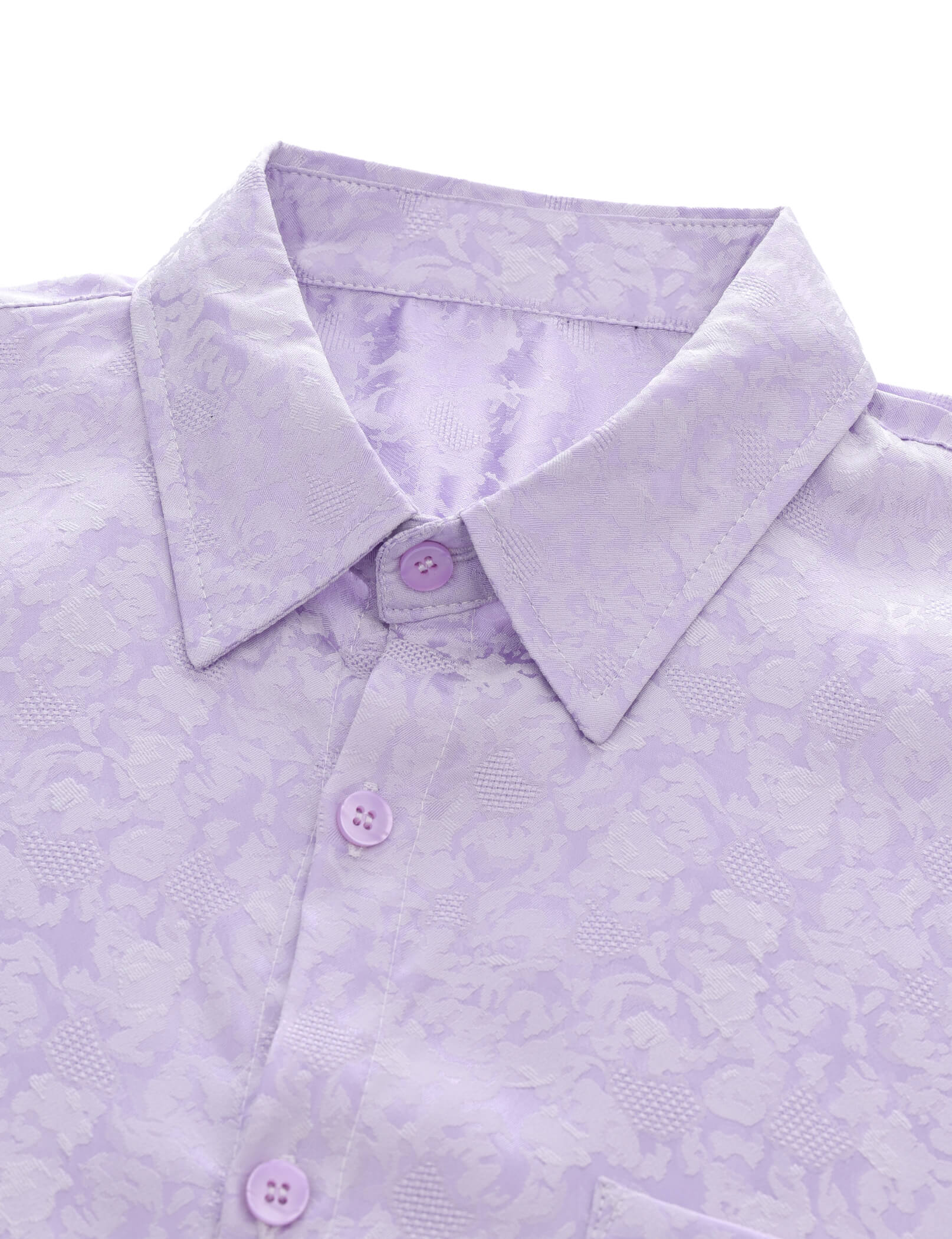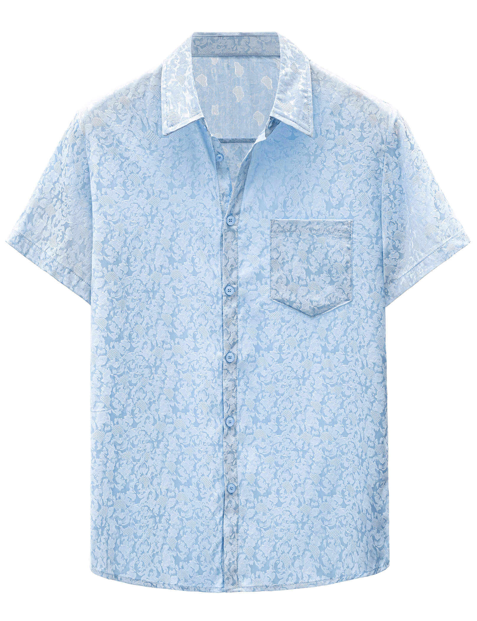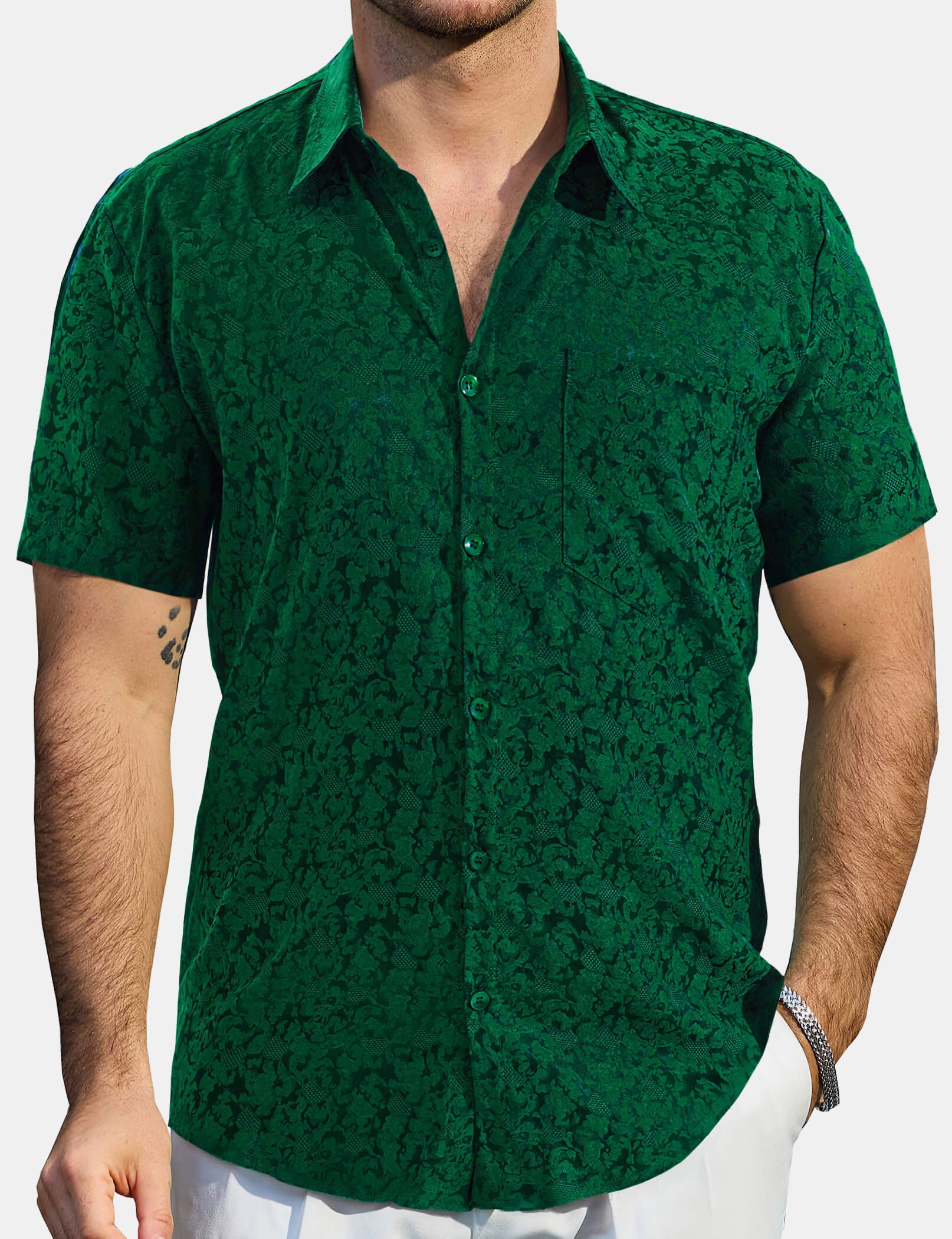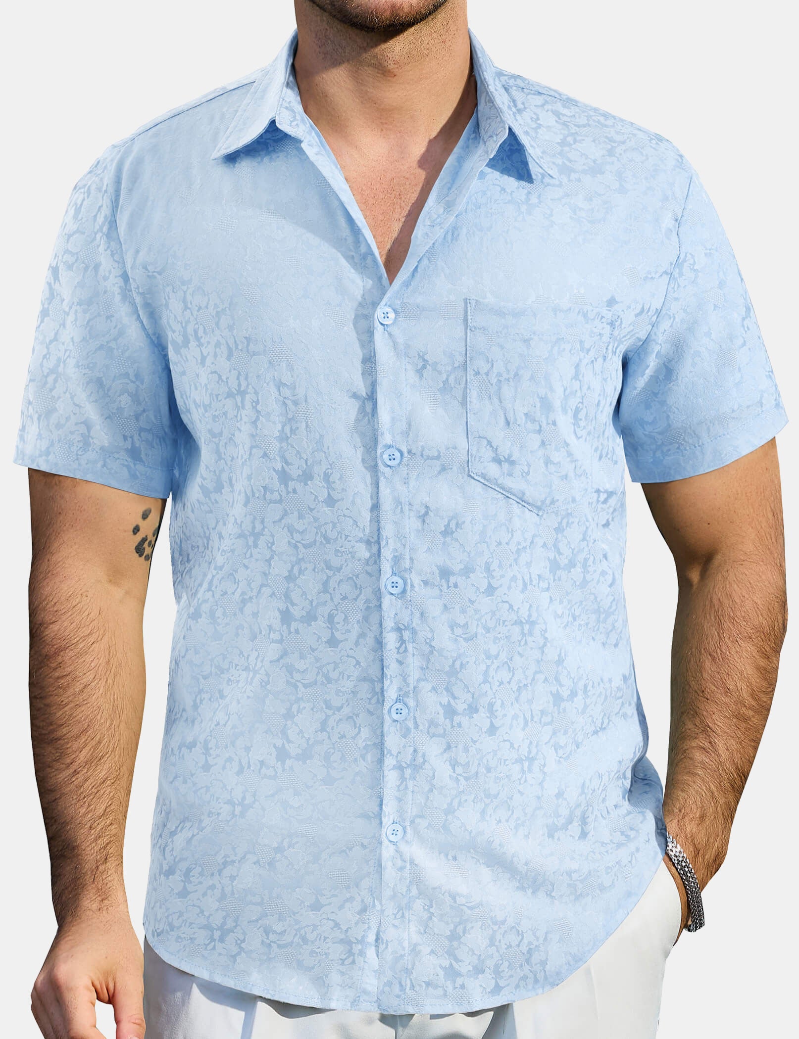 Men's Jacquard Satin Casual Short Sleeve Button Up Shirts