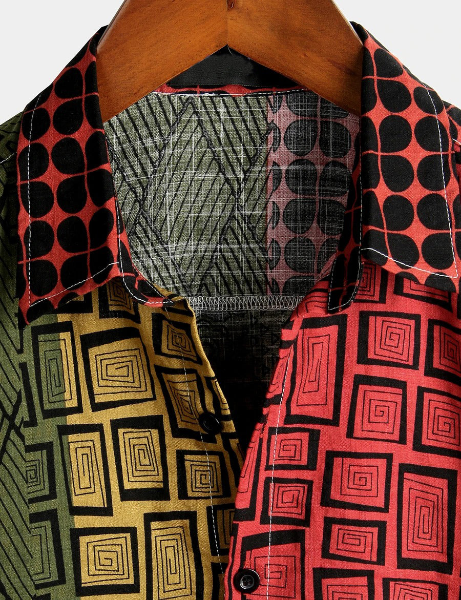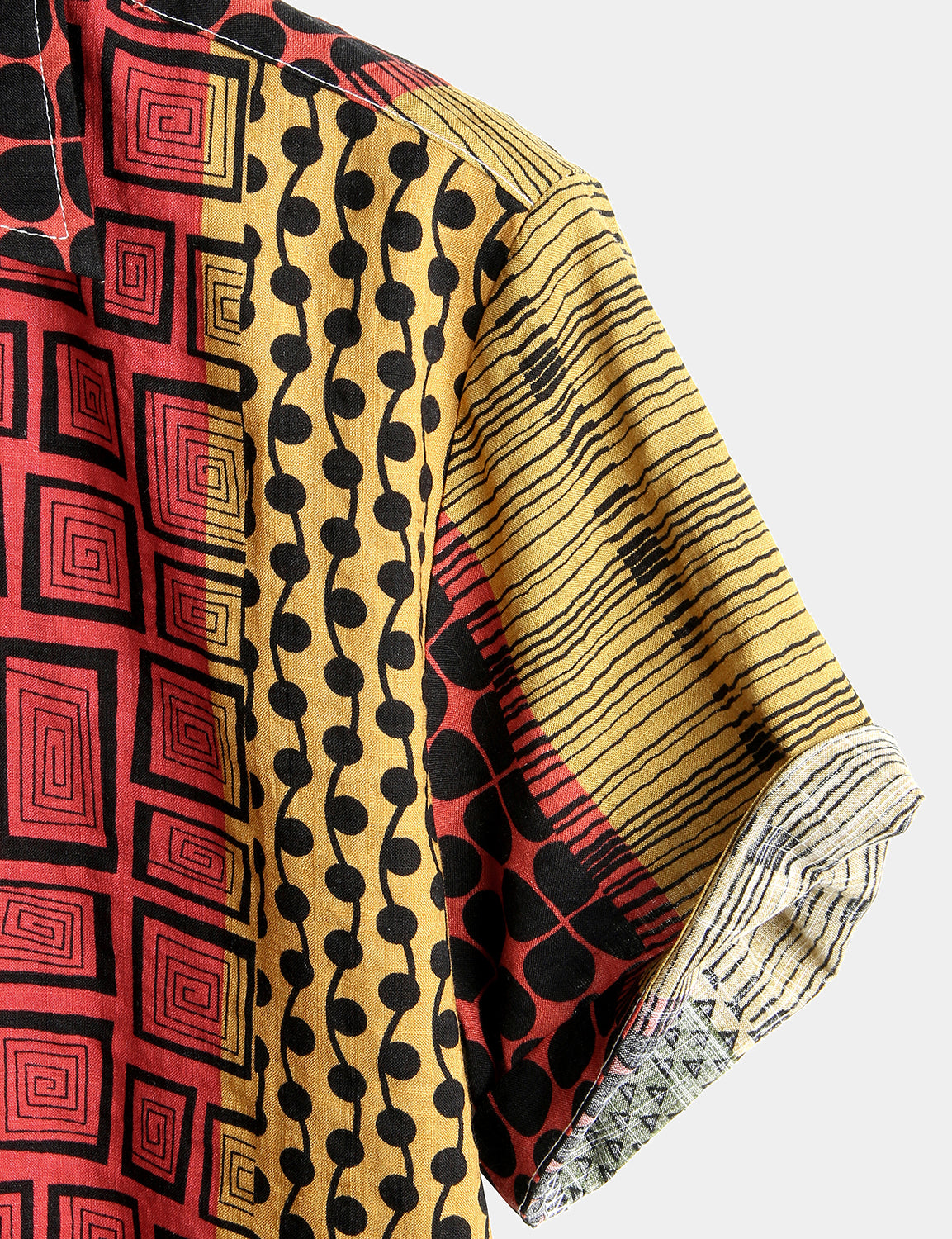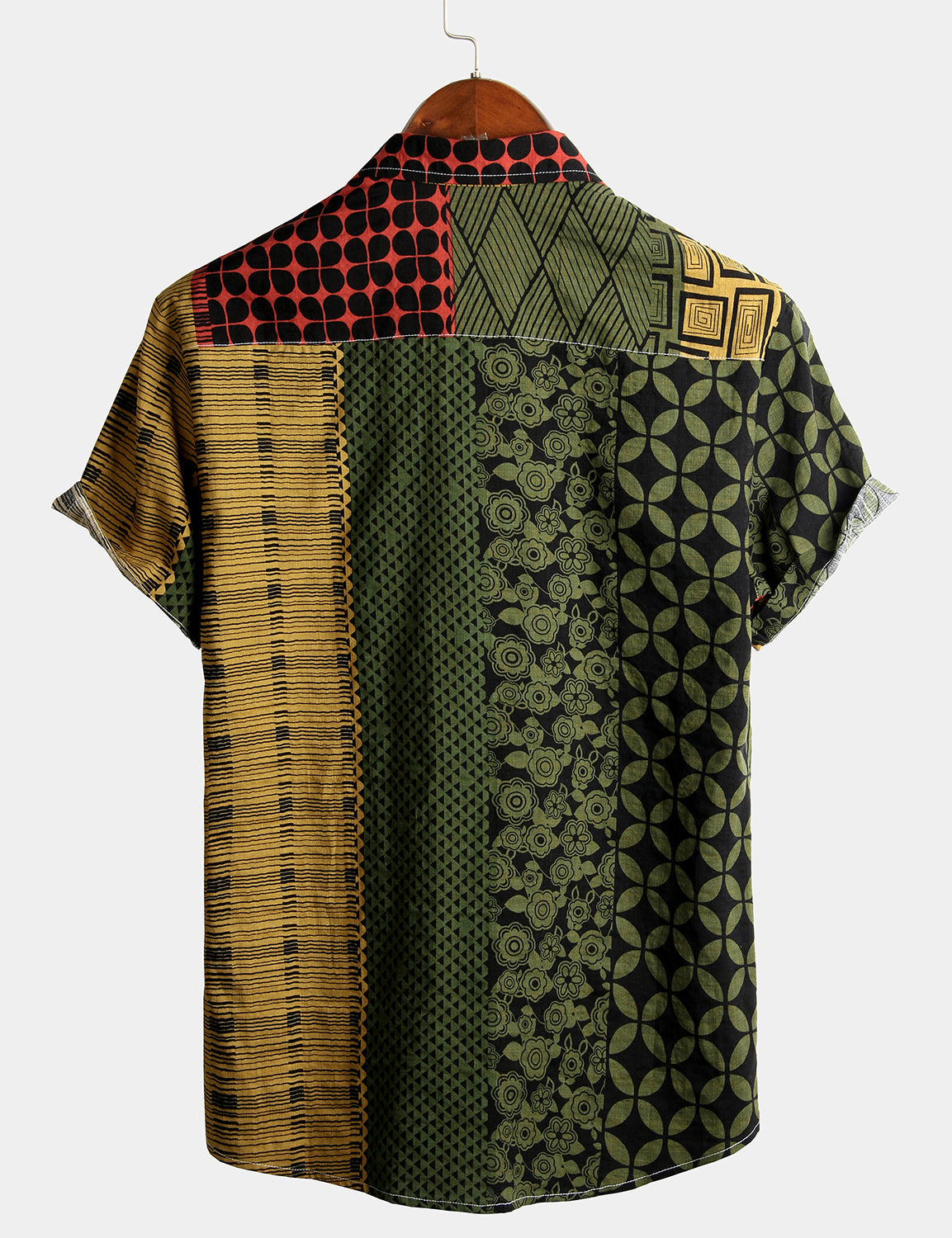 White Men's Short Sleeve Chest Pocket Cotton Print Shirt Yellow Men's Short Sleeve Chest Pocket Cotton Print Shirt Black Men's Short Sleeve Chest Pocket Cotton Print Shirt Red Men's Short Sleeve Chest Pocket Cotton Print Shirt Blue Men's Short Sleeve Chest Pocket Cotton Print Shirt + 2 more