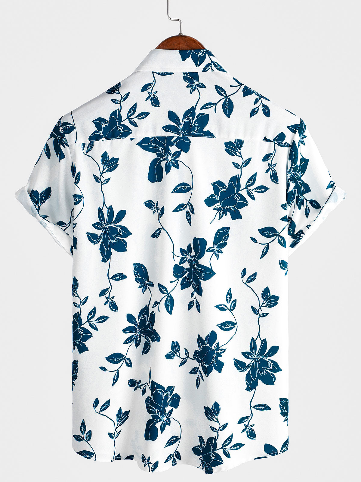 Men's Blue Floral Summer Holiday Button Up Short Sleeve Shirt