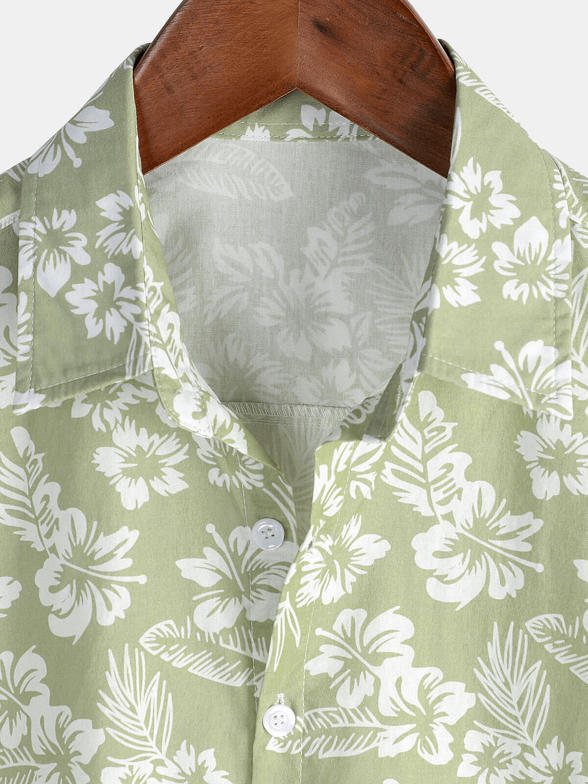 Men's Hawaiian Green Holiday Cotton Summer Floral Button Up Short Sleeve Shirt