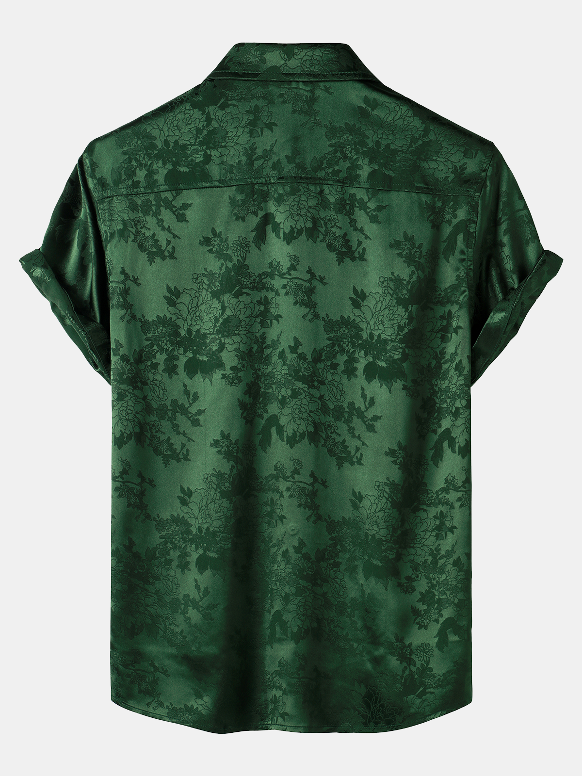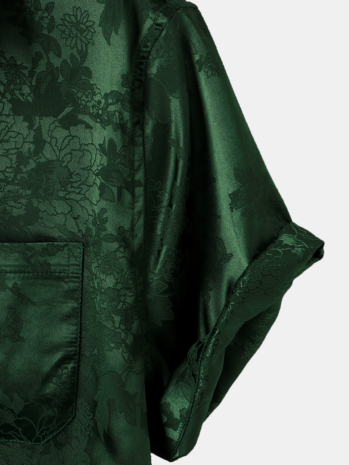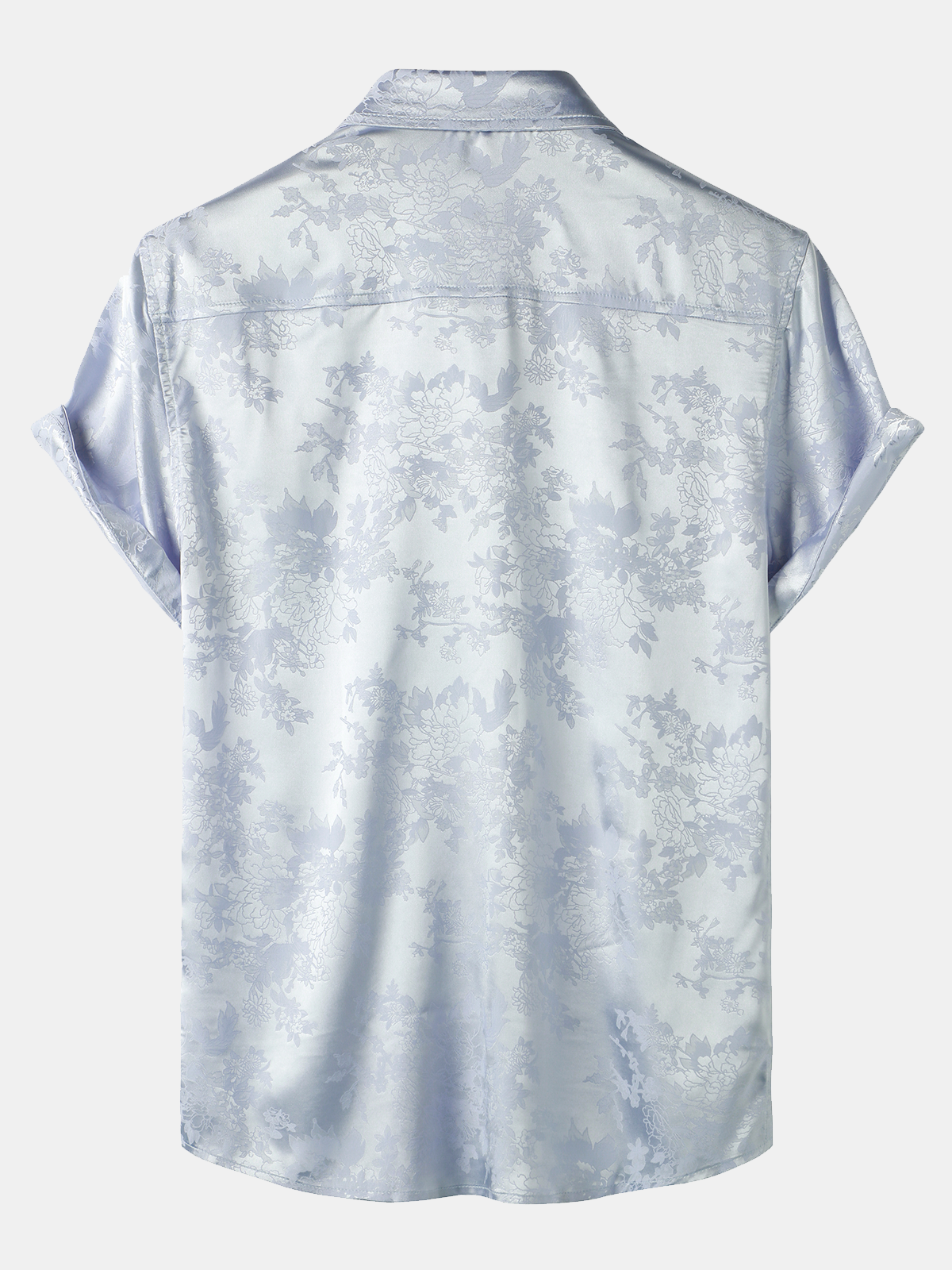 Men's Jacquard Pocket Silky Satin Floral Short Sleeve Shirt