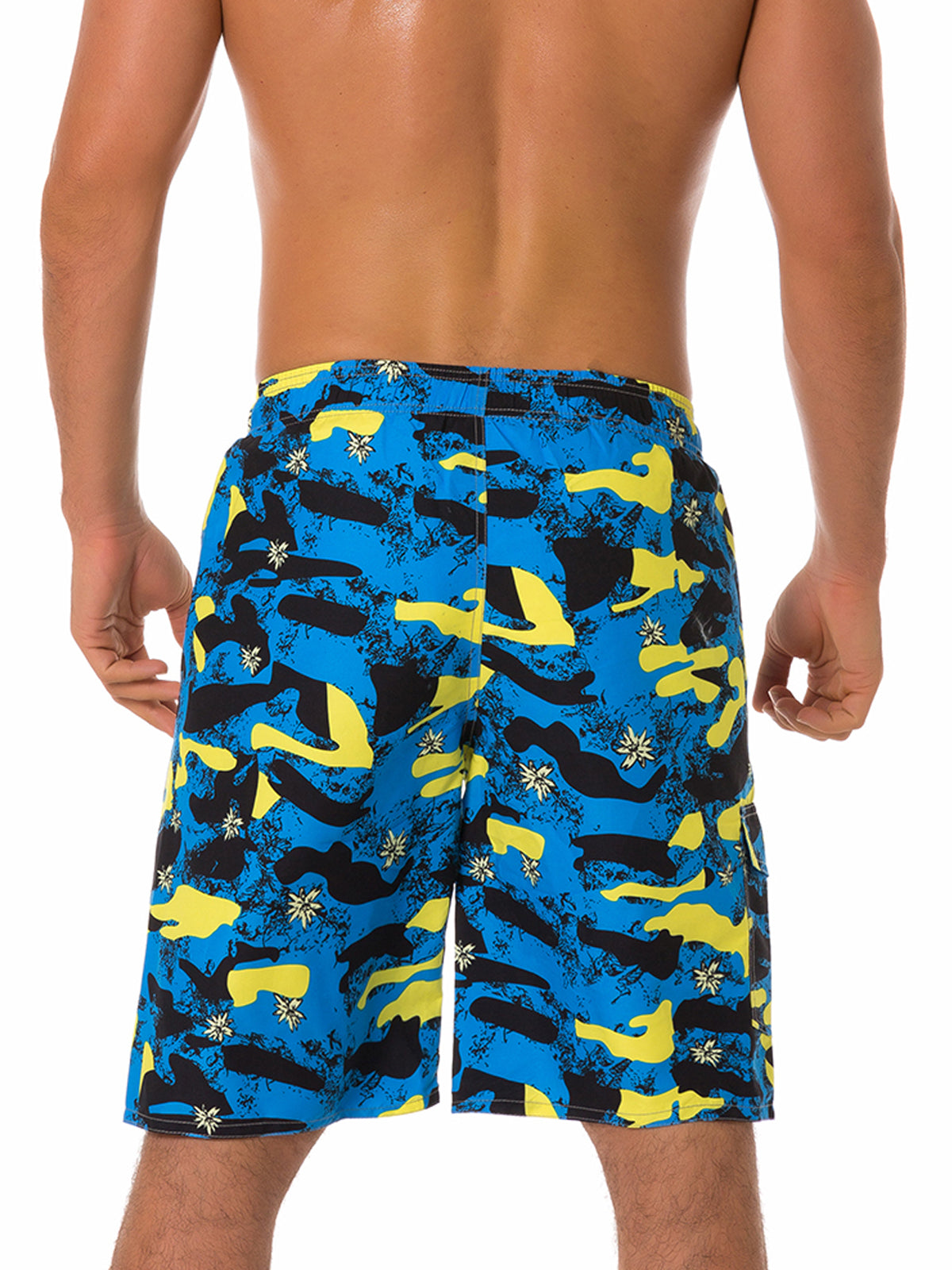 Men's Casual Blue Camo Print Summer Beach Shorts Swimming Trunks