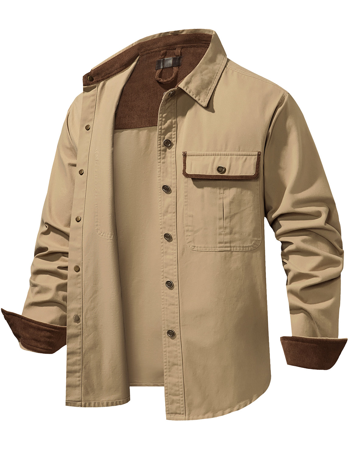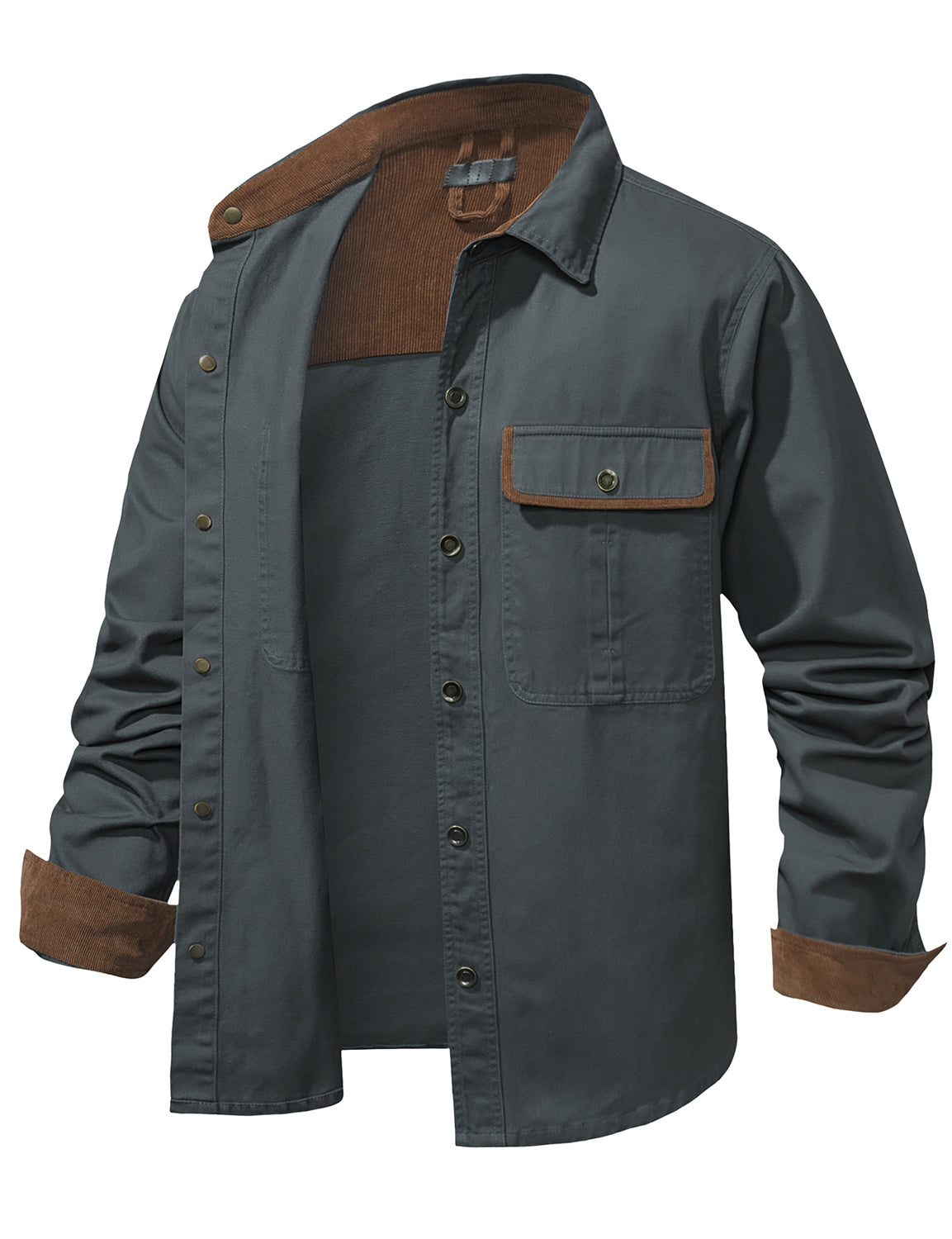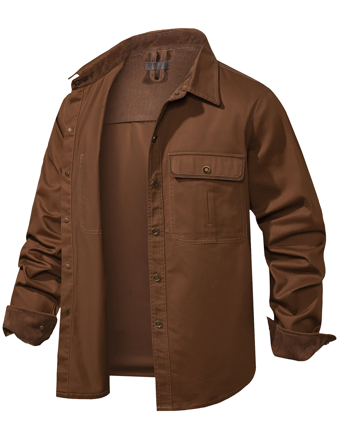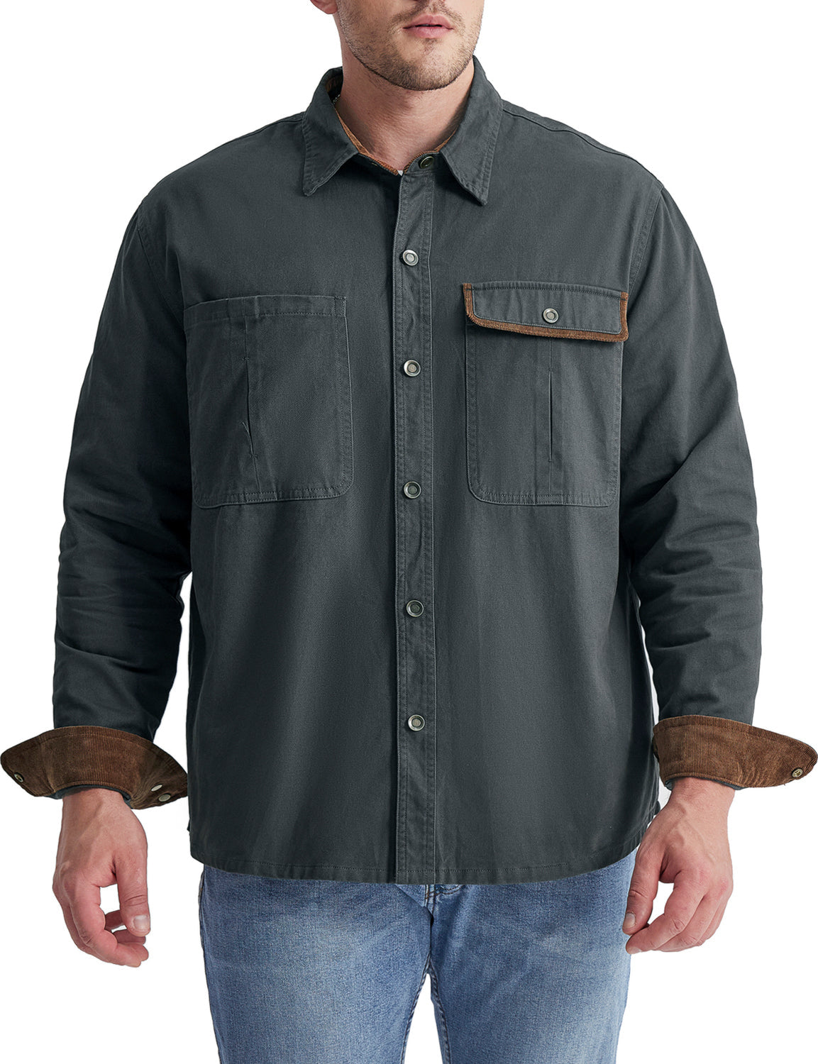 Men's Casual Cotton Pocket Button Up Fall Shirt Outdoor Hiking Long Sleeve Overshirt Jacket