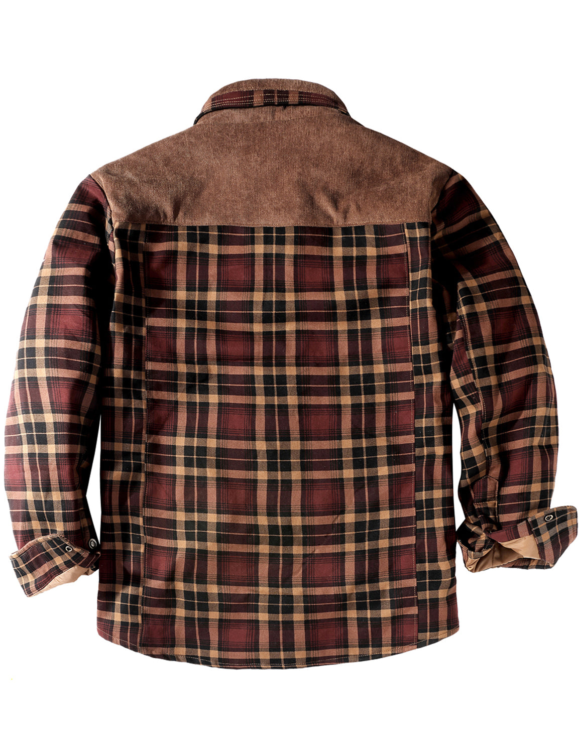 Men's Casual Plaid Flannel Fur Lined Button Up Long Sleeve Warm Shirt Jacket