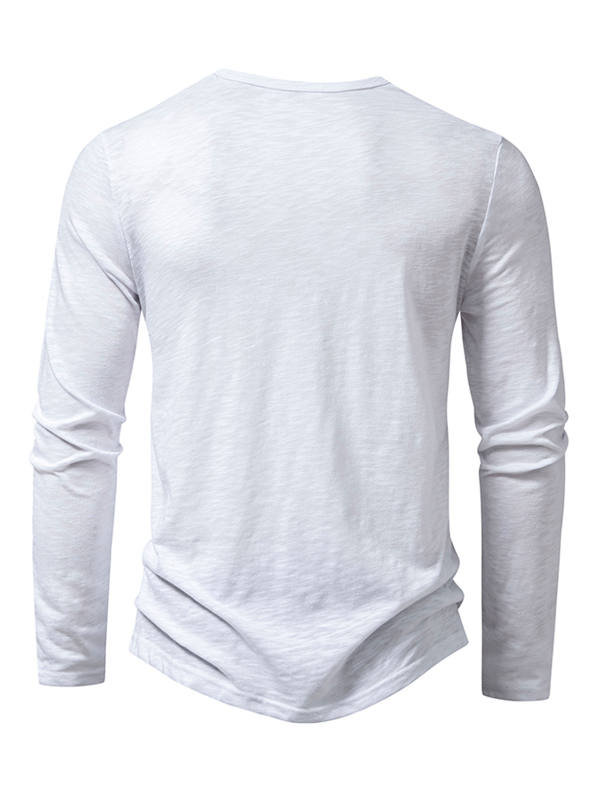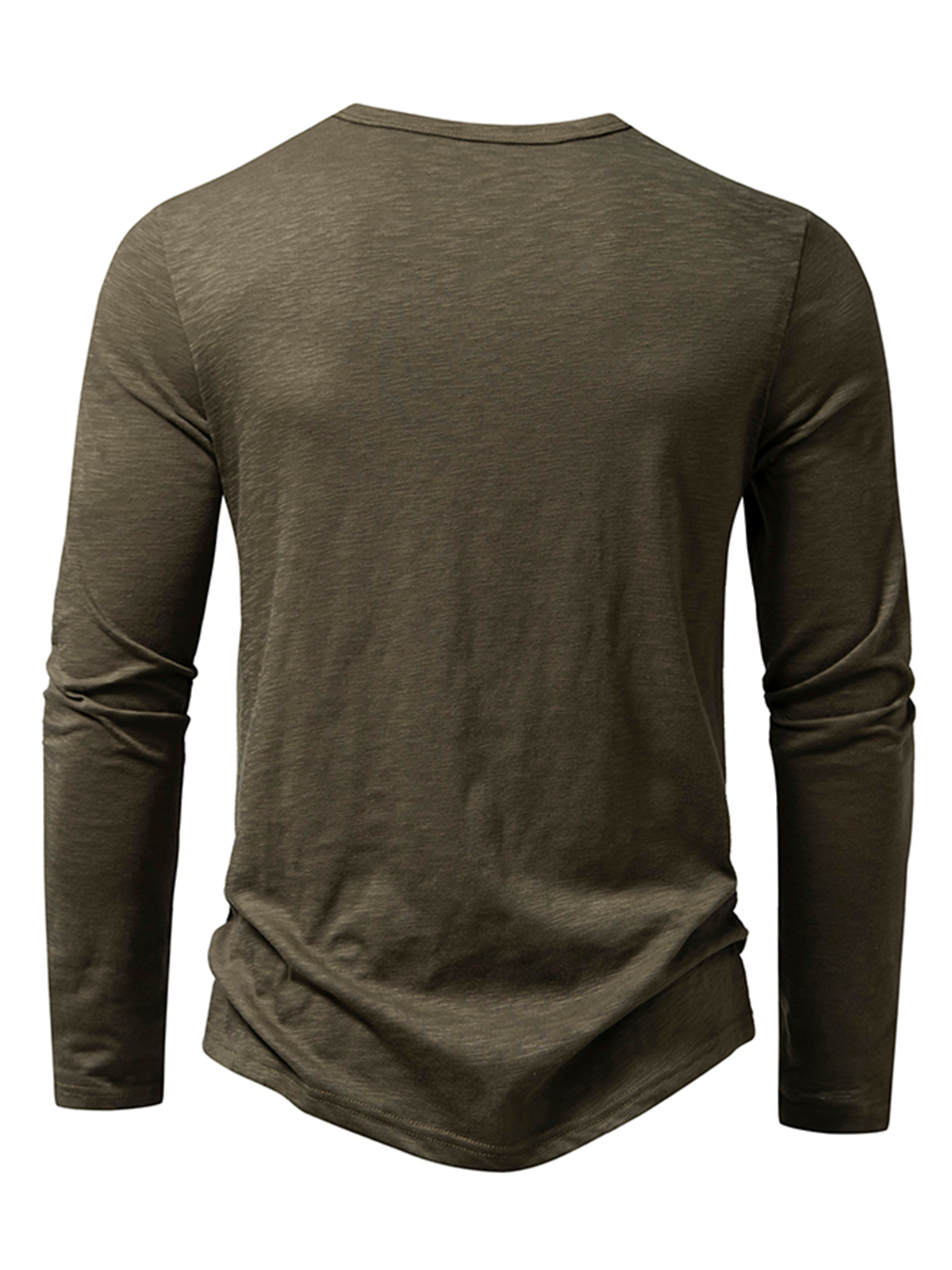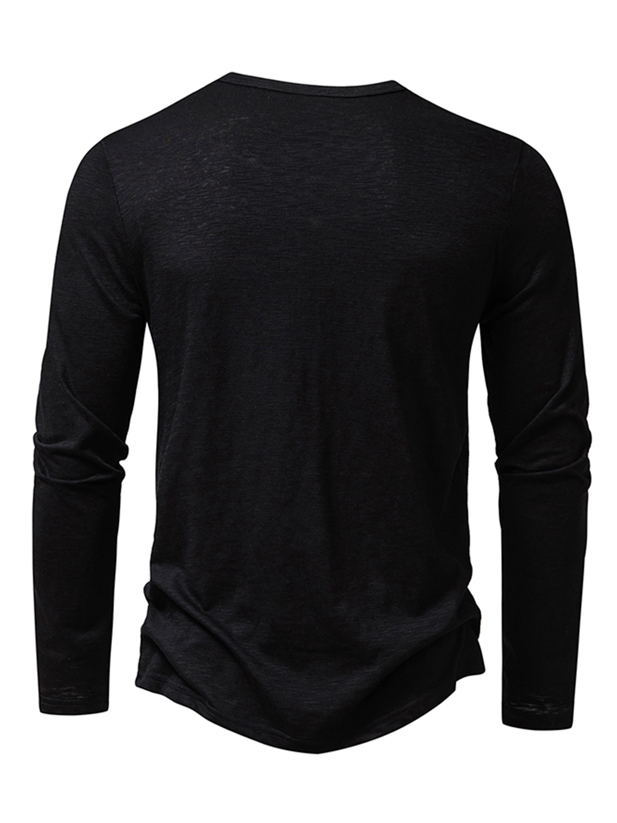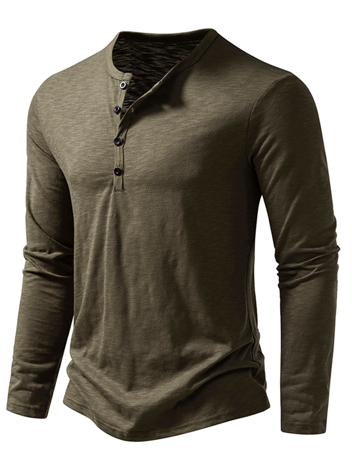 Men's Henley Collar Casual Tee Solid Color T-Shirt