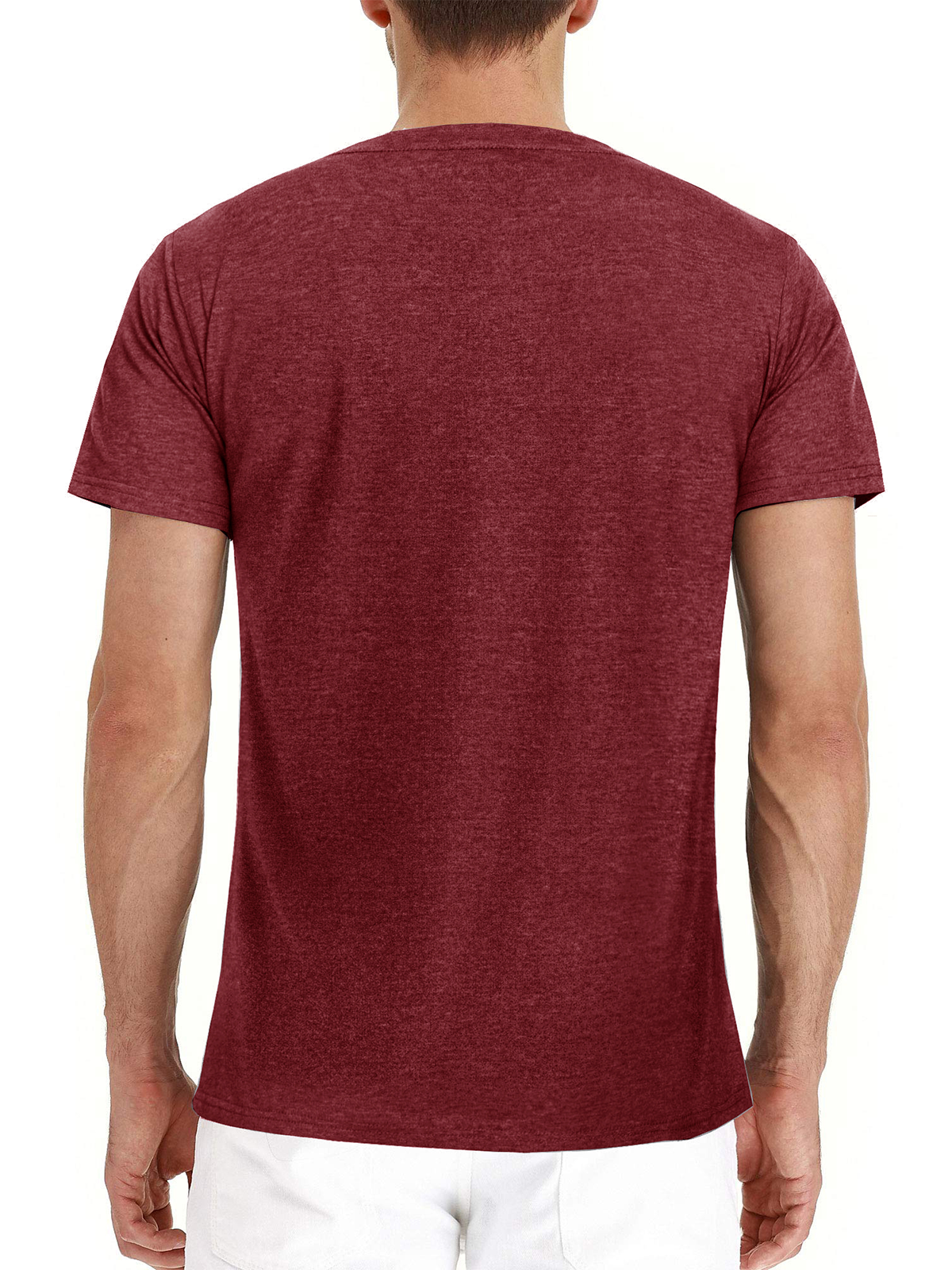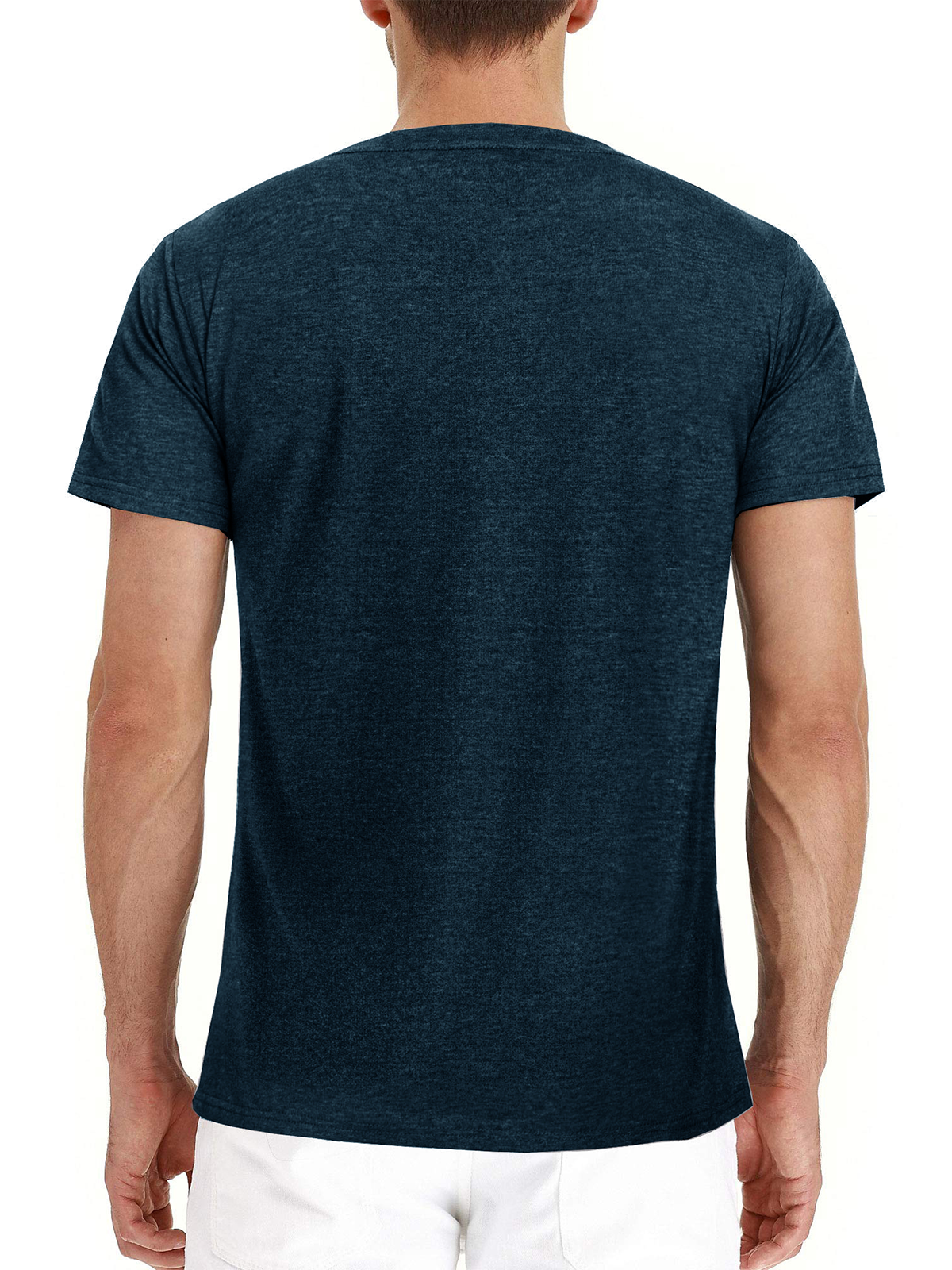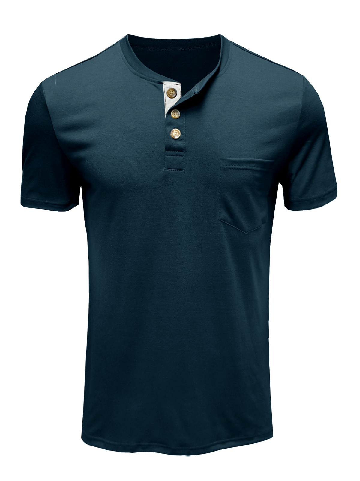 Men's Summer Solid Color Cotton Casual Henley Collar Short Sleeve T-Shirt
