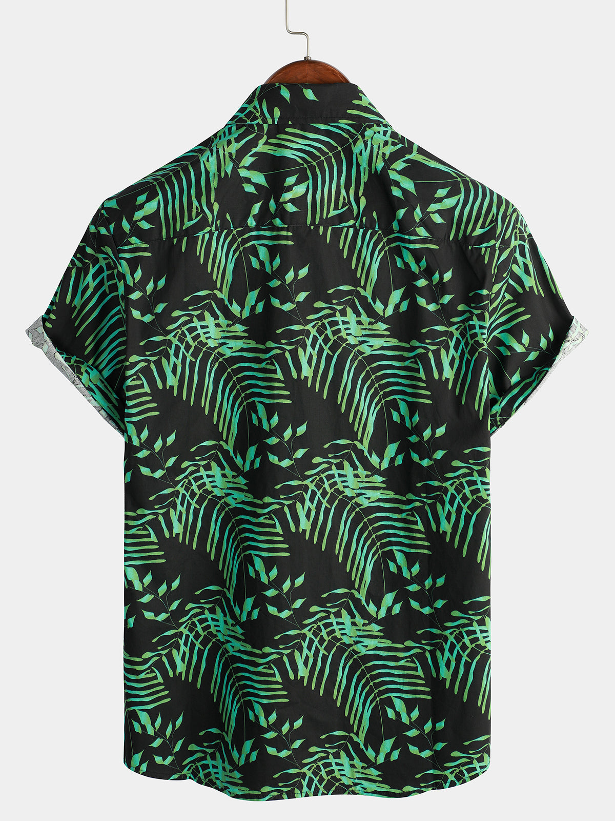 Men's Summer Tropical Green Plant Leaf Button Up Short Sleeve Hawaiian Shirt