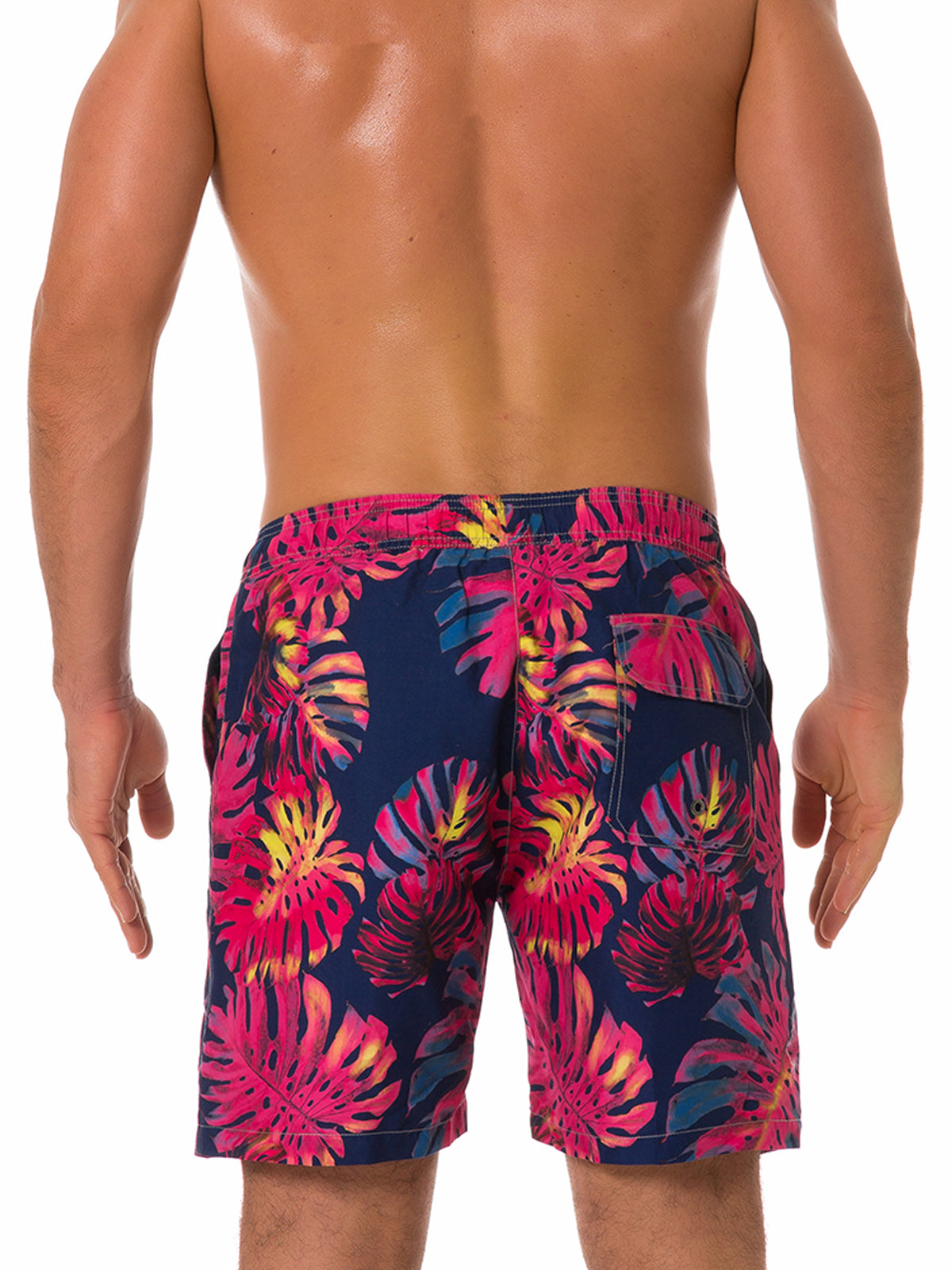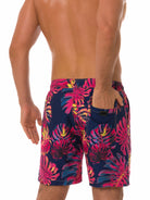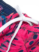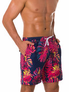 Men's Summer Tropical Leaf Print Beach Shorts Navy Blue Swimming Trunks