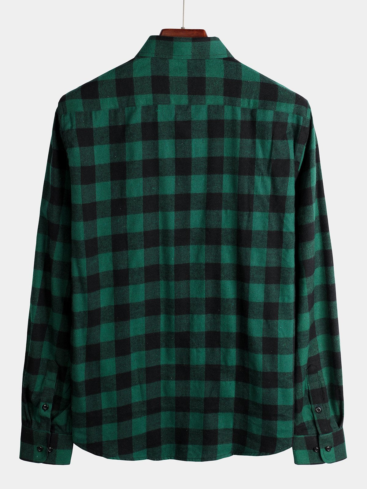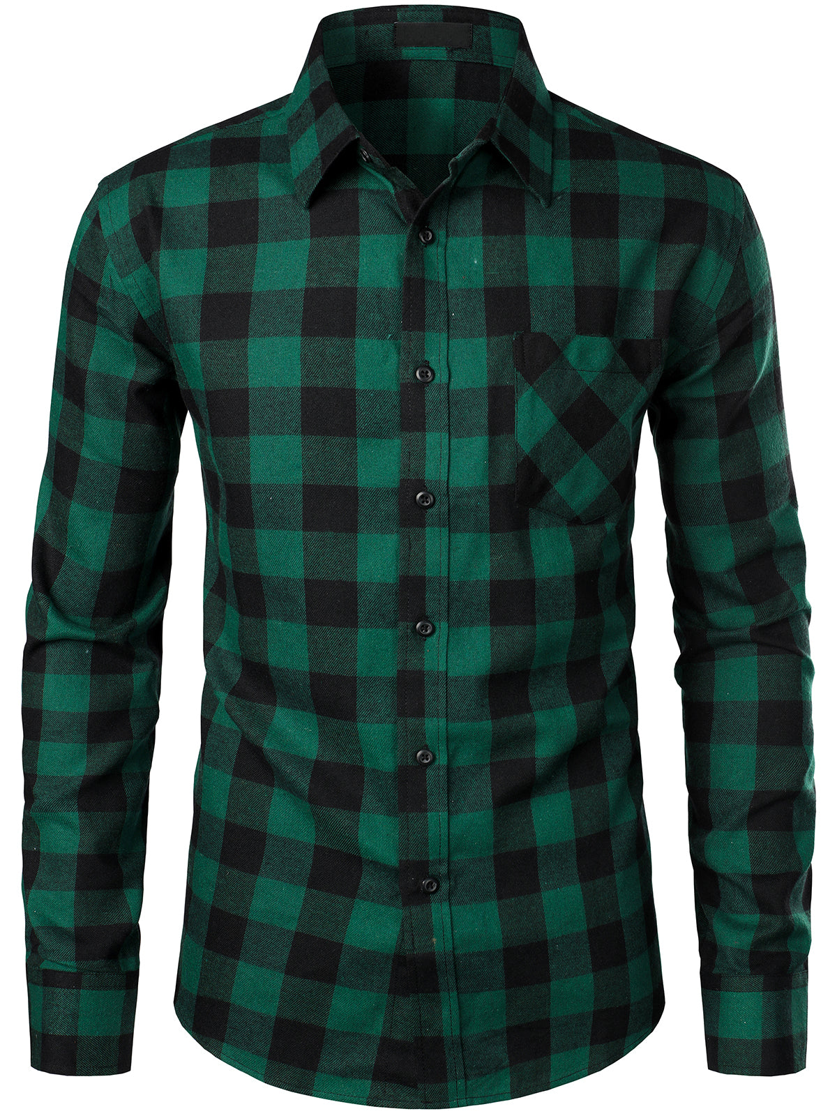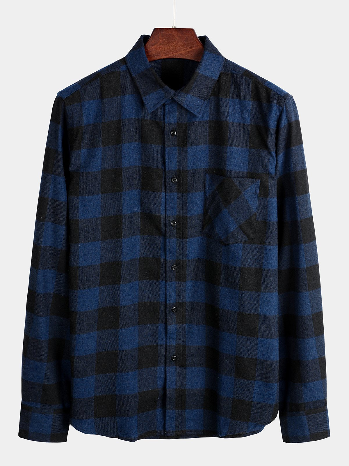 Men's Button Up Regular Fit Long Sleeve Plaid Flannel Casual Shirts