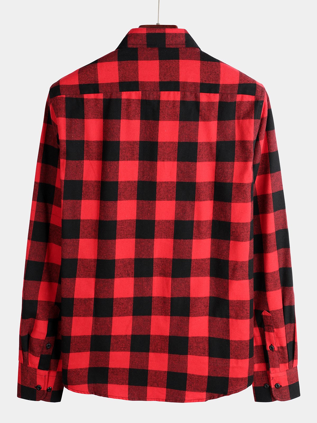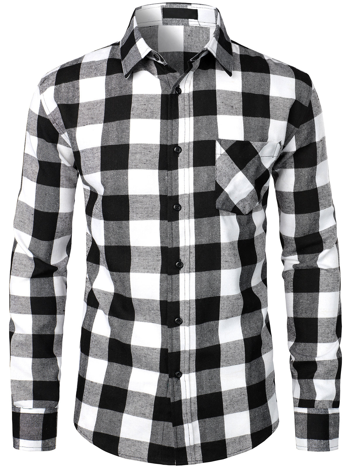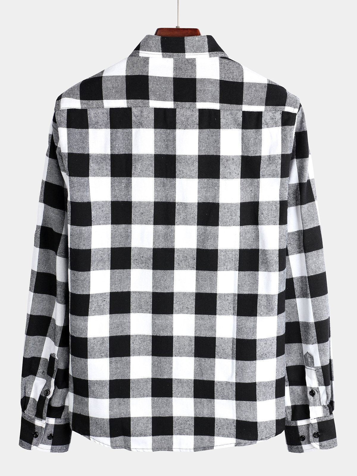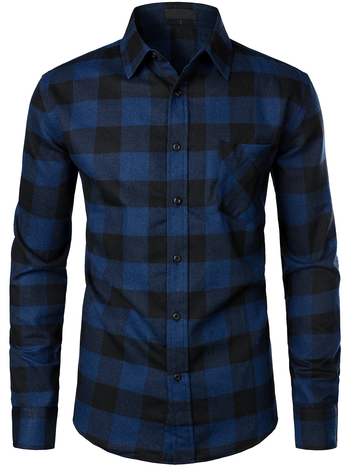 Men's Button Up Regular Fit Long Sleeve Plaid Flannel Casual Shirts