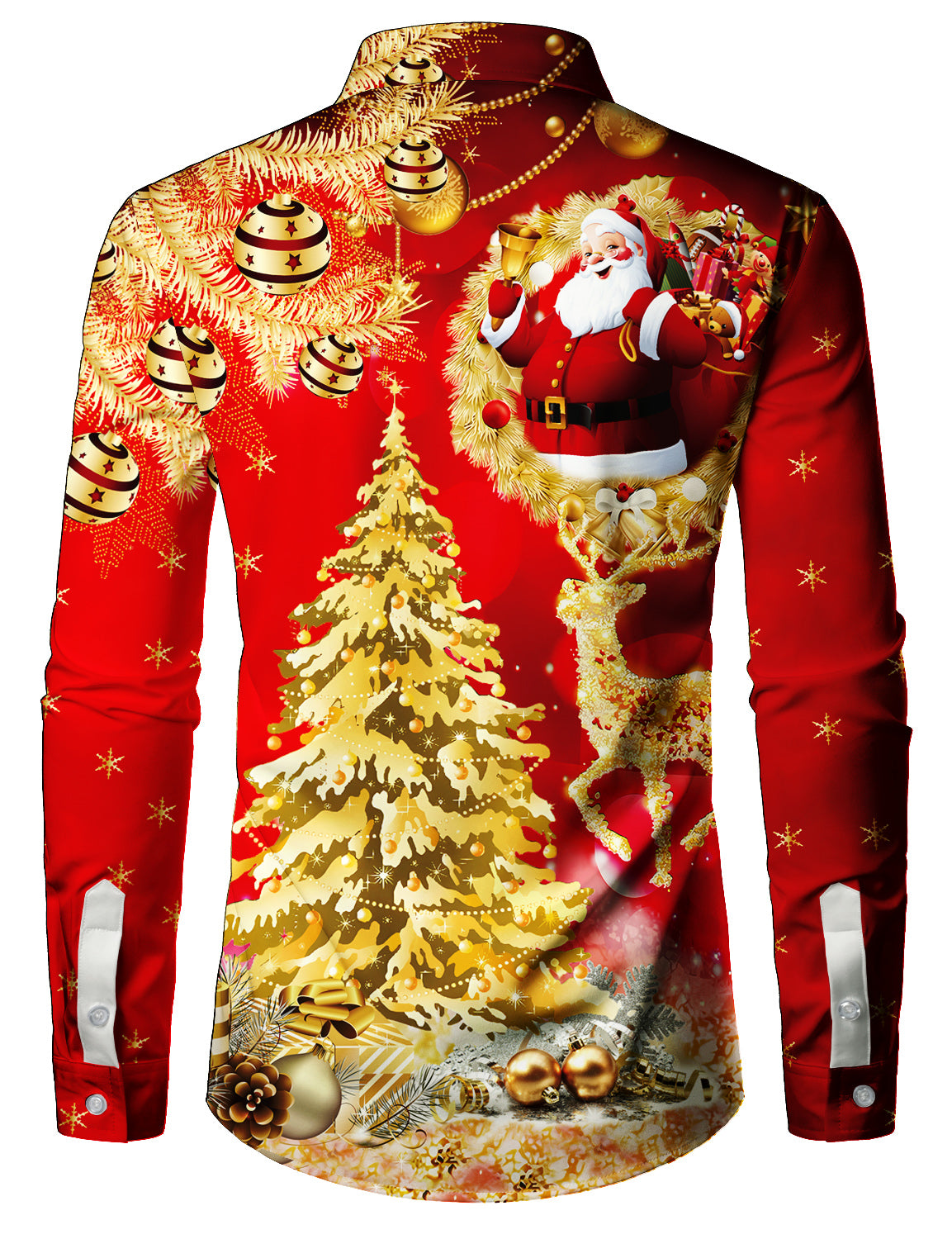 Men's Funny Santa Claus Gold Christmas Print Holiday Long Sleeve Shirt