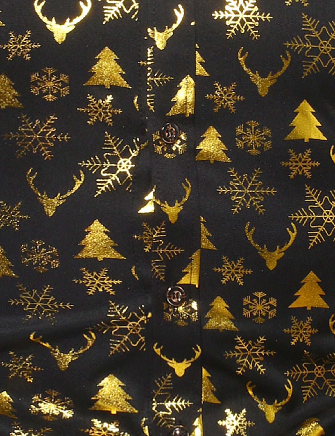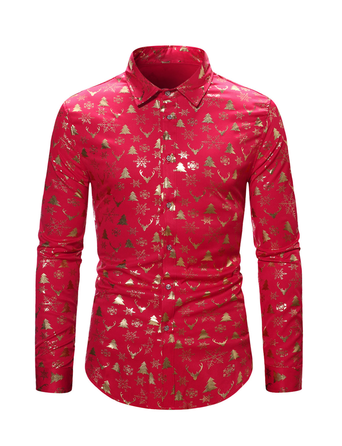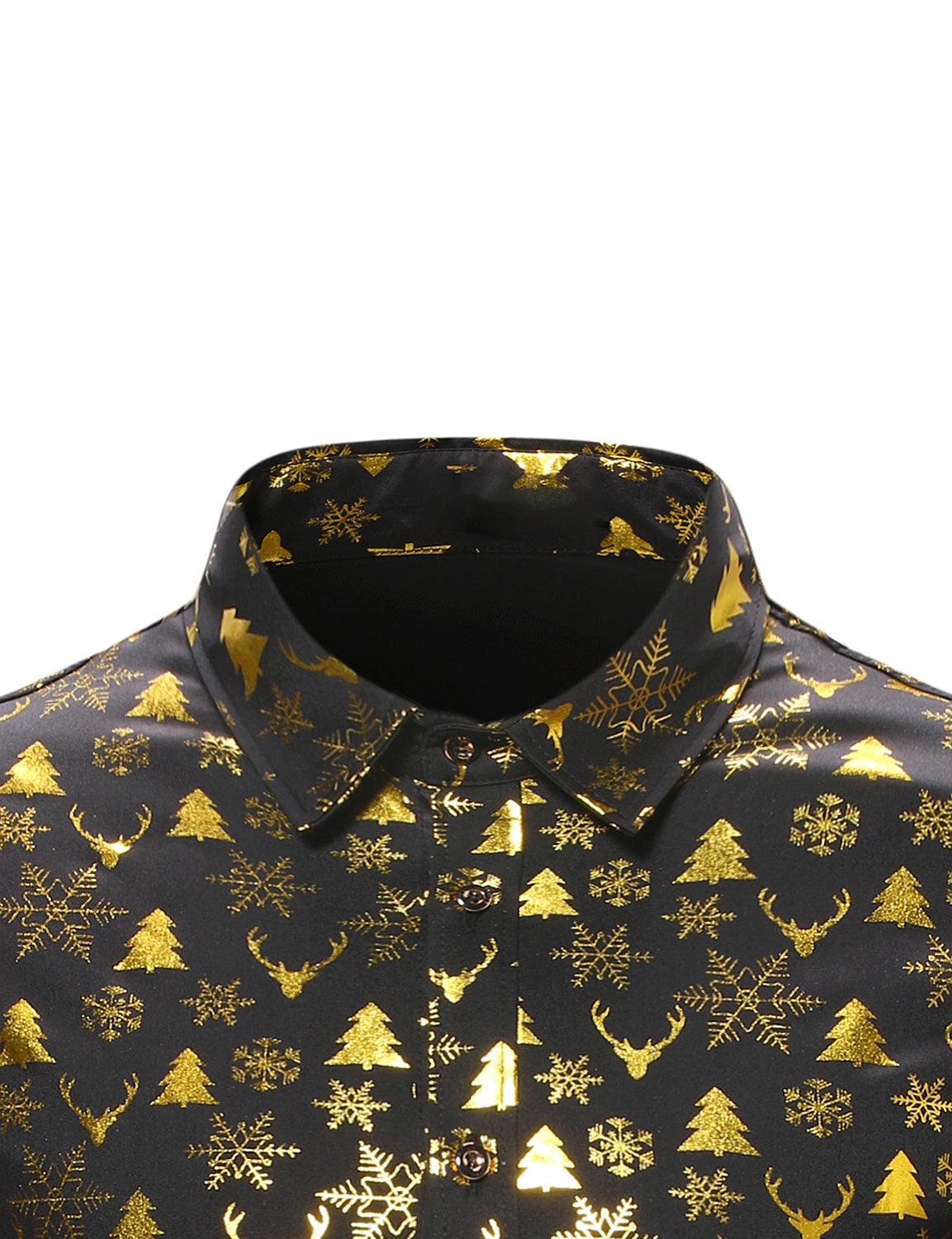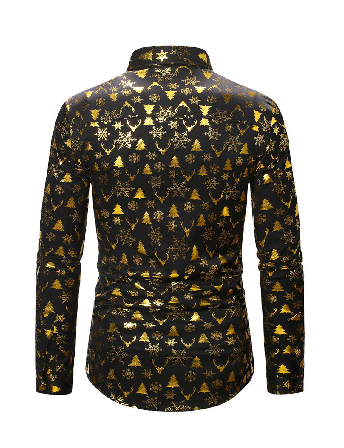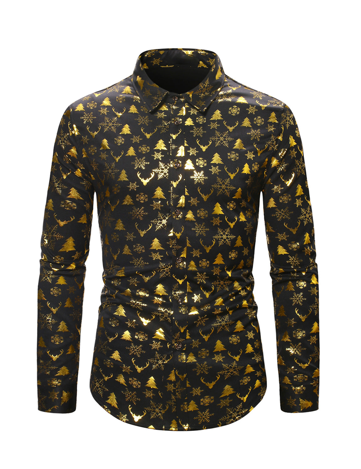 Men's Christmas Gold Print Xmas Party Button Up Long Sleeve Dress Shirt