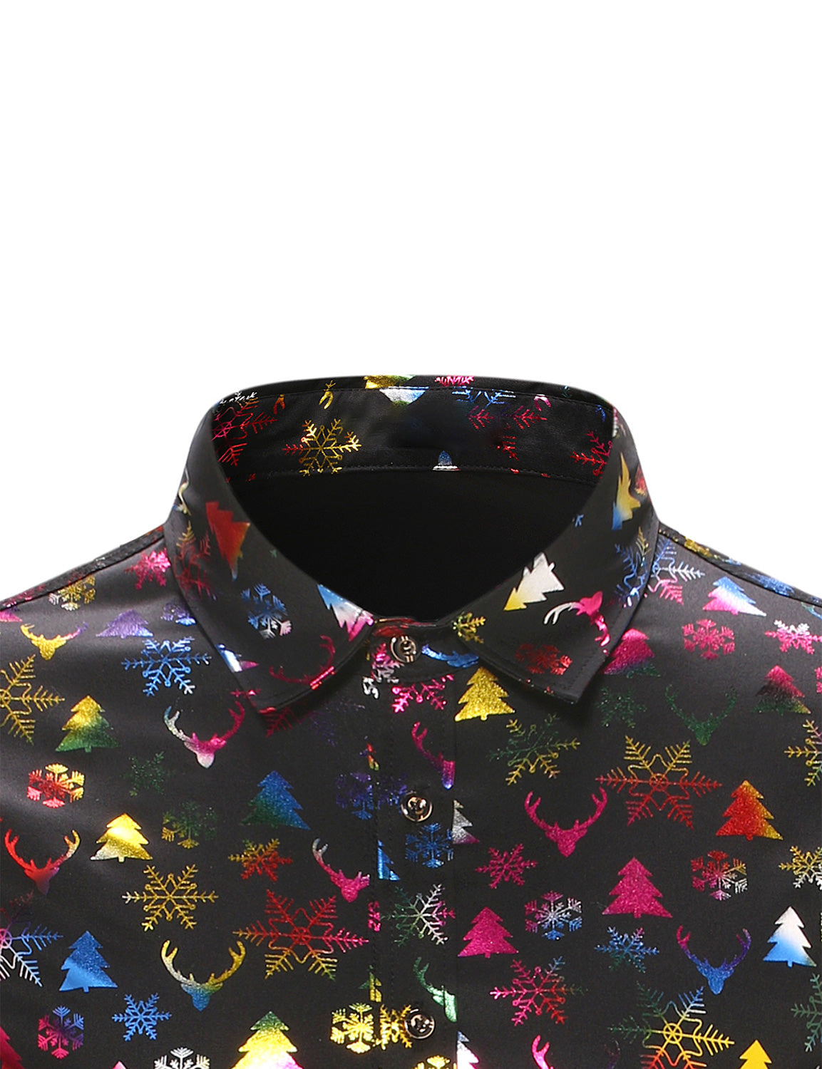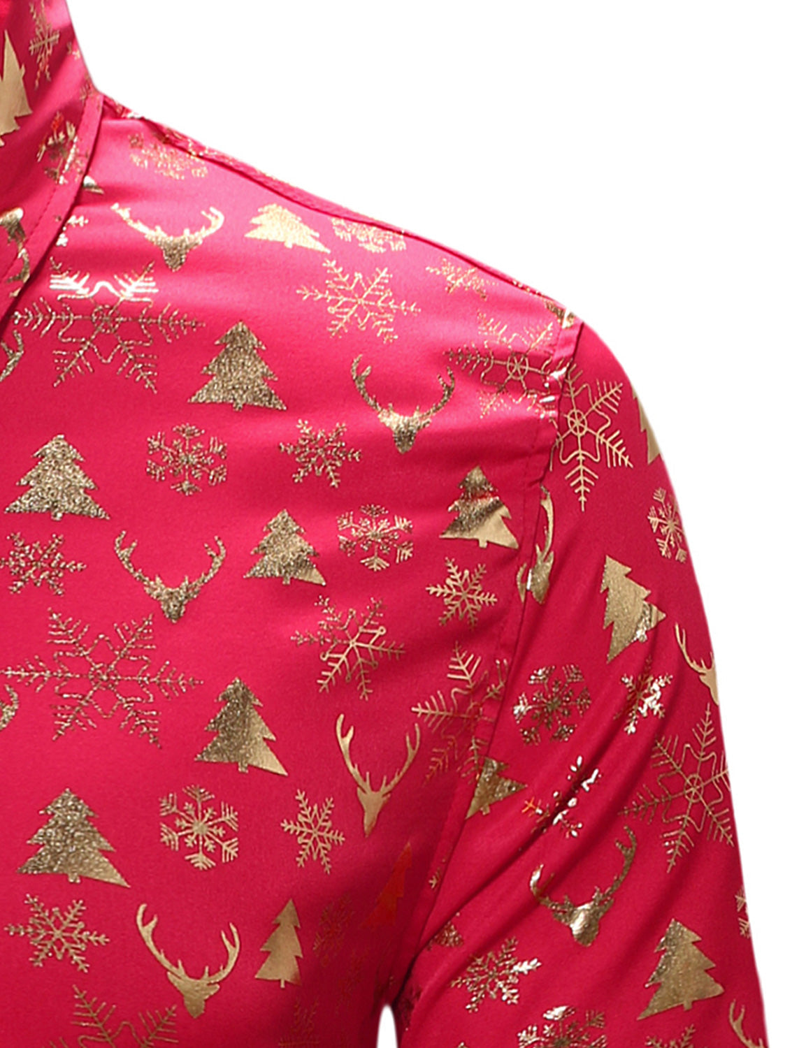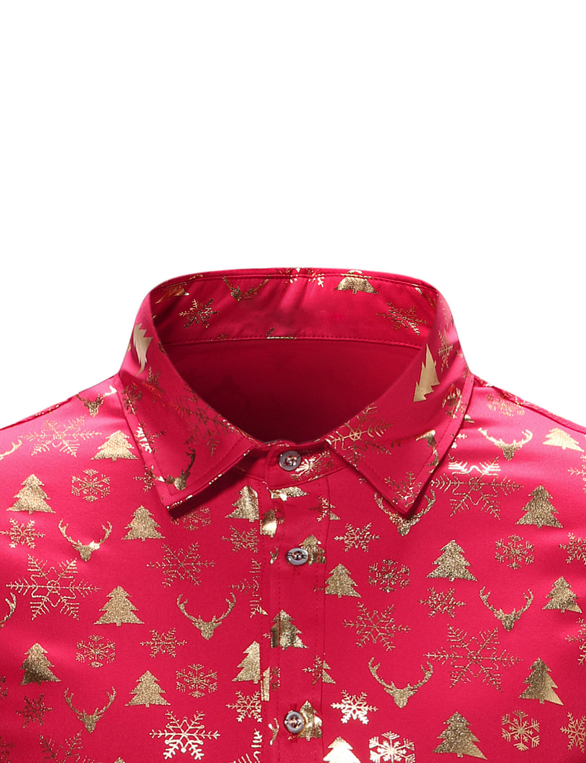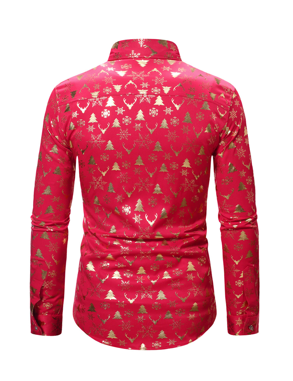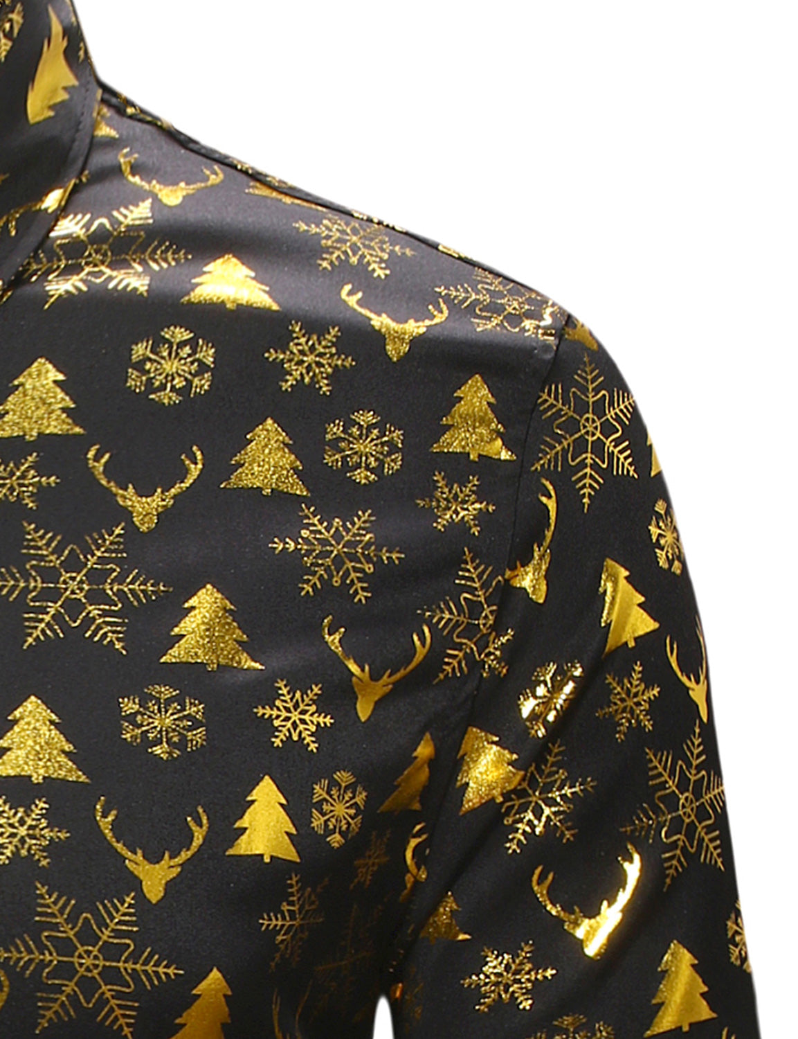 Men's Christmas Gold Print Xmas Party Button Up Long Sleeve Dress Shirt