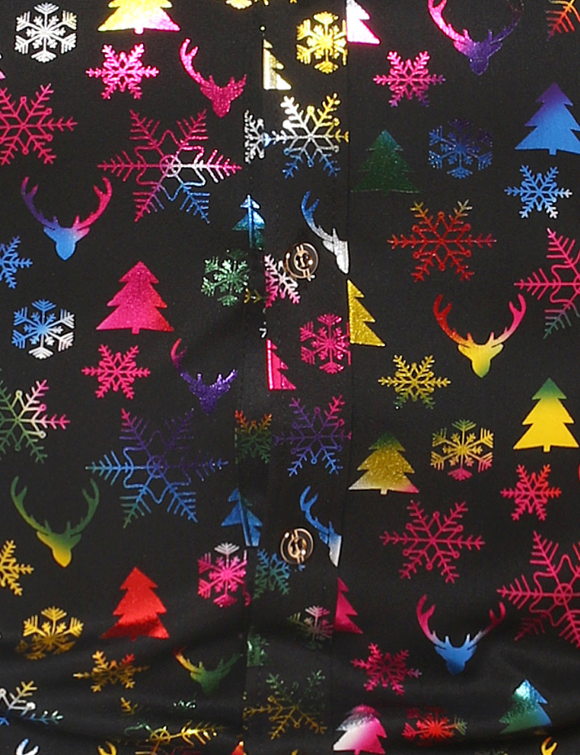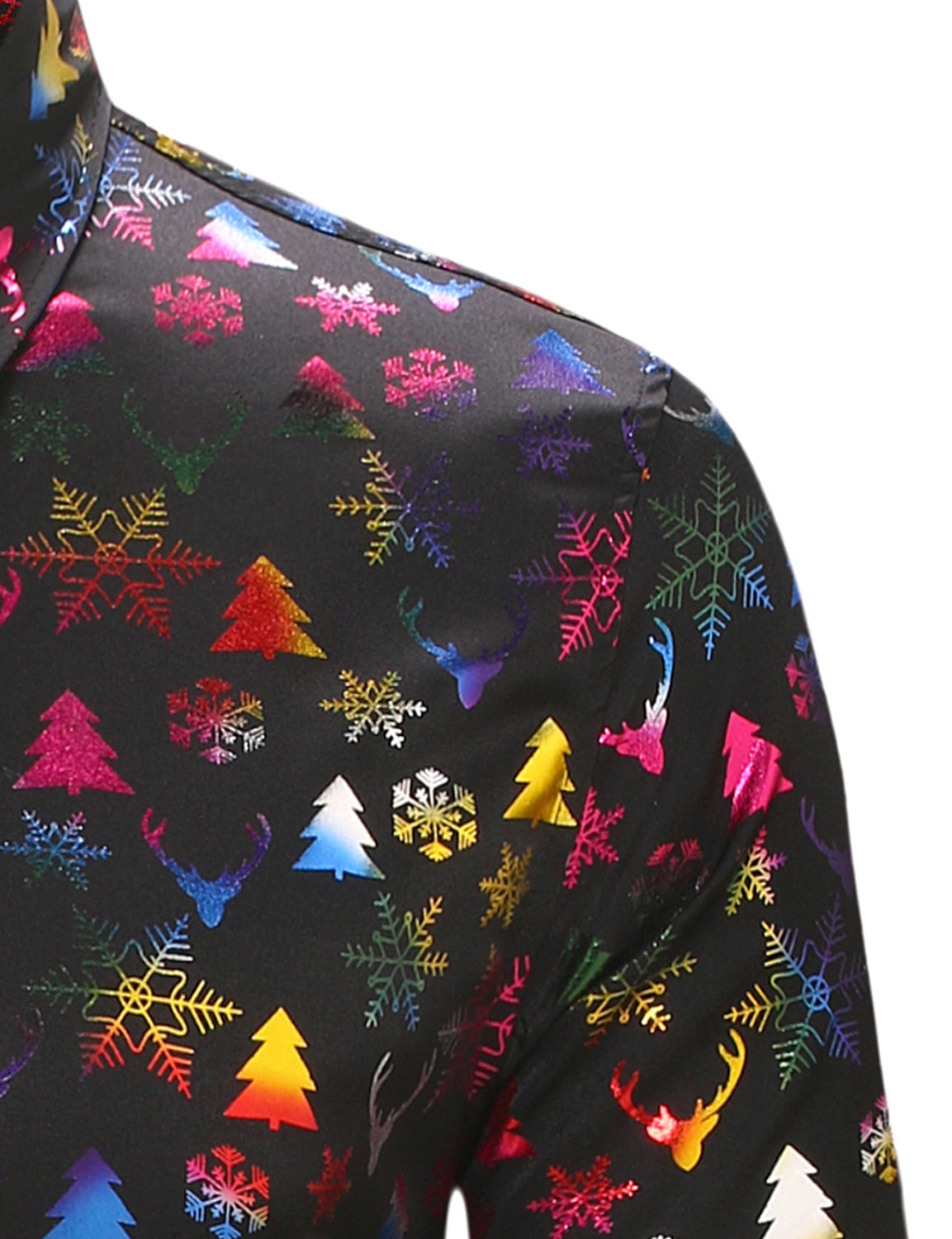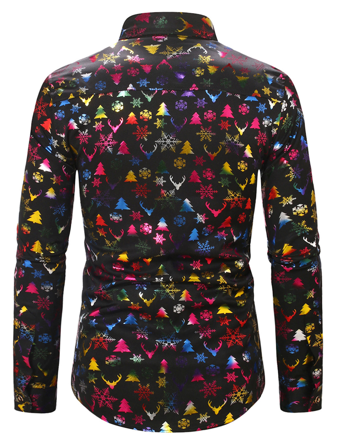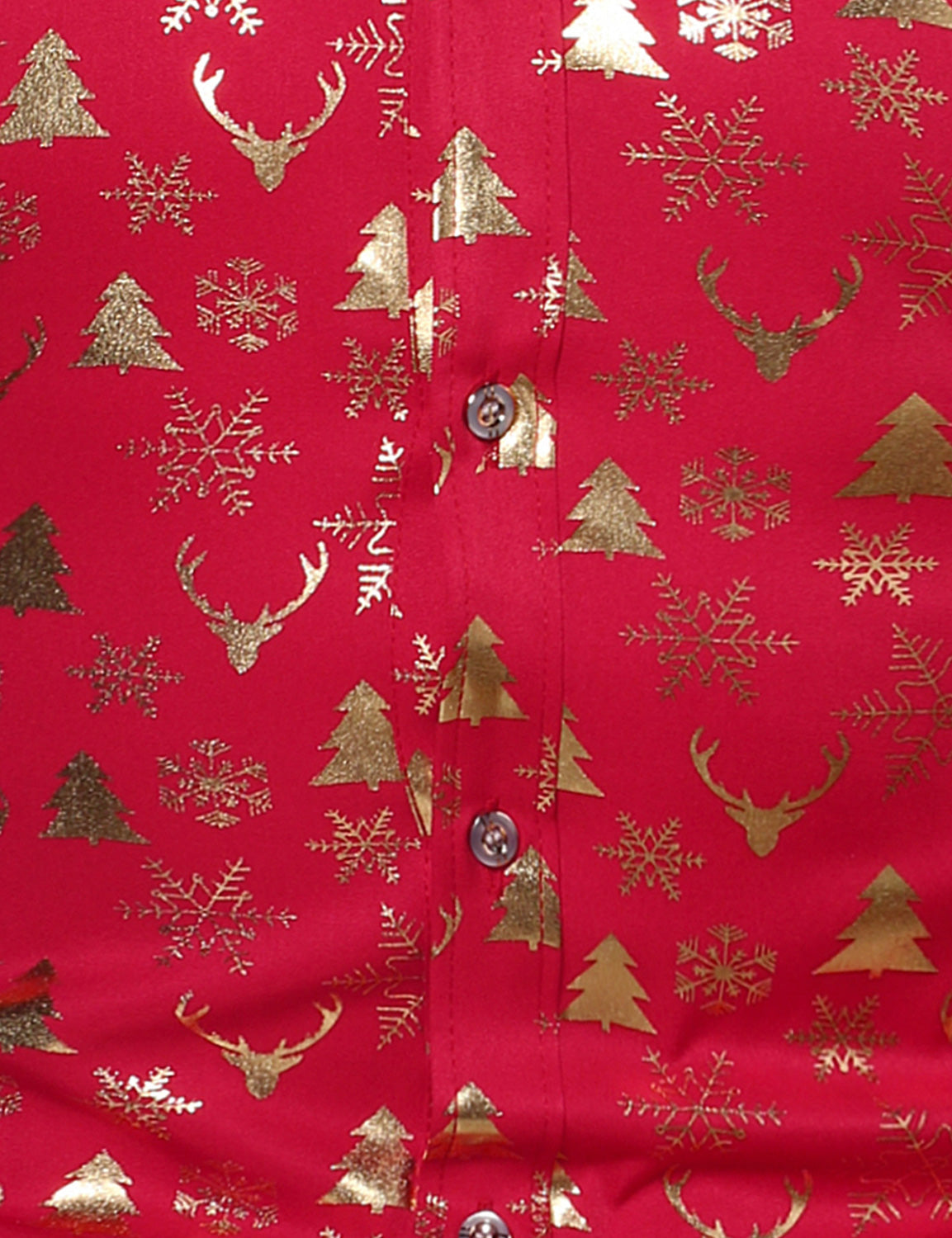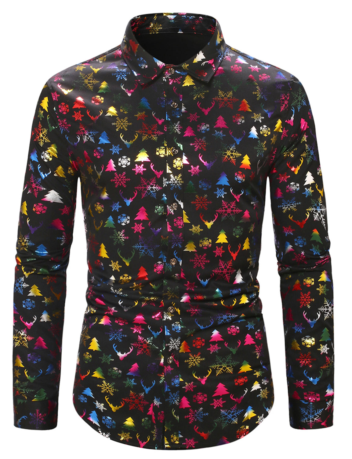 Men's Christmas Gold Print Xmas Party Button Up Long Sleeve Dress Shirt