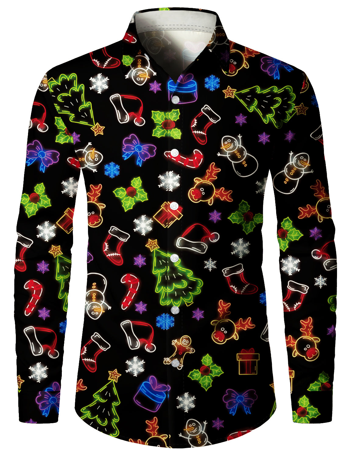 Men's Funny Neon Christmas Holiday Long Sleeve Shirt