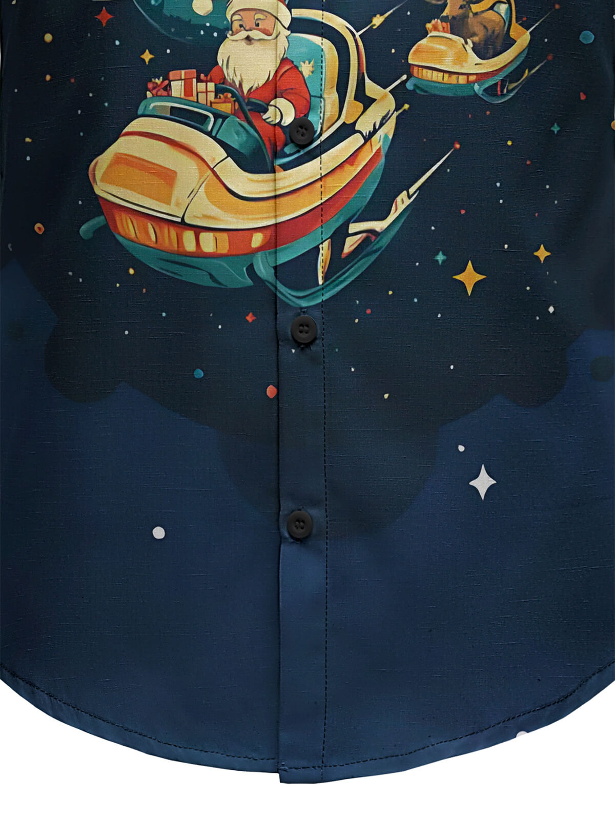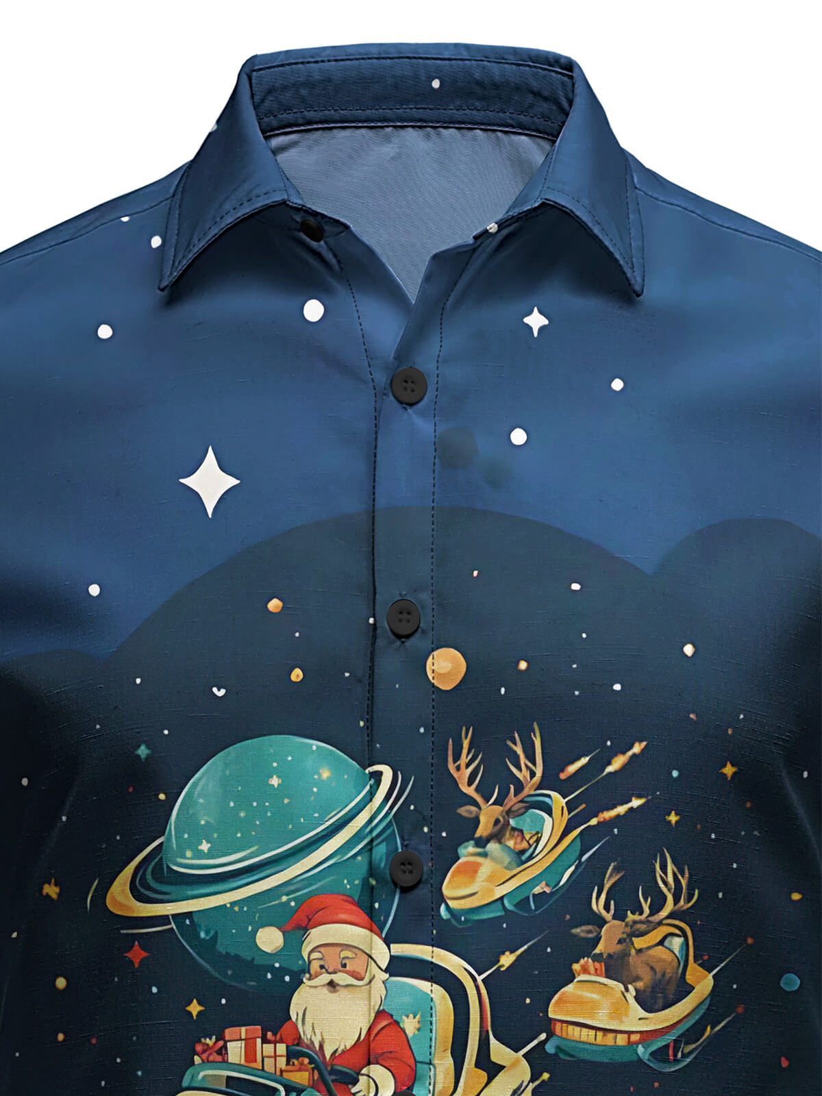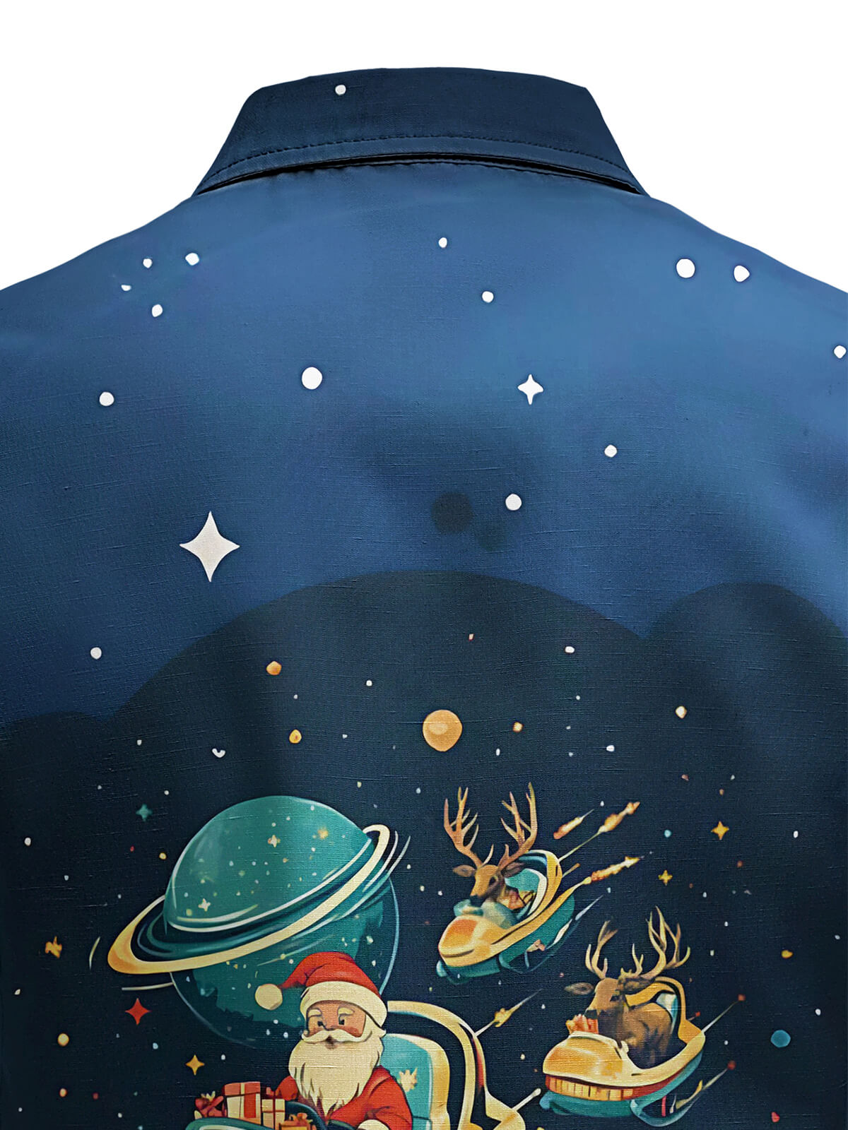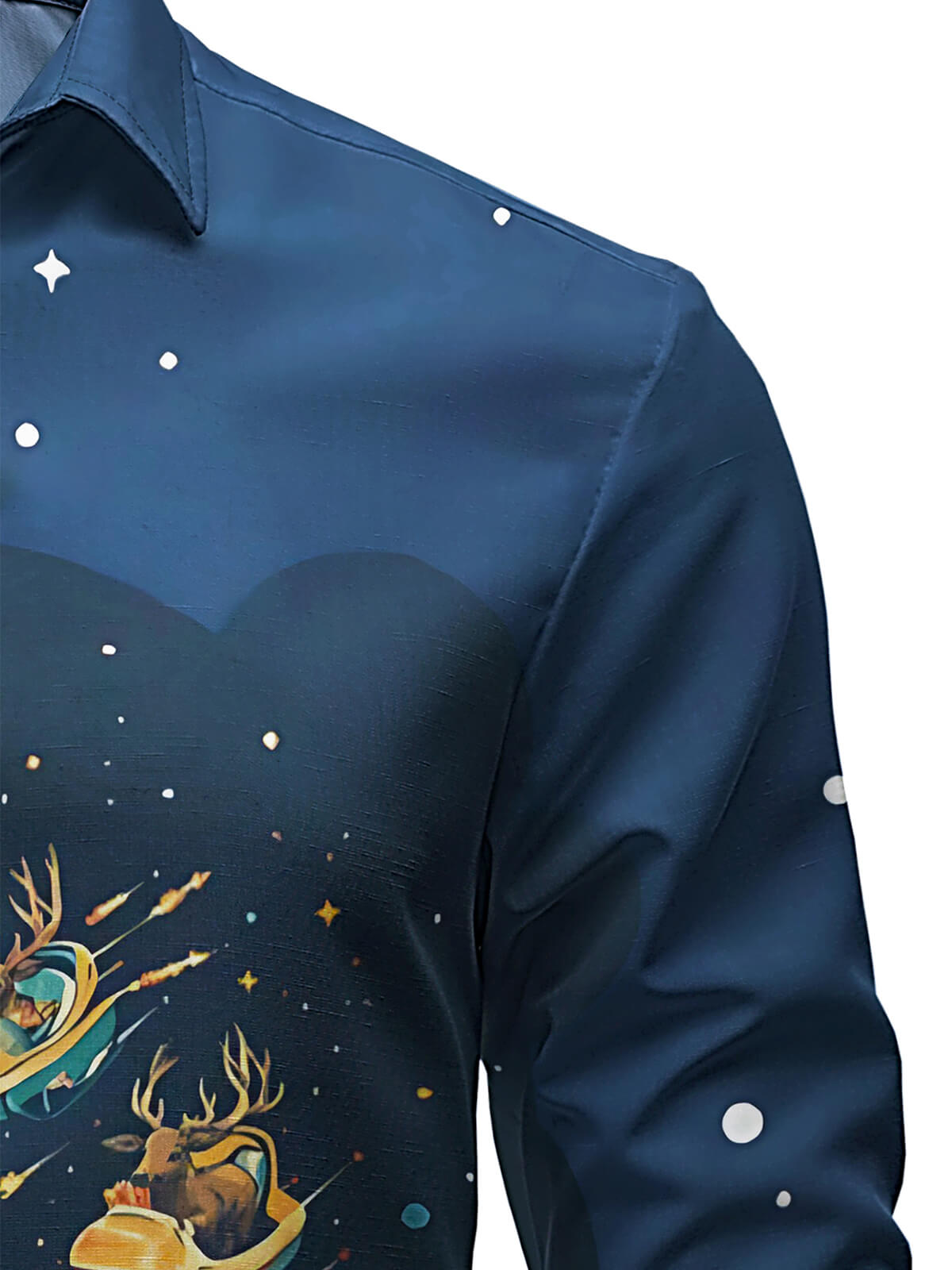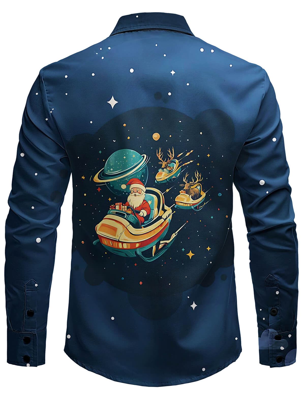 Men's Christmas Long Sleeve Space Elk Santa Shirt
