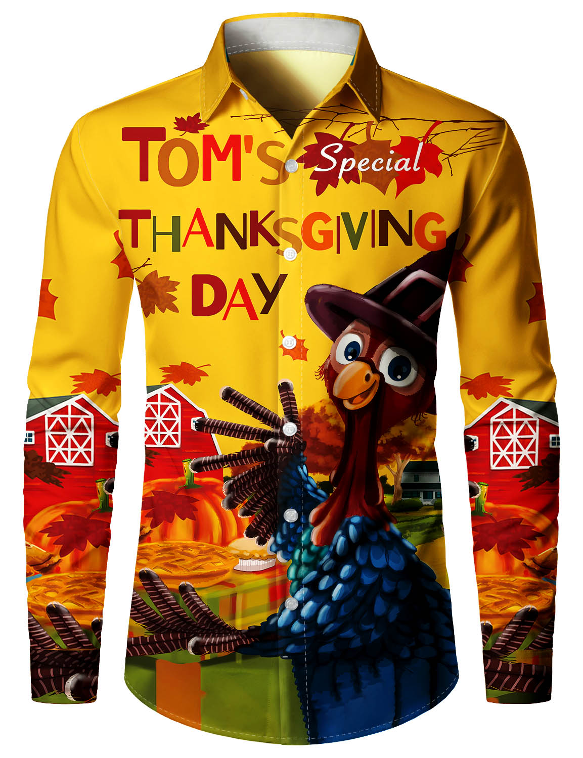 Men's Thanksgiving Garden Turkey Party Long Sleeve Shirt