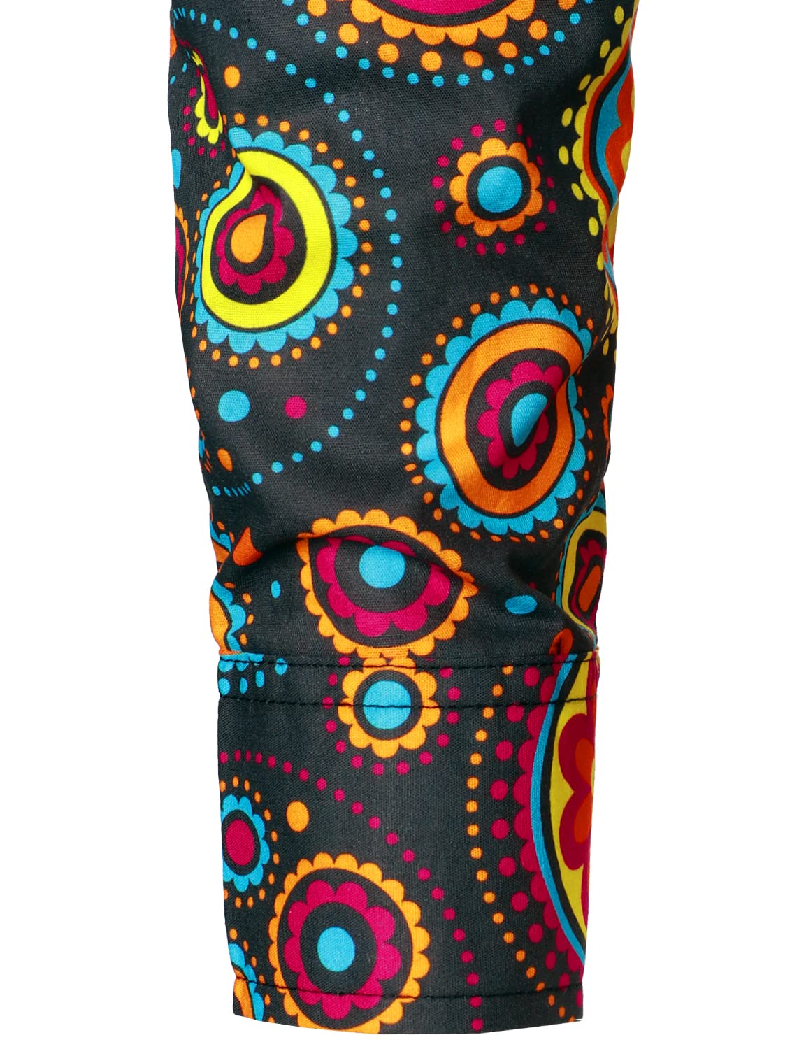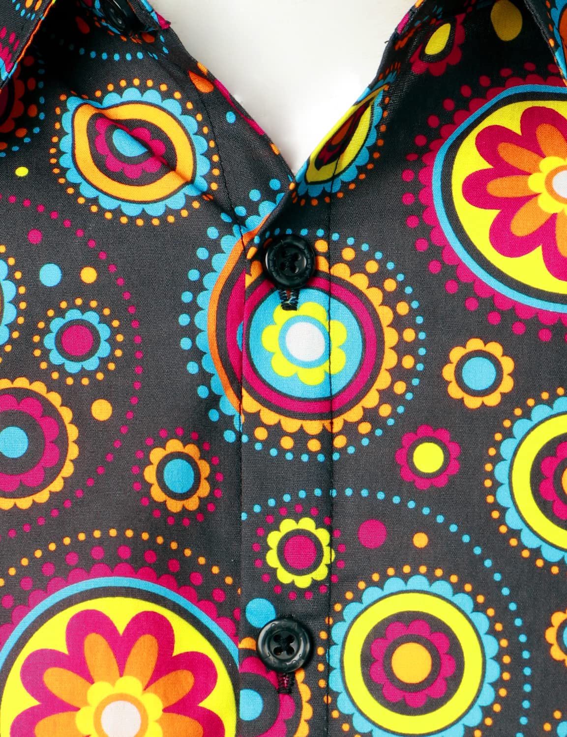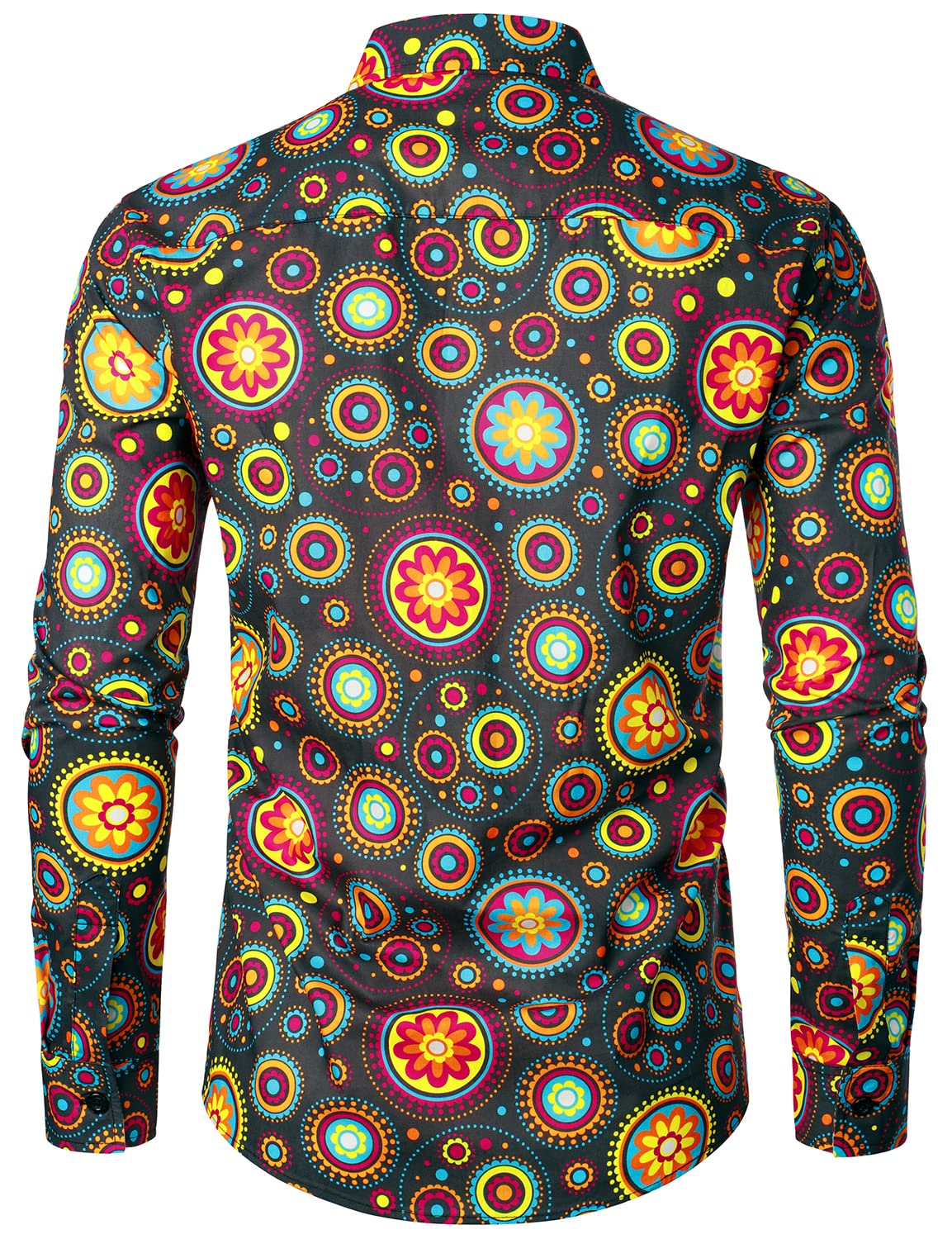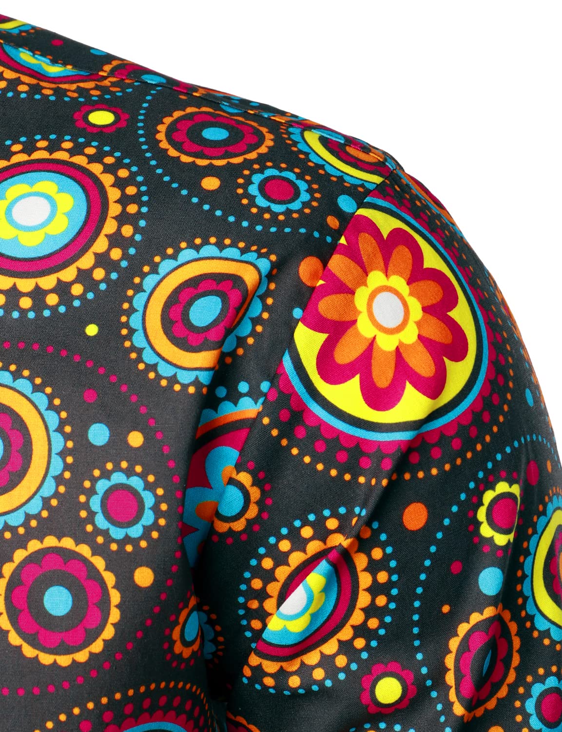Men's Floral Paisley Breathable Cotton Disco Flower Button Up Long Sleeve Dress Shirt