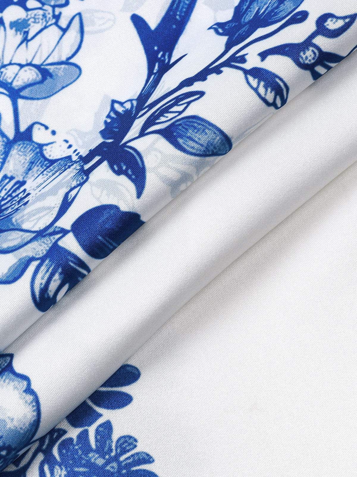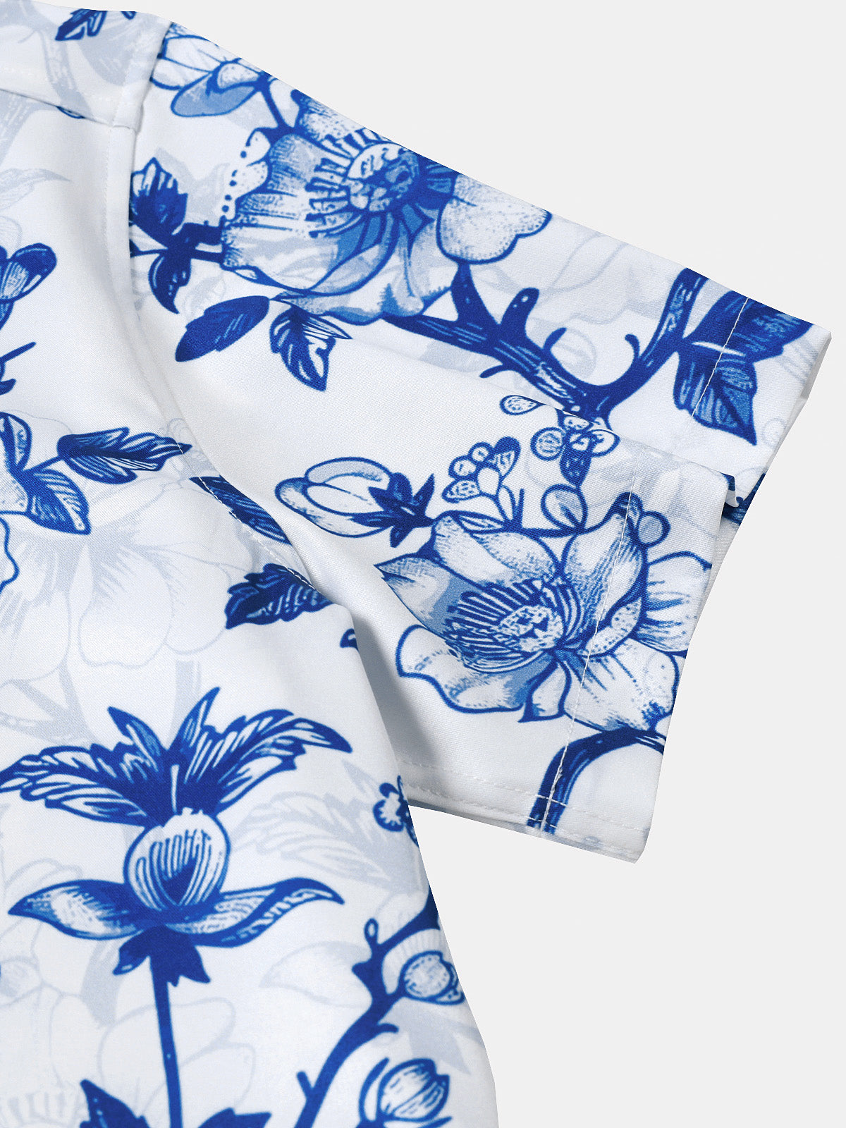 Men's Blue Floral Print Summer Beach Cruise Hawaiian Short Sleeve Shirt