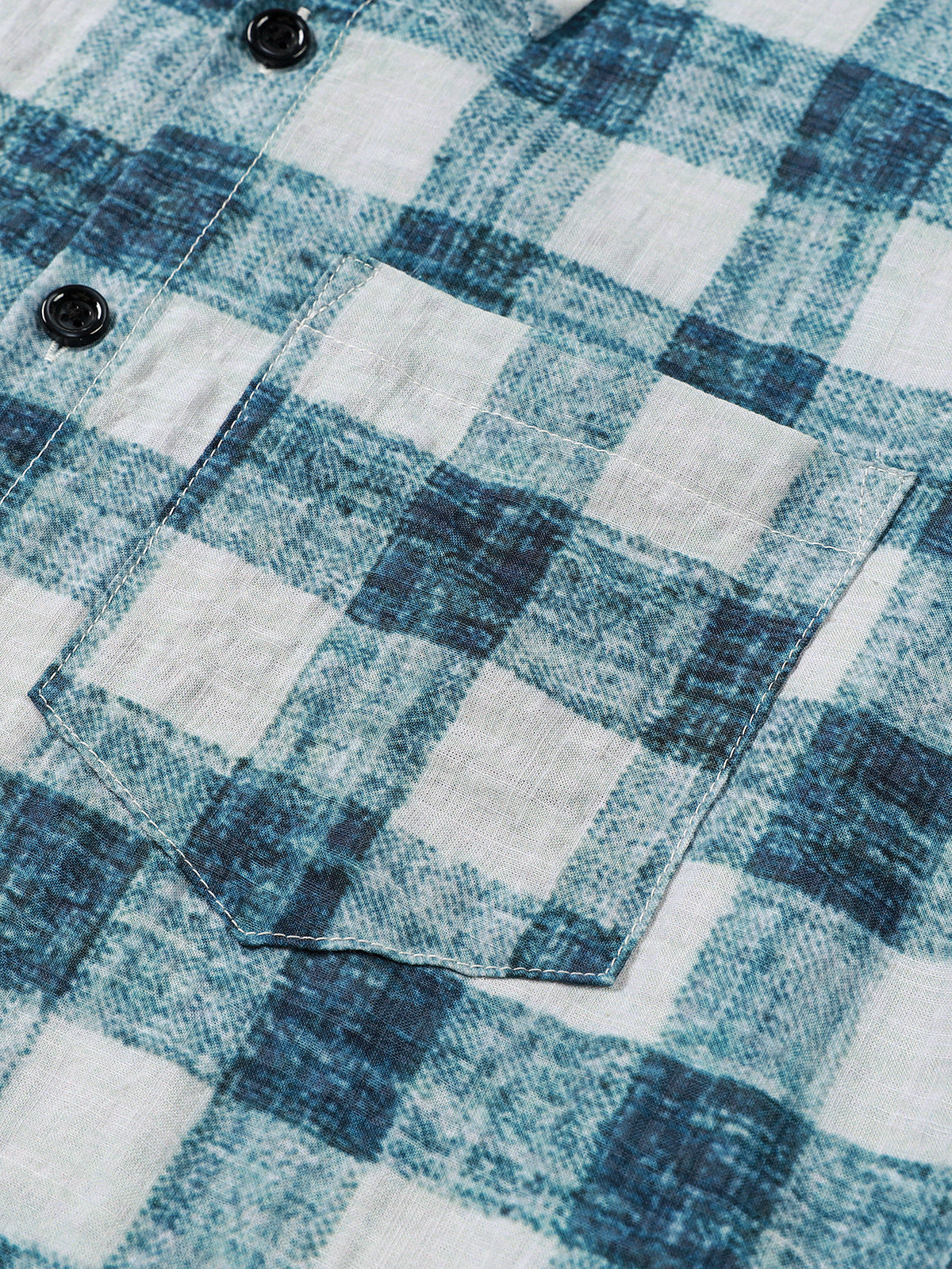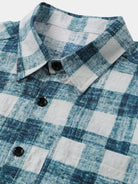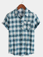 Men's Blue Plaid Casual Short Sleeve Shirt