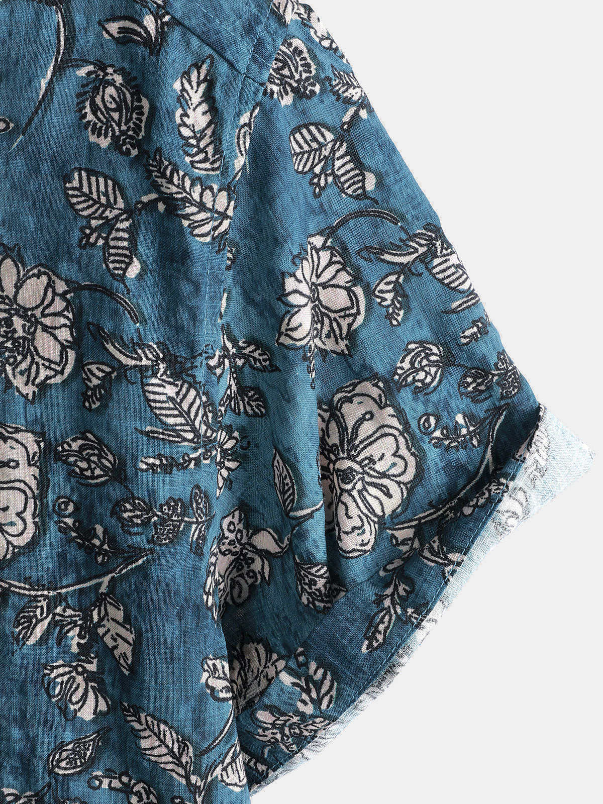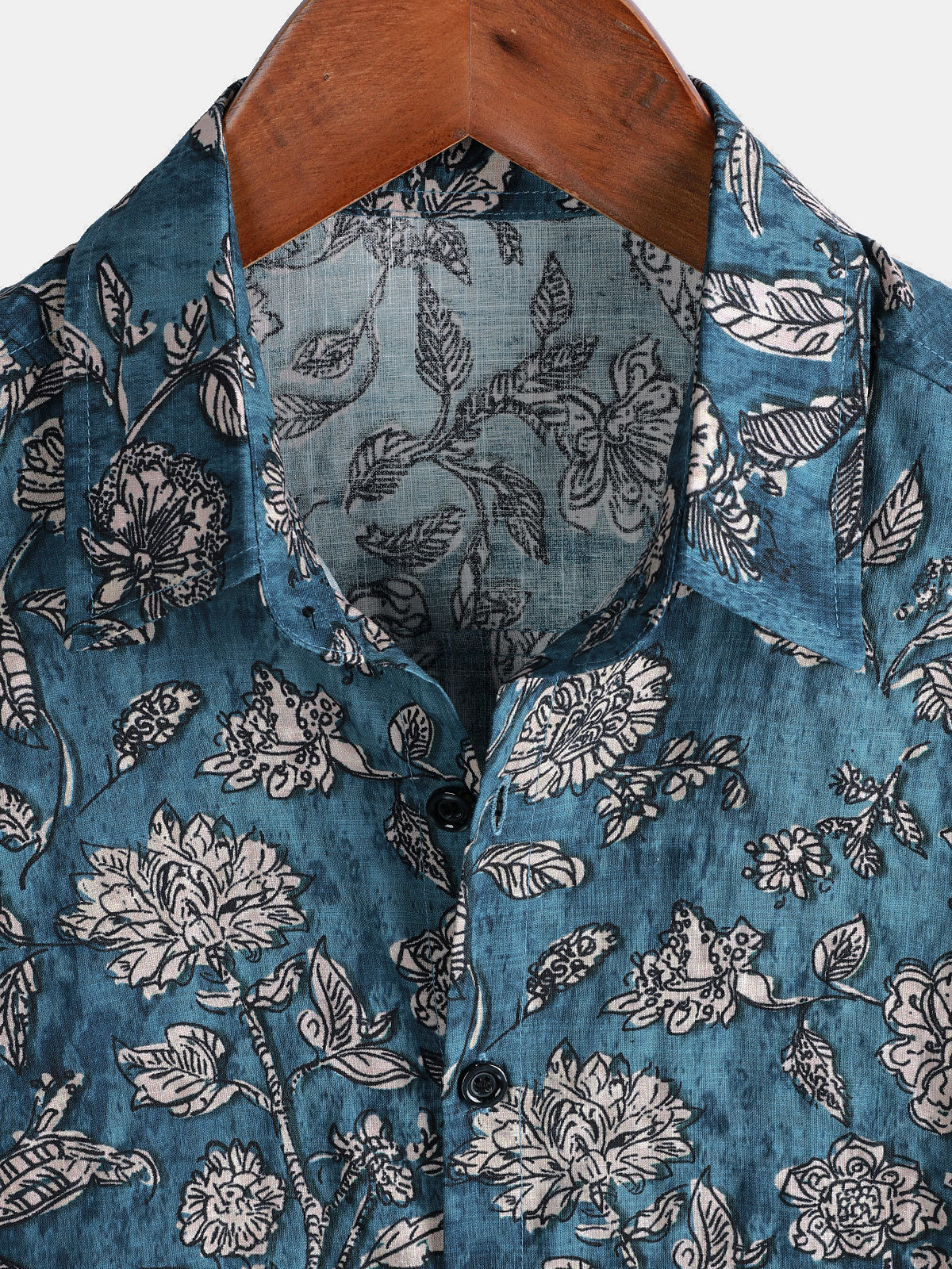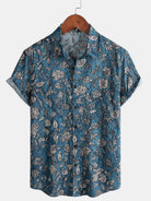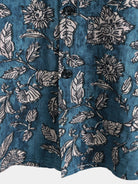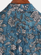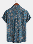 Men's Blue Retro Botanical Print Vacation Short Sleeve Shirt