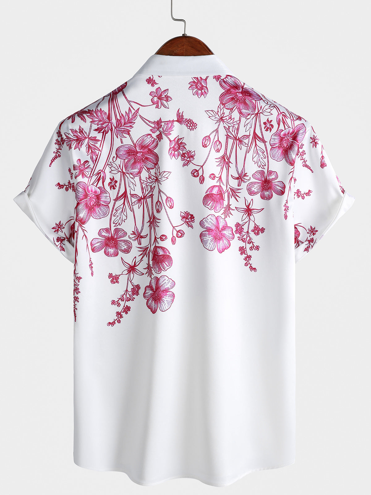Men's Floral Print Hawaiian Cruise Vacation Short Sleeve Shirt