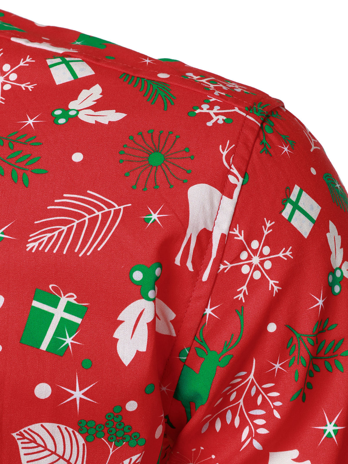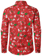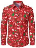 Men's Funny Christmas Tree and Reindeer Red Long Sleeve Shirt