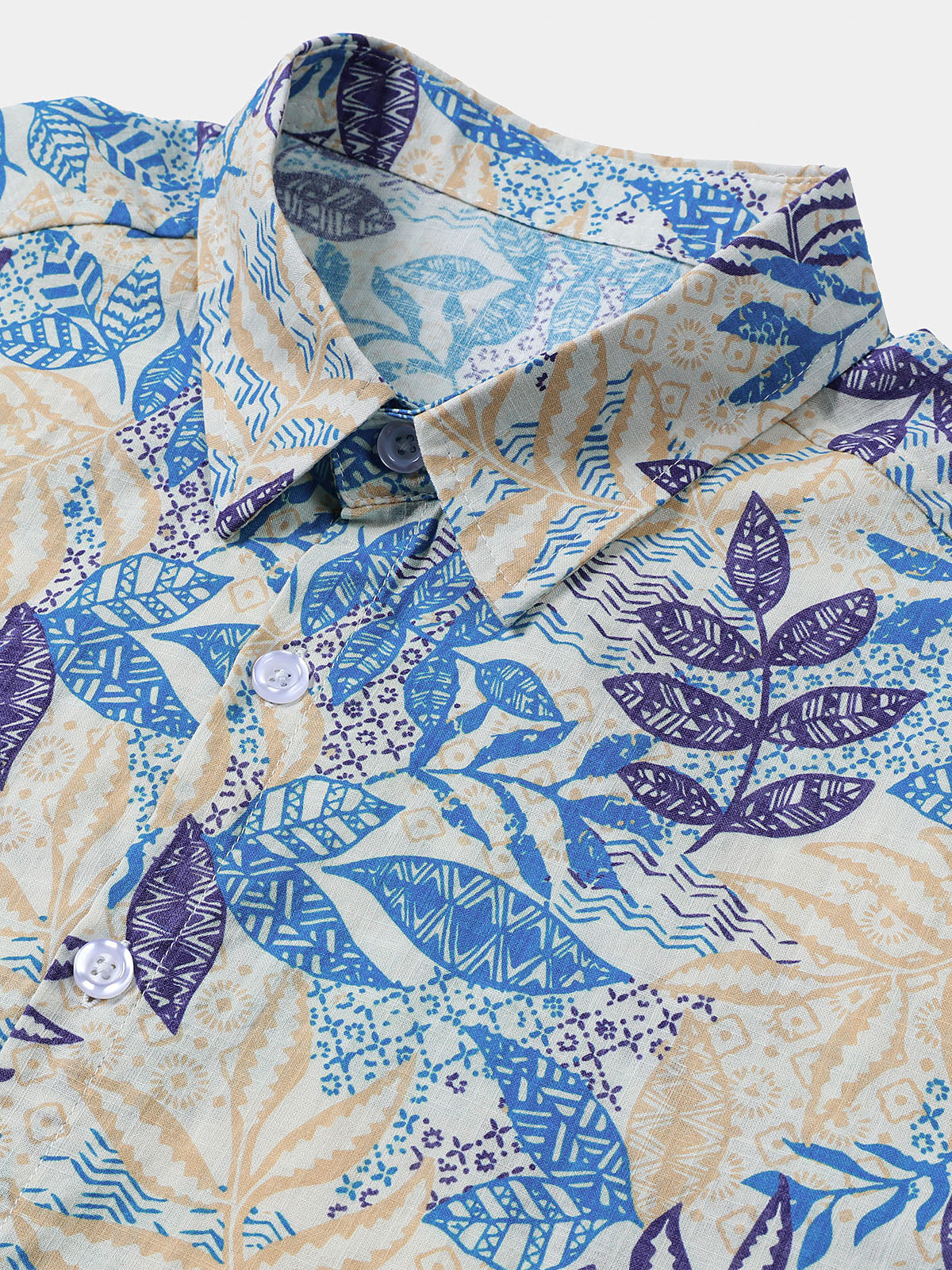 Men's Tropical Leaf Print Boho Vacation Short Sleeve Shirt