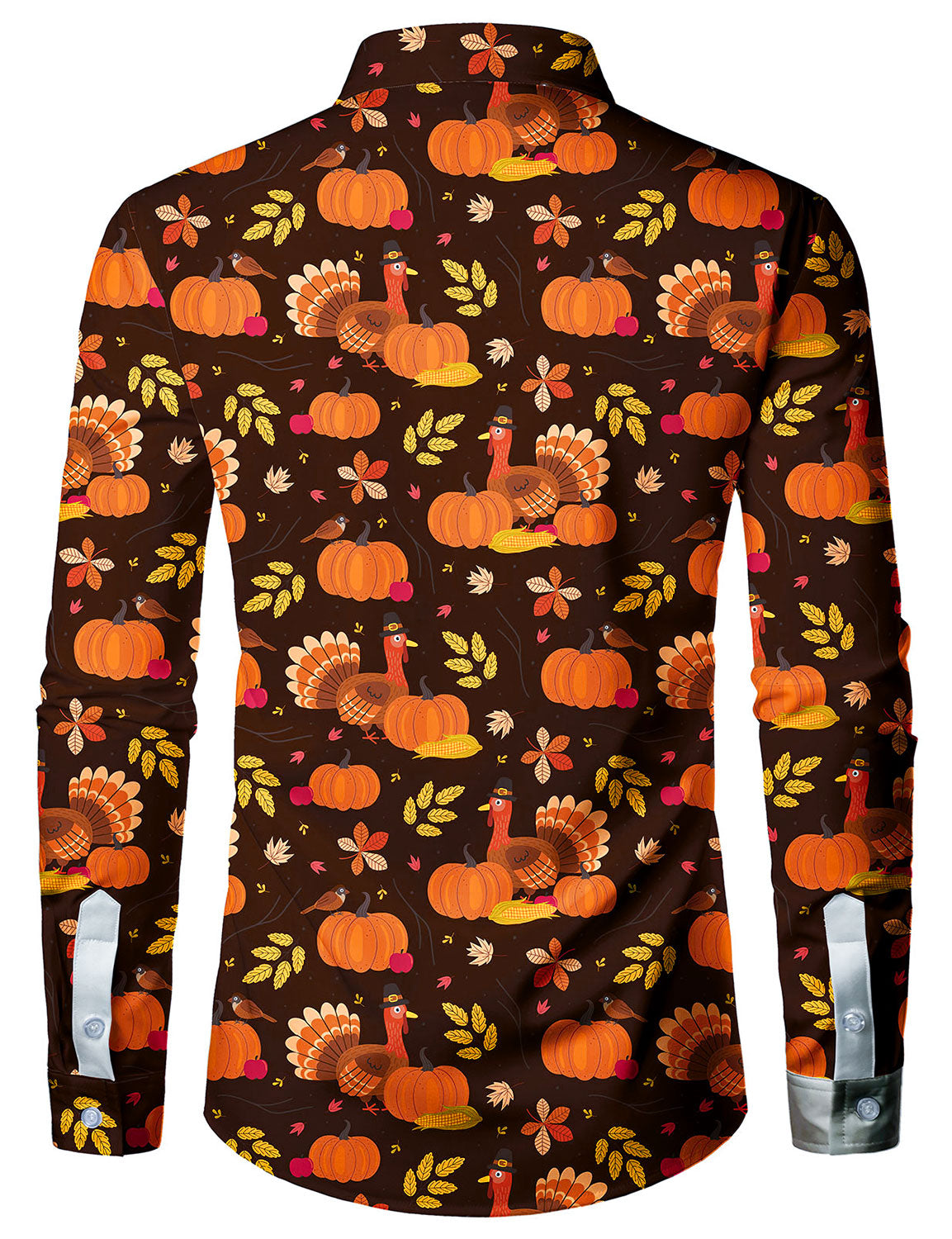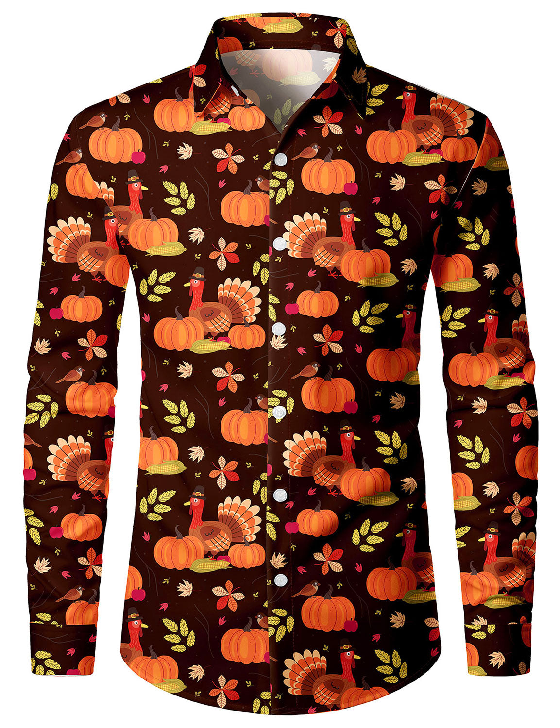 Men's Casual Holiday Thanksgiving Cartoon Turkey Pumpkin Long Sleeve Shirt