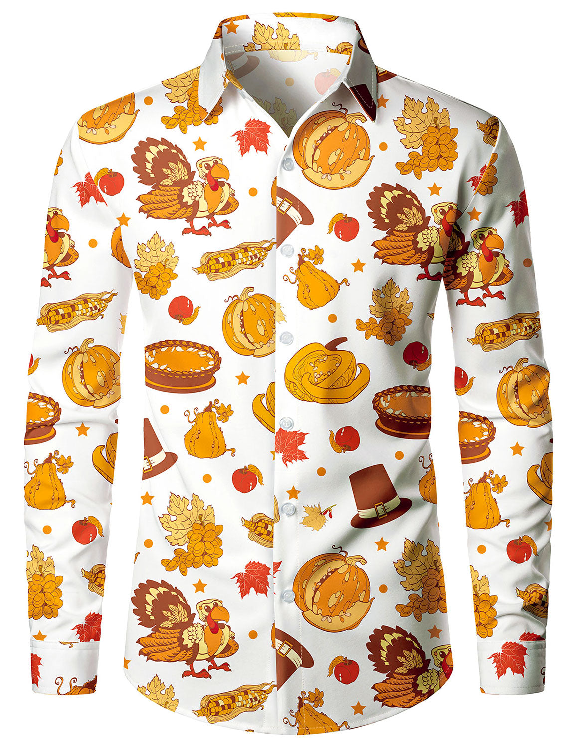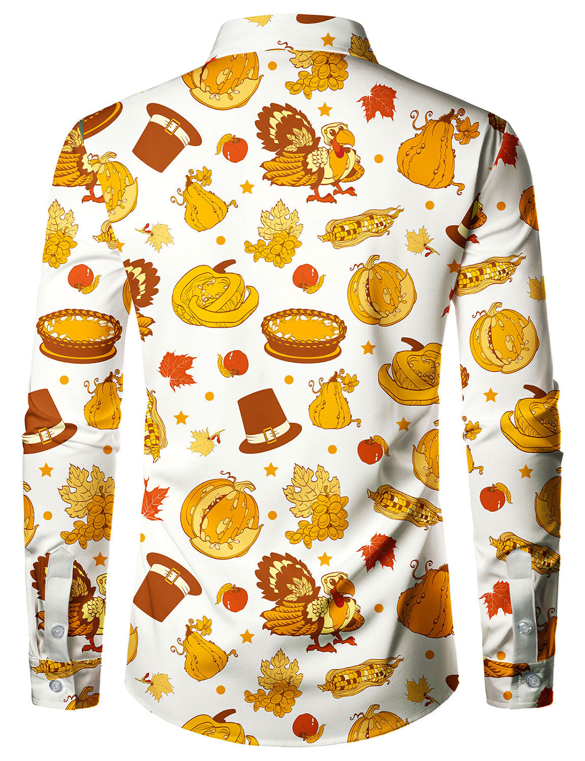 Men's Casual Thanksgiving Turkey Pumpkin Holiday Button Long Sleeve Shirt