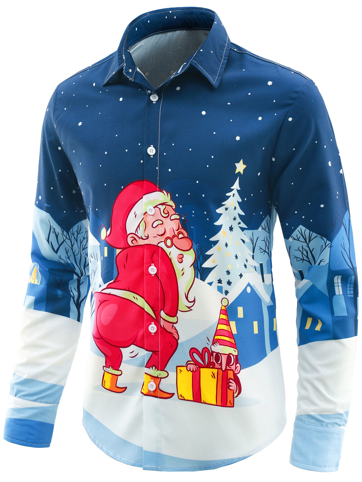Men's Funny Santa Ugly Christmas Holiday Button Long Sleeve Shirt