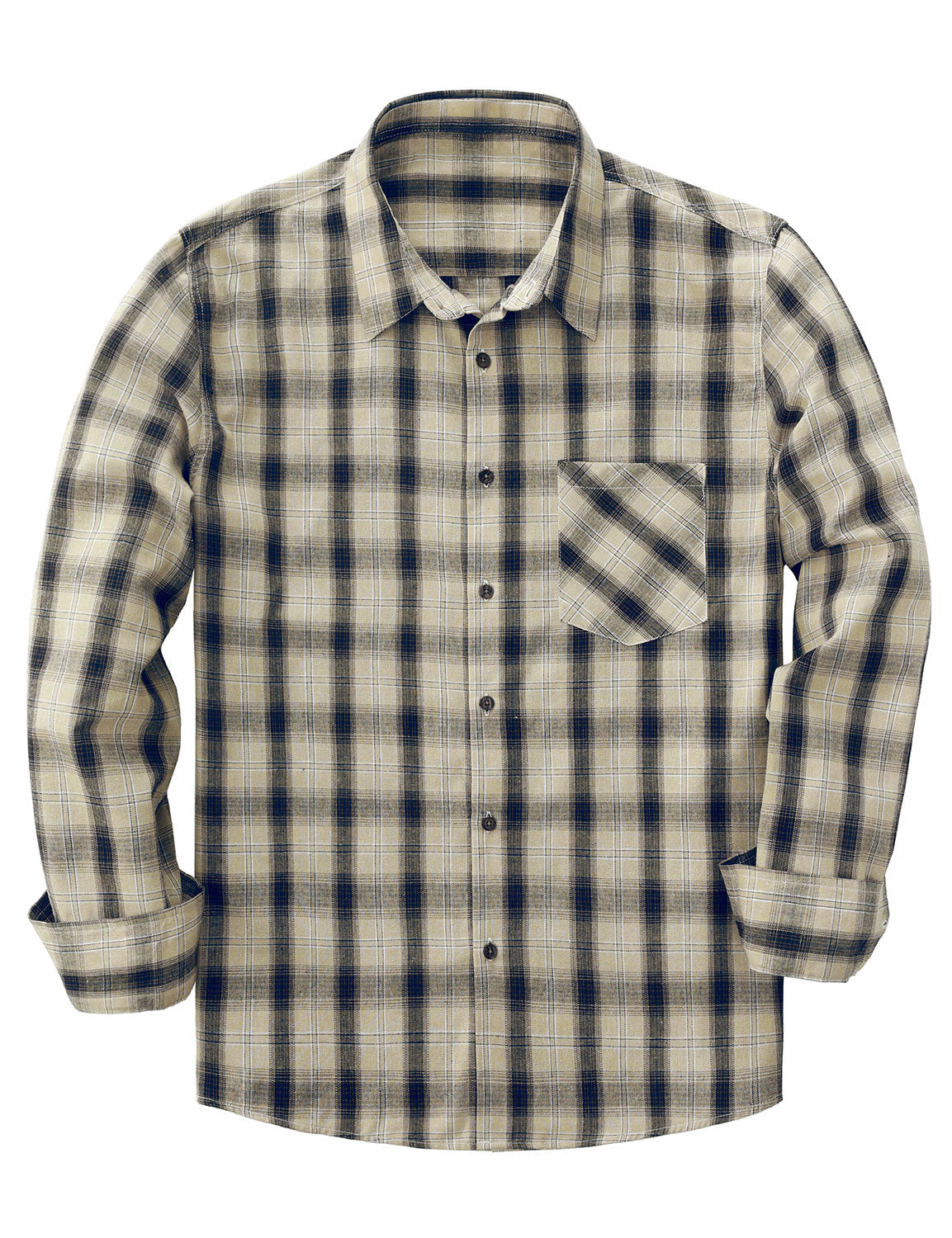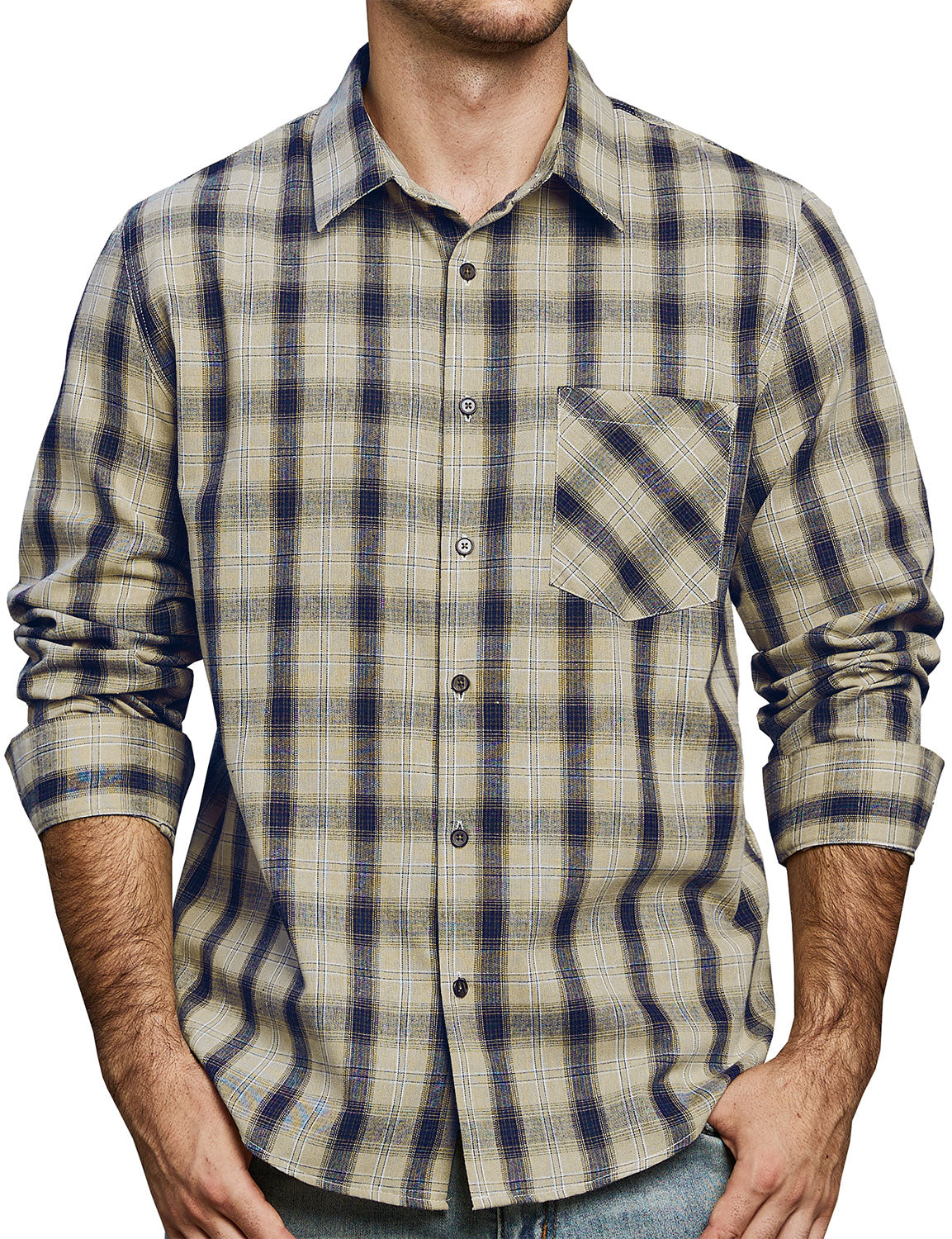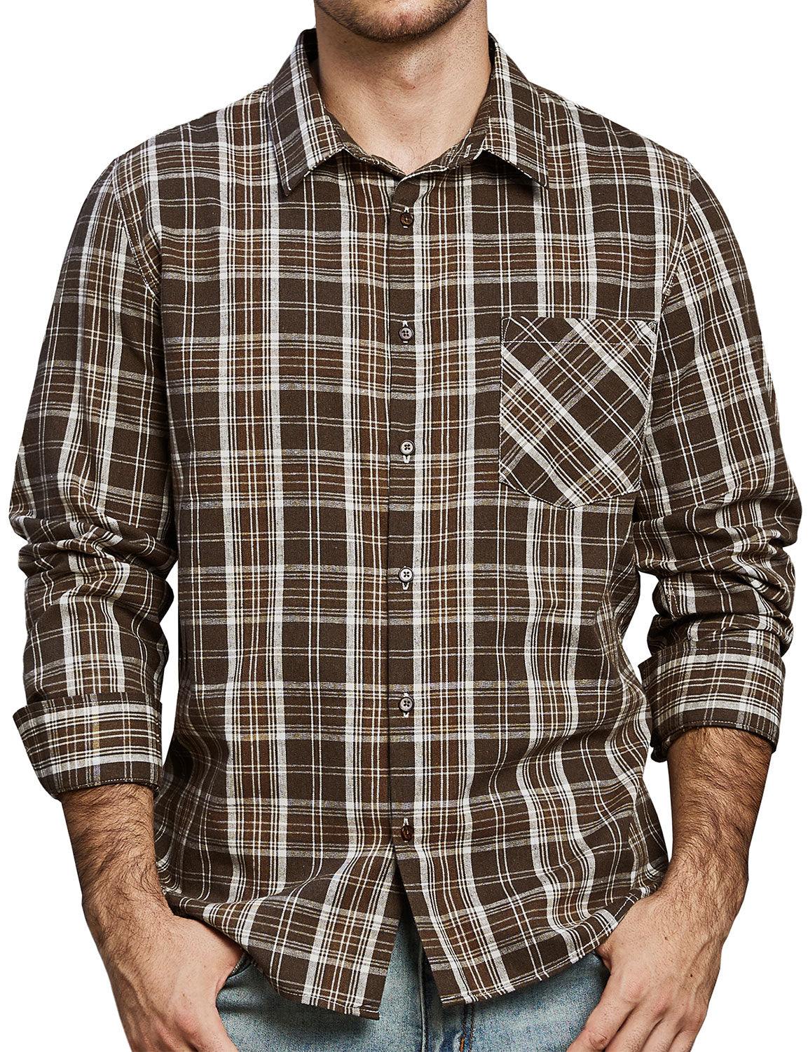 Men's Plaid Casual Retro Pocket Long Sleeve Dress Shirt