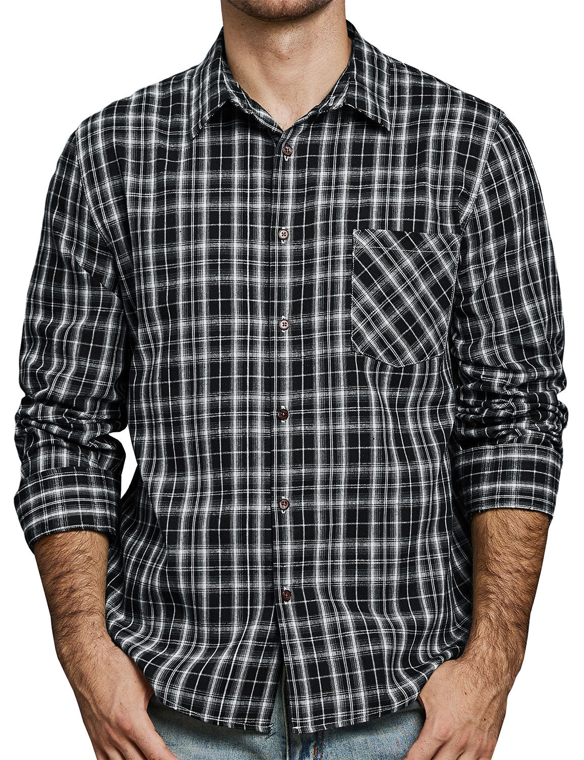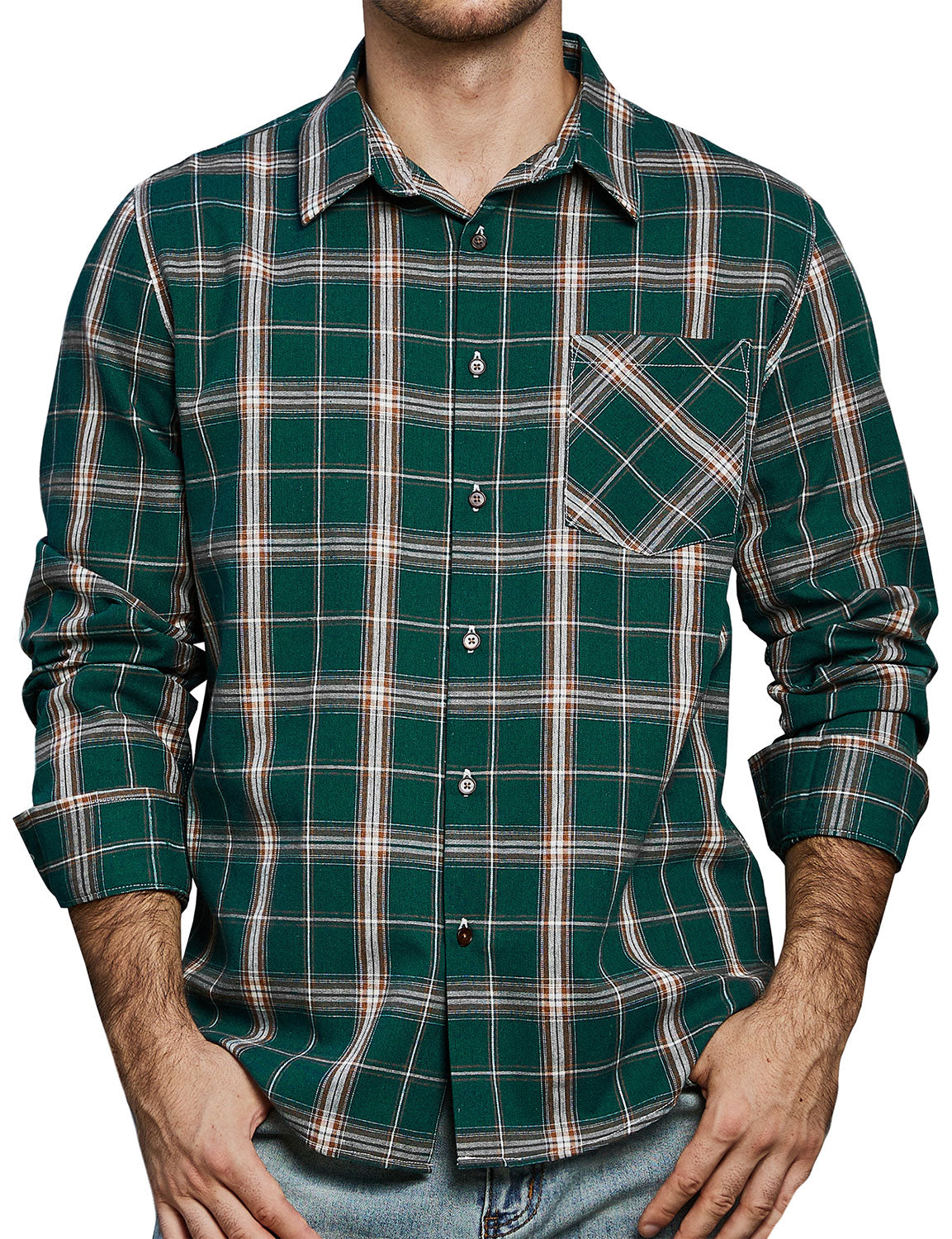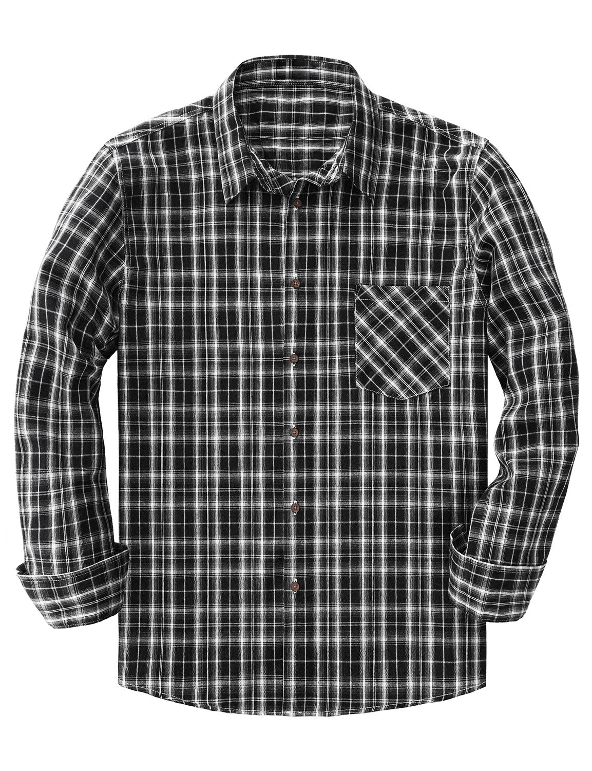 Men's Plaid Casual Retro Pocket Long Sleeve Dress Shirt