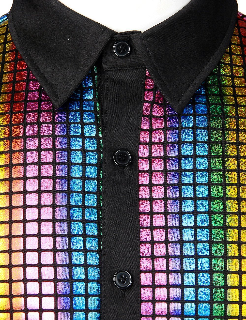 Men's Dress Shirt Sequins Button Down Shirts Disco Party Costume