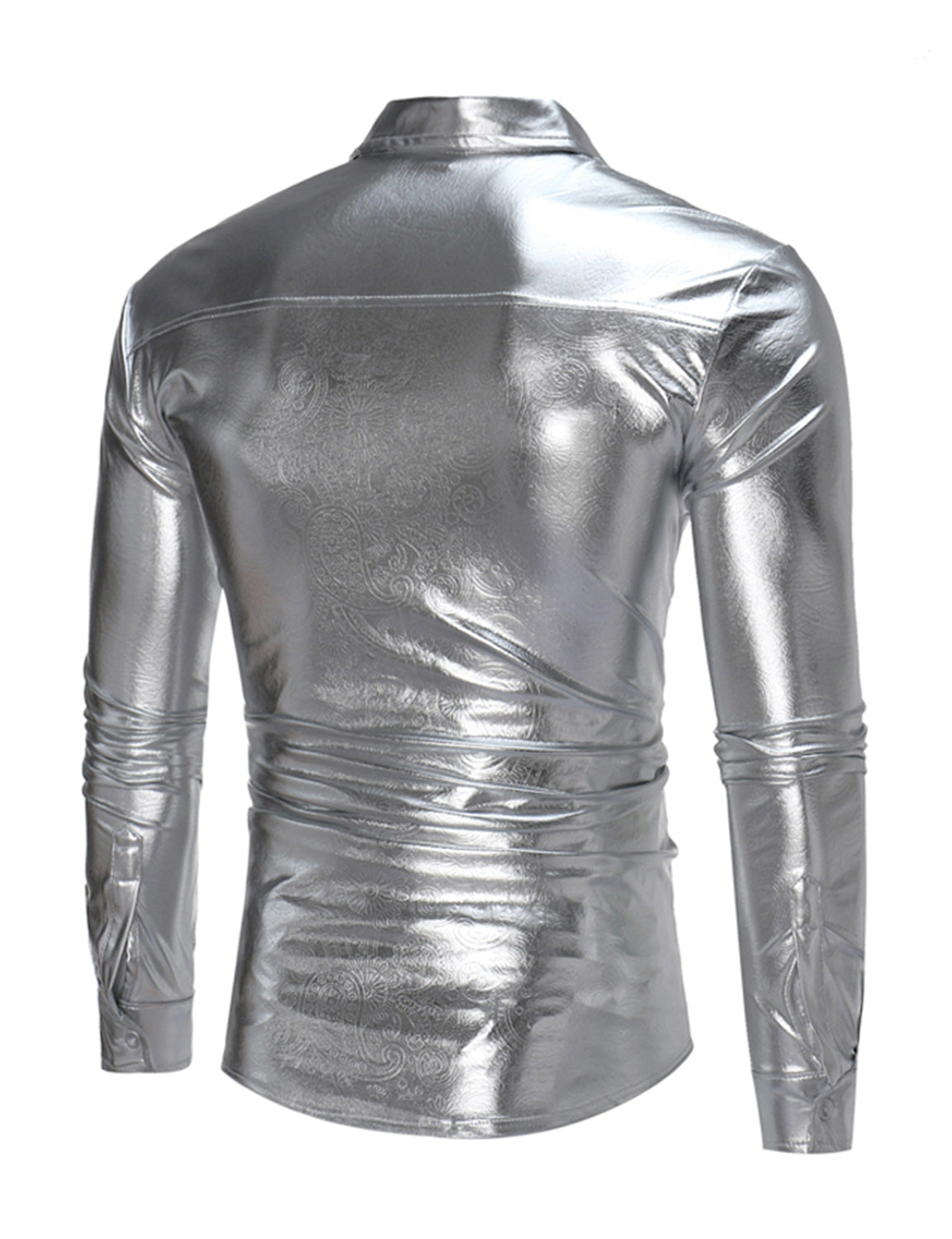 Men's Party Nightclub Button Up Cool Leather Long Sleeve Shirt
