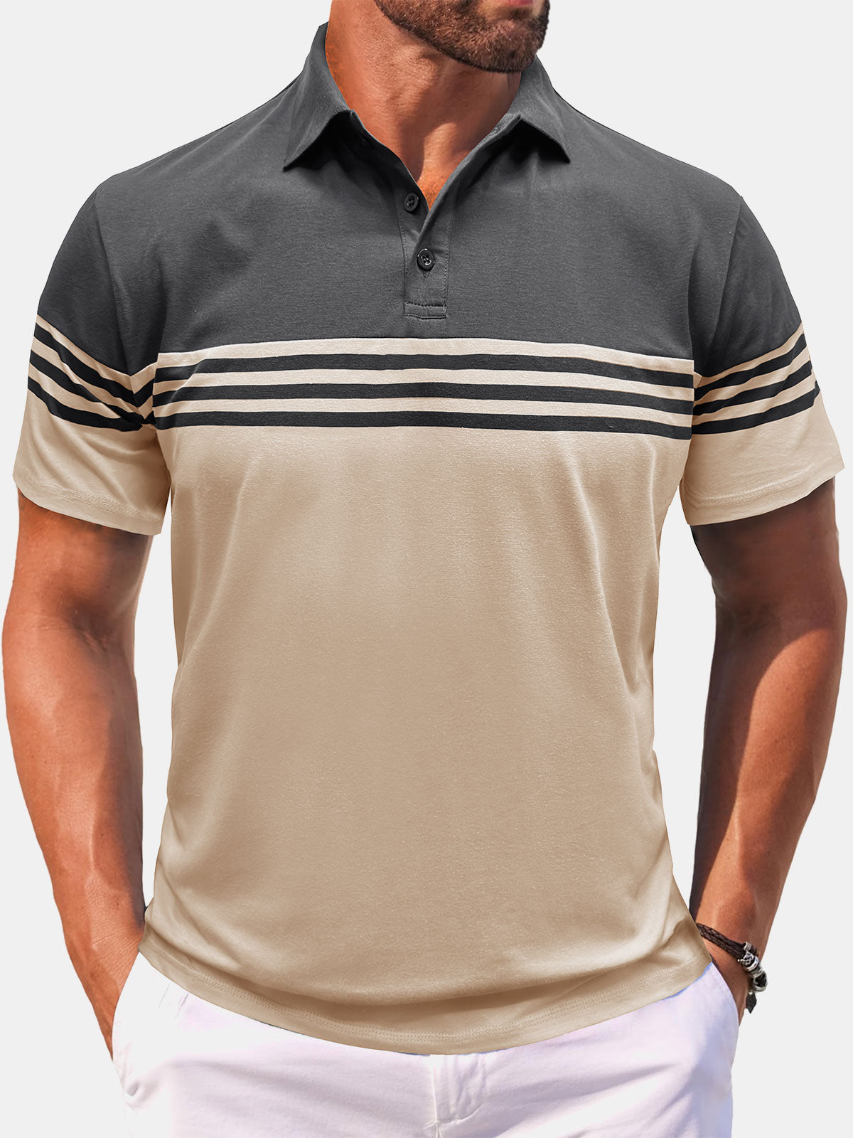 Men's Two-Tone Short Sleeve Polo Shirt with Pocket