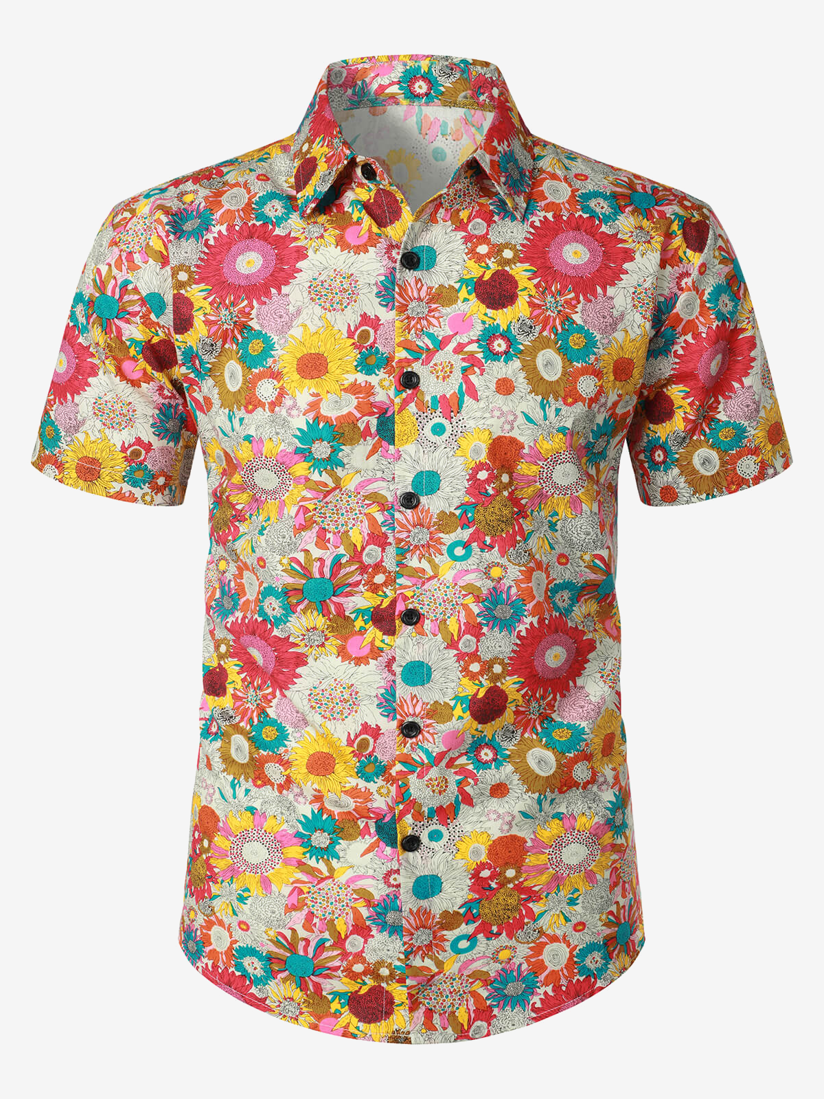 Men's Floral Cool Flower Summer Cotton Button Up Beach Short Sleeve Hawaiian Shirt