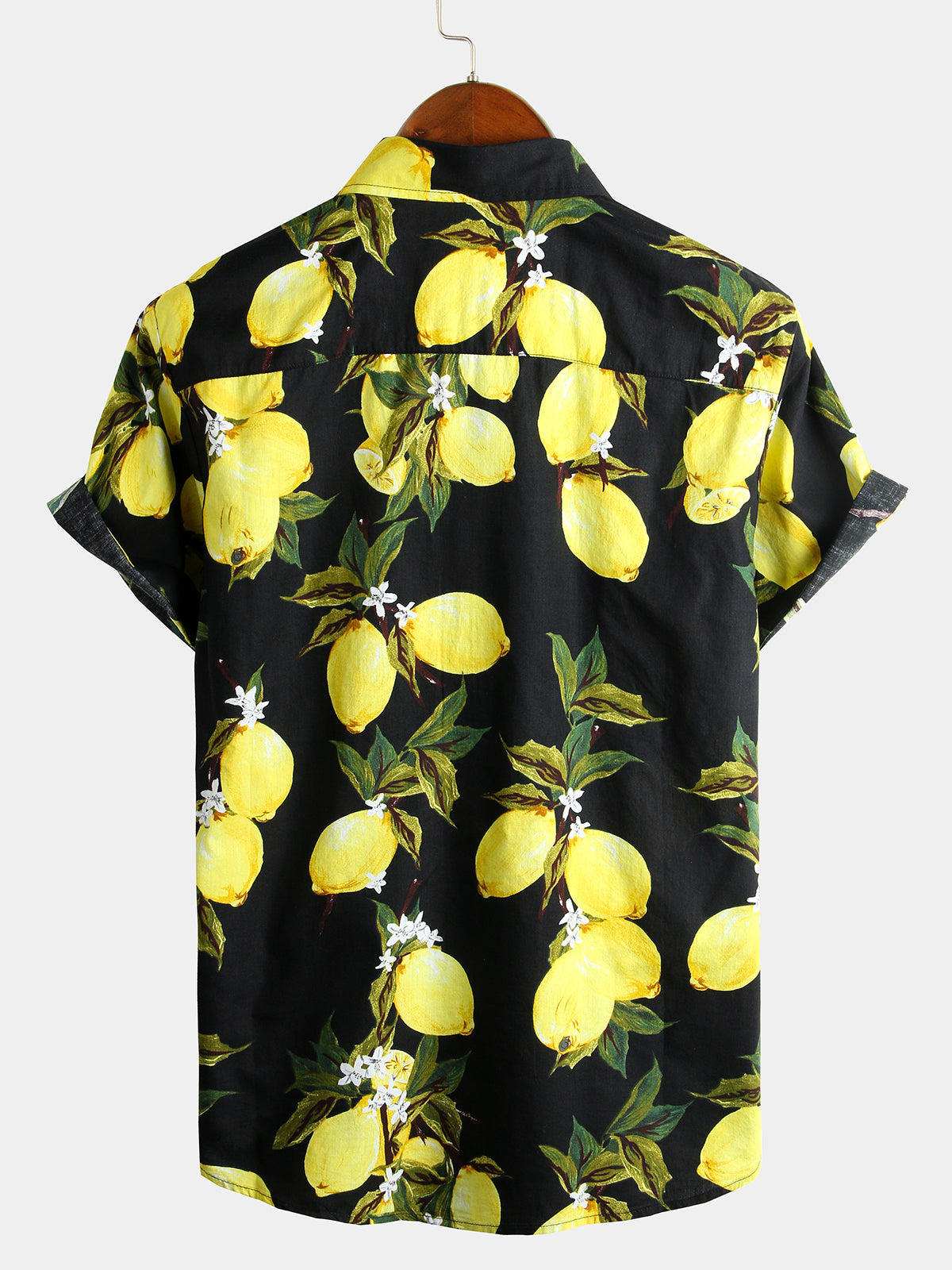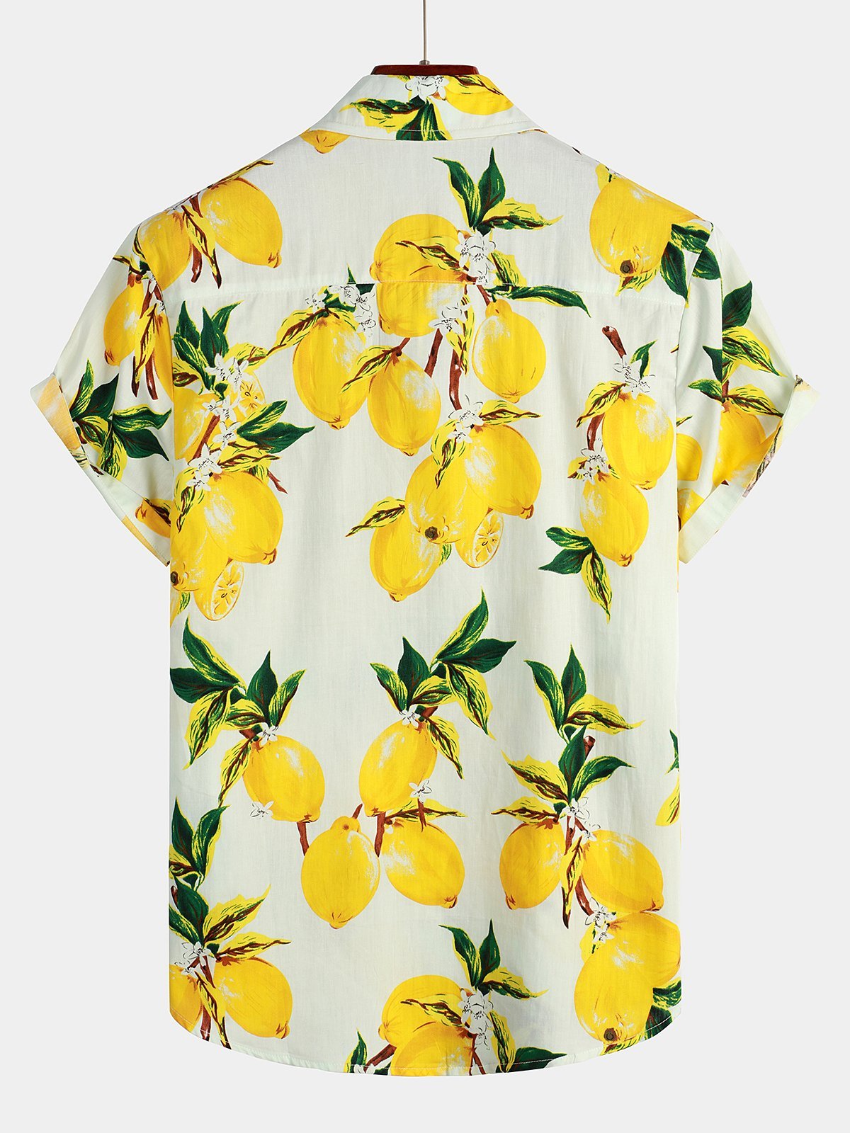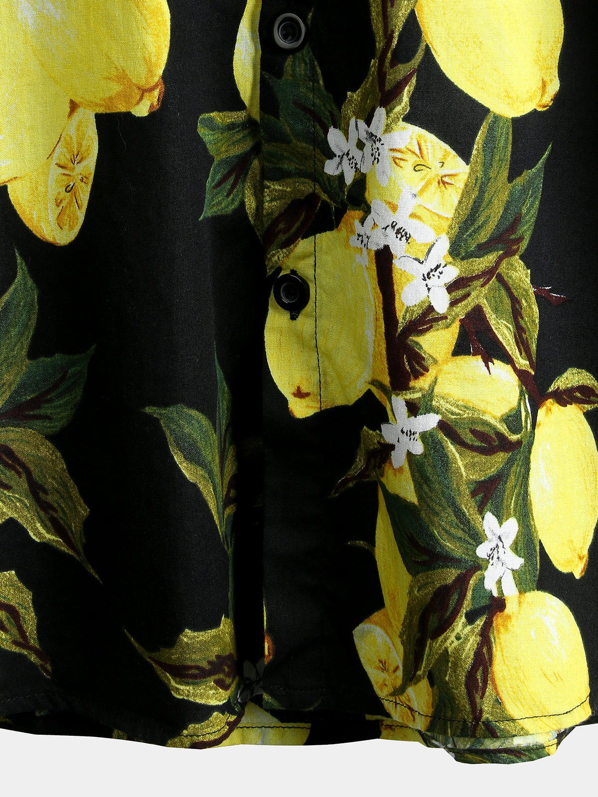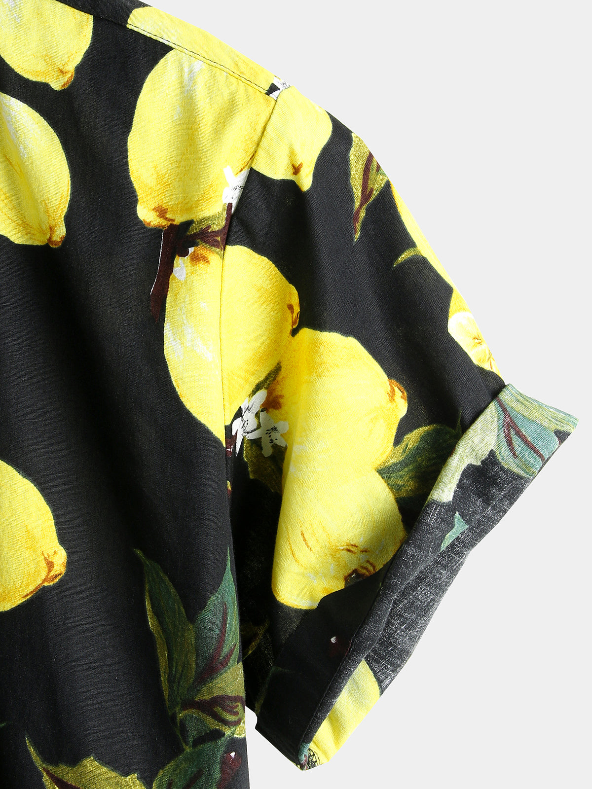 Men's Lemon Print Short Sleeve Hawaiian Shirt