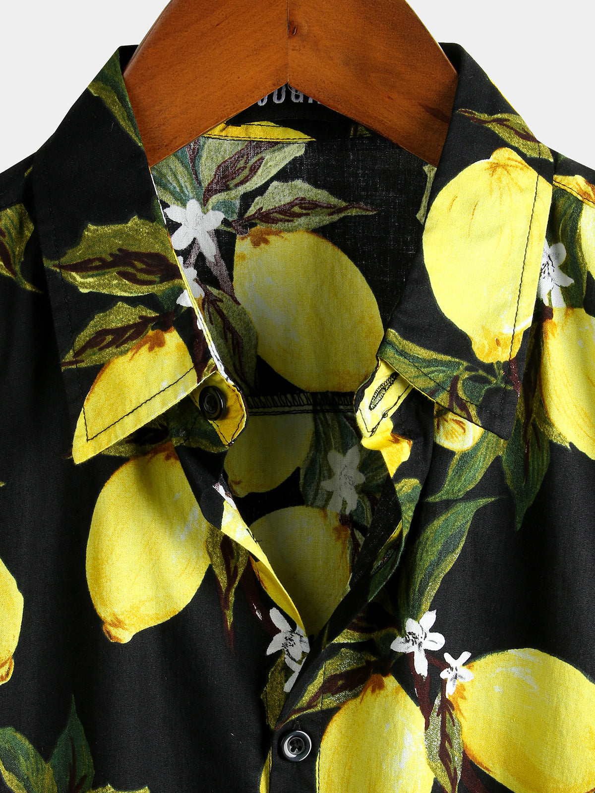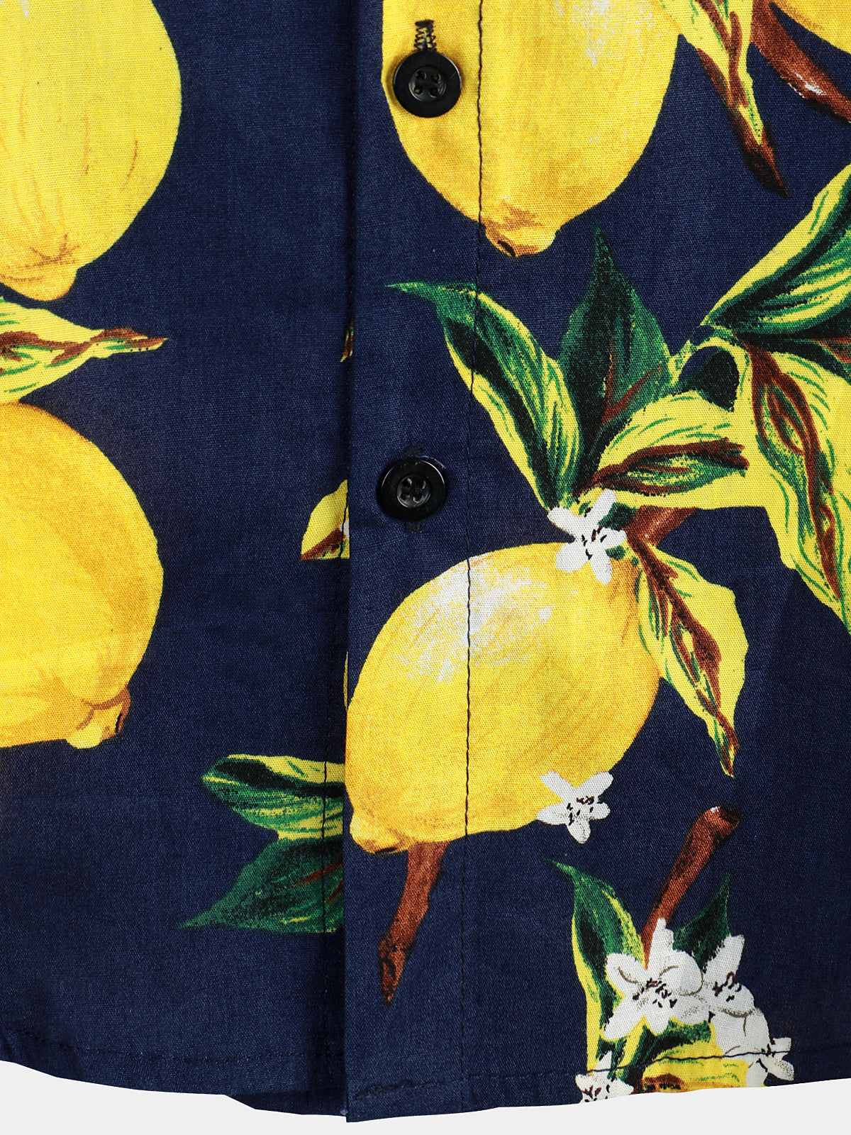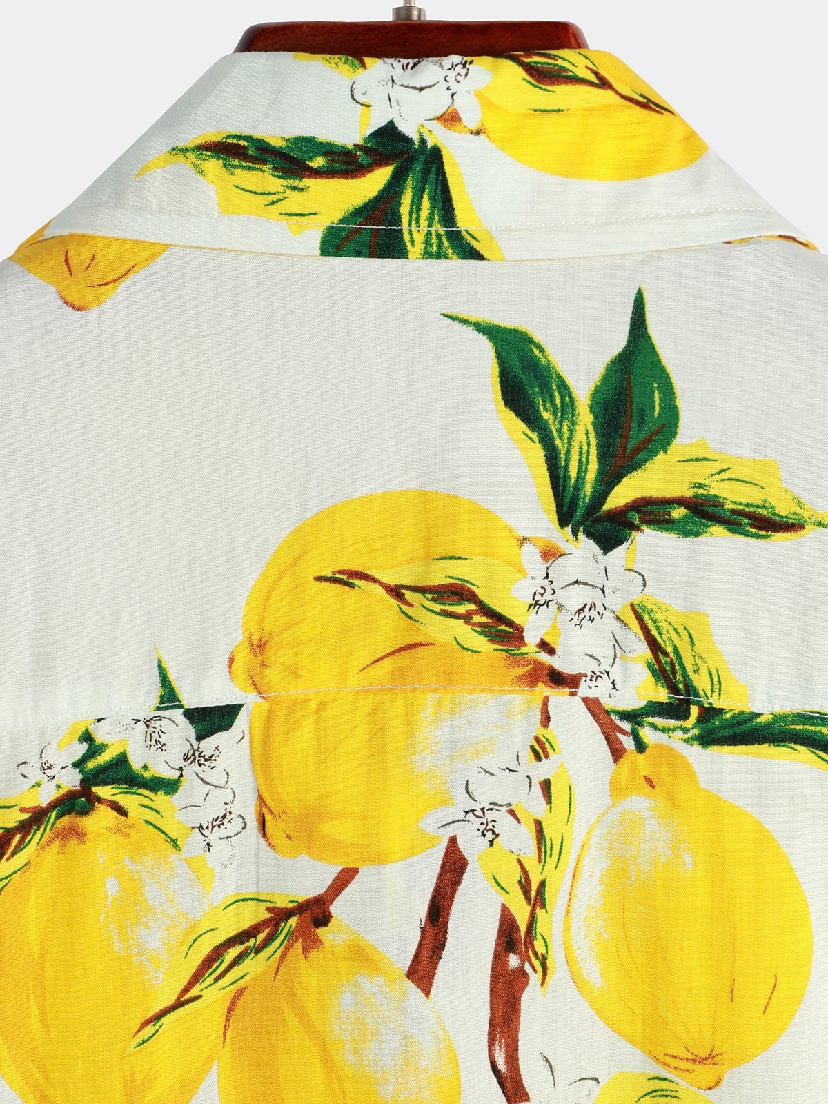 Men's Lemon Print Short Sleeve Hawaiian Shirt