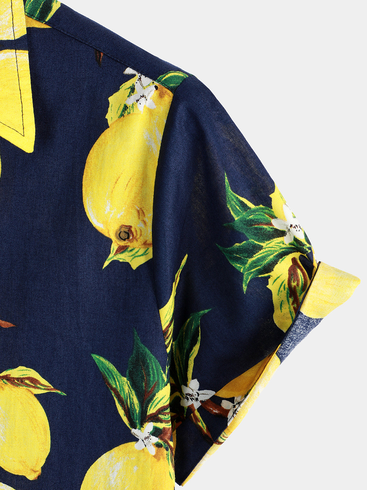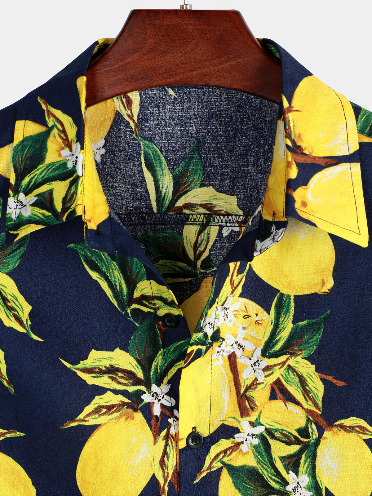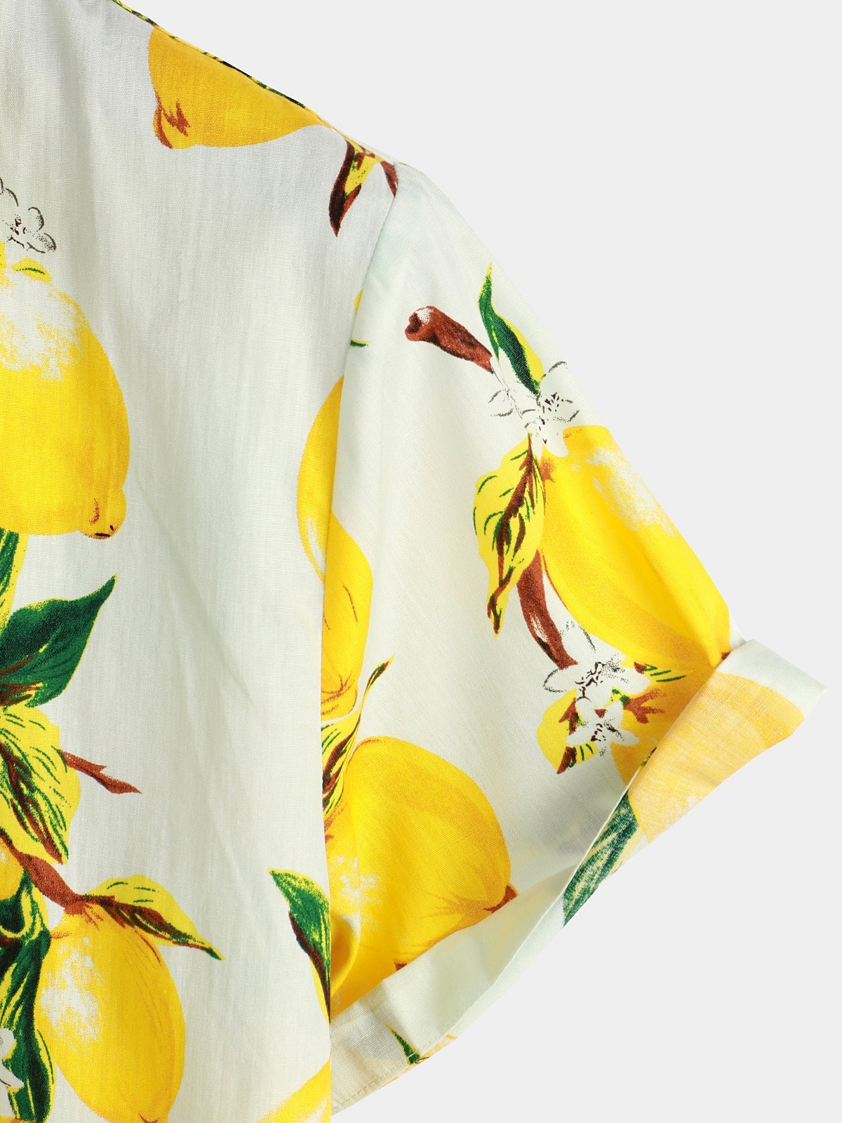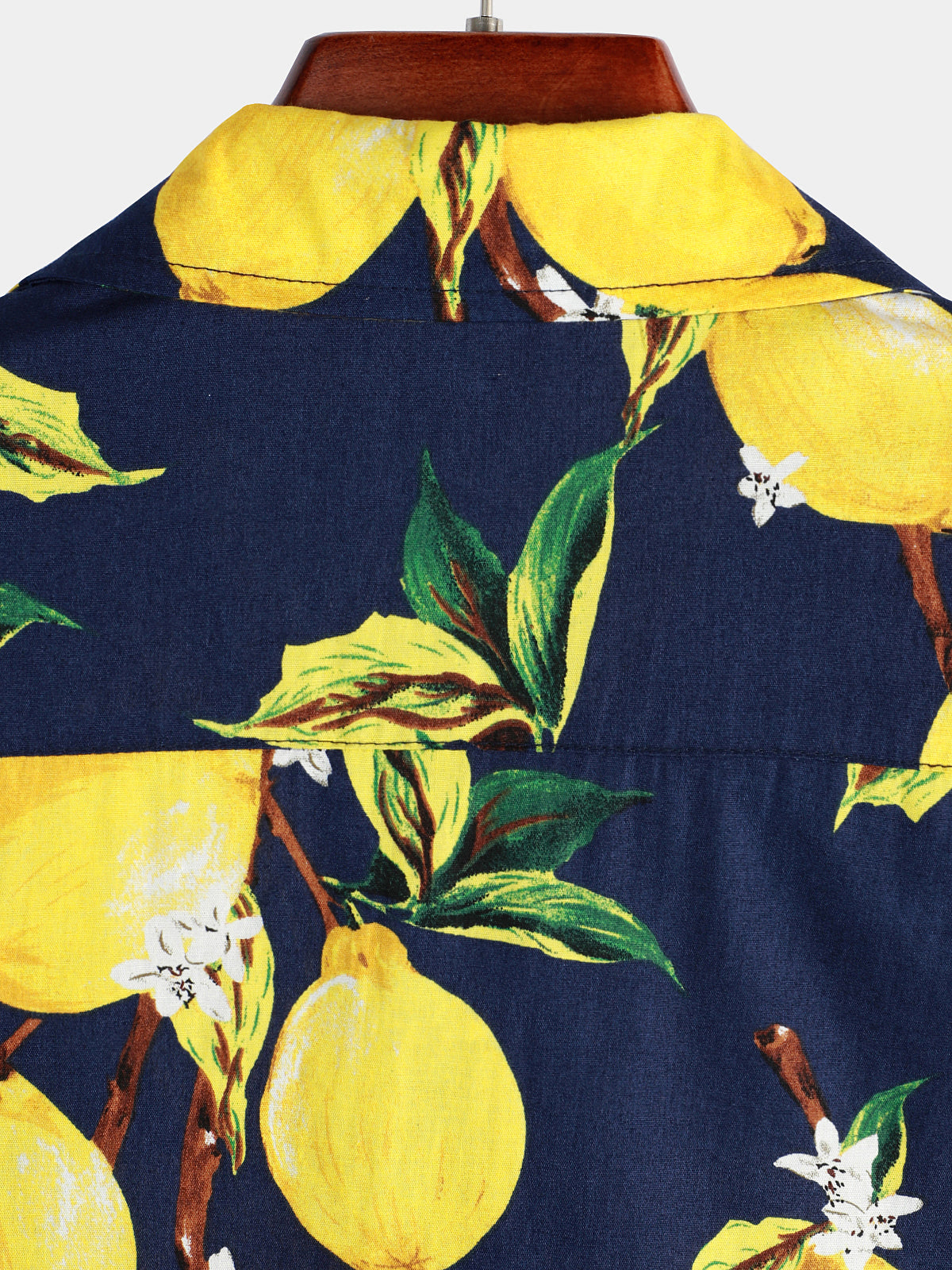 Men's Lemon Print Short Sleeve Hawaiian Shirt