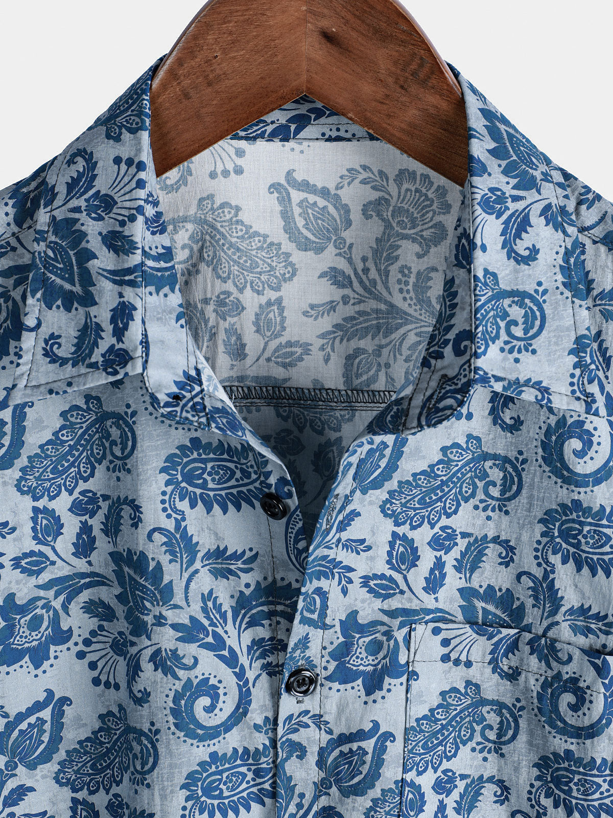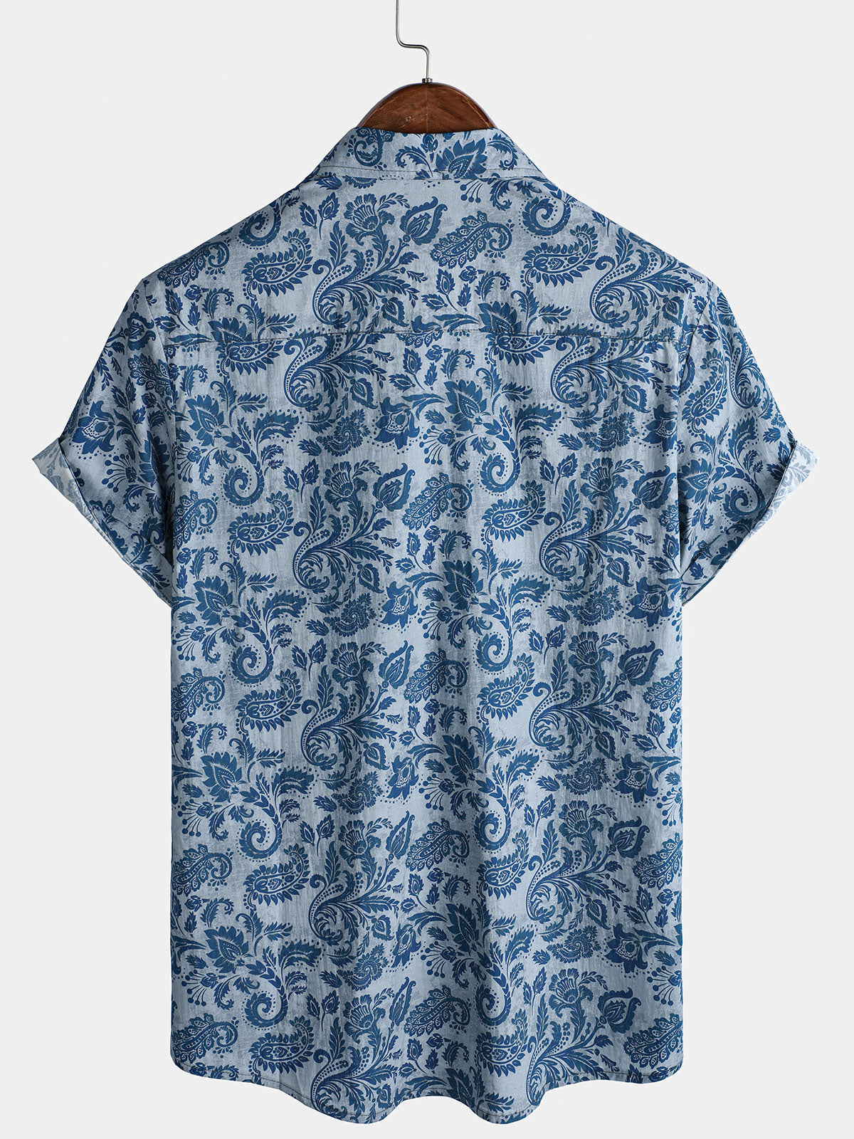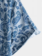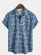 Men's Paisley Floral Blue Casual Short Sleeve Shirt