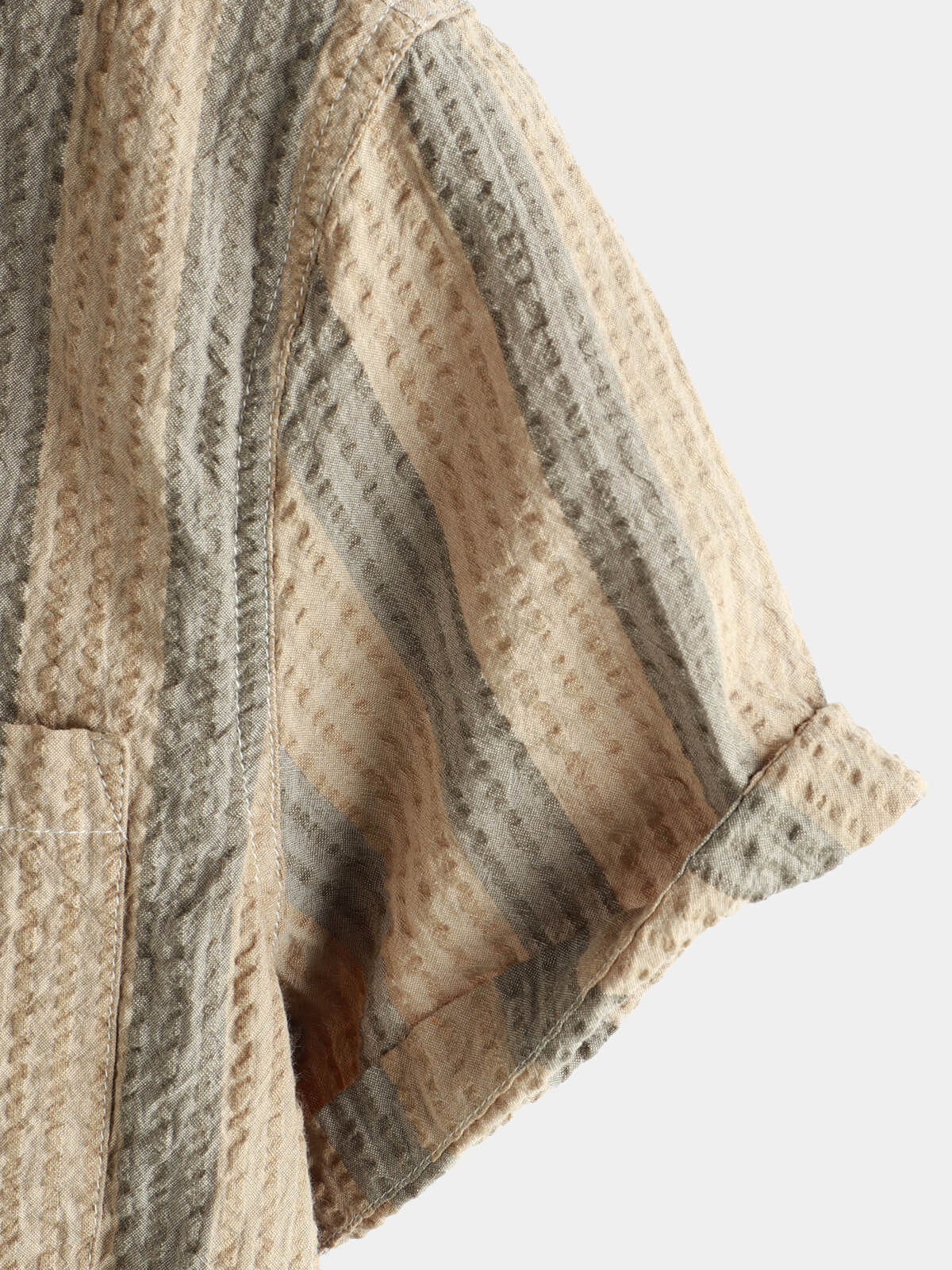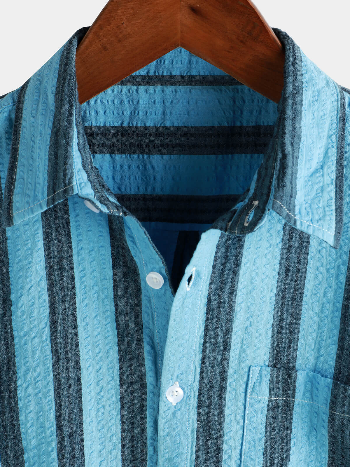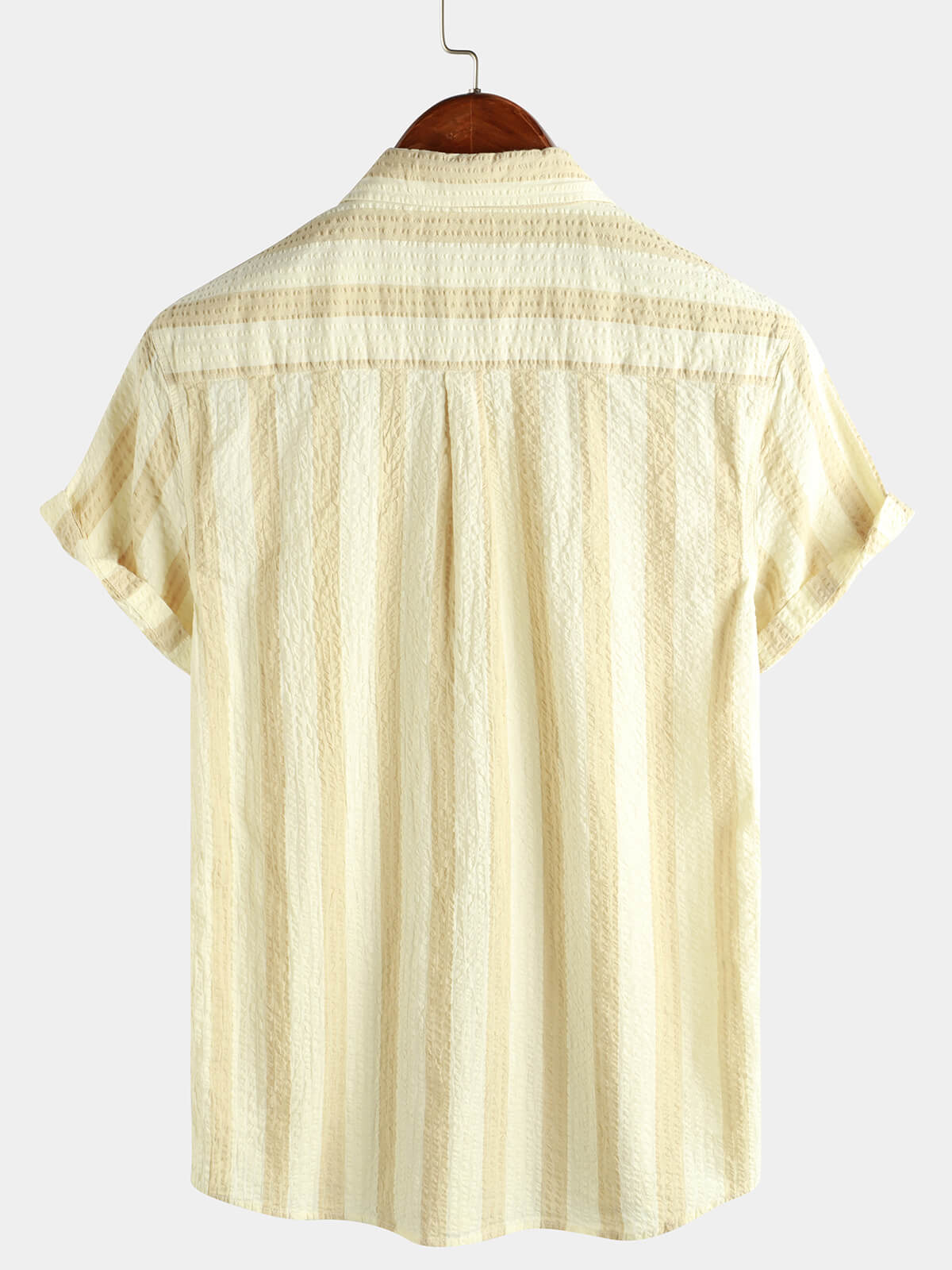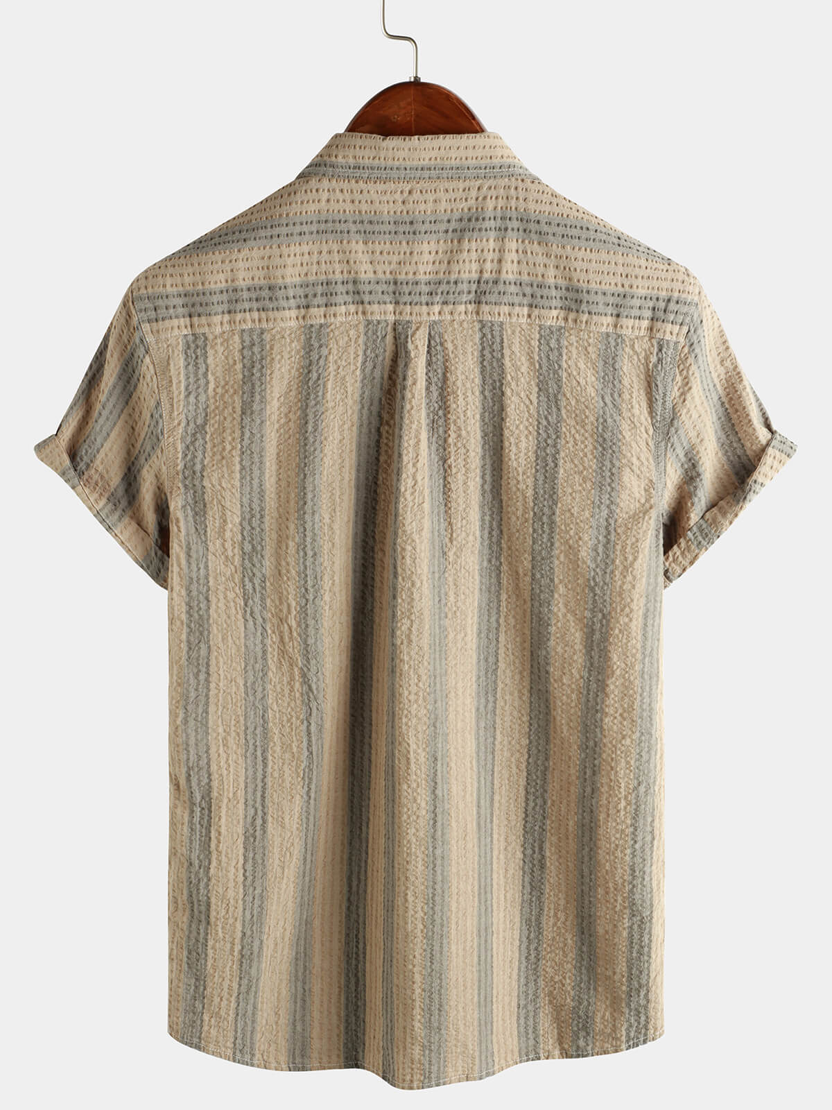 Men's Striped Cotton Casual Pocket Hawaiian Holiday Button Up Short Sleeve Shirt