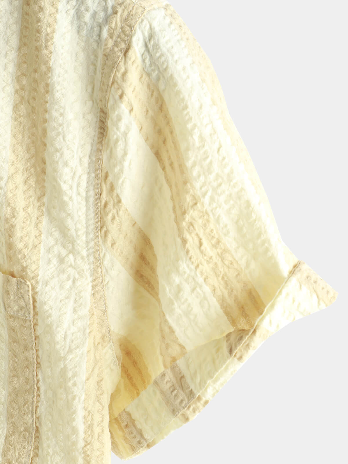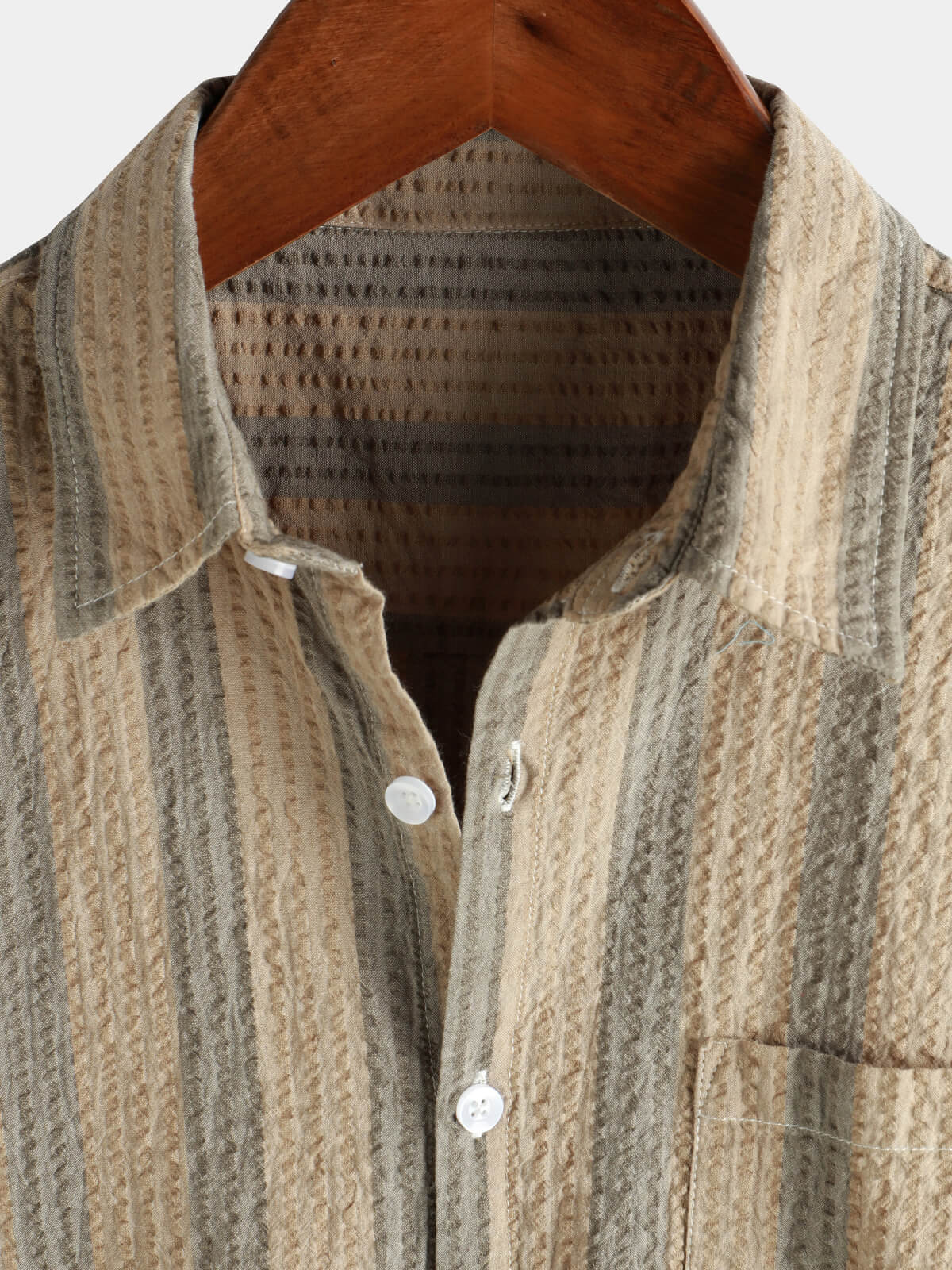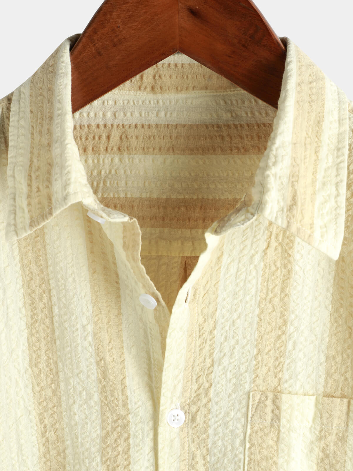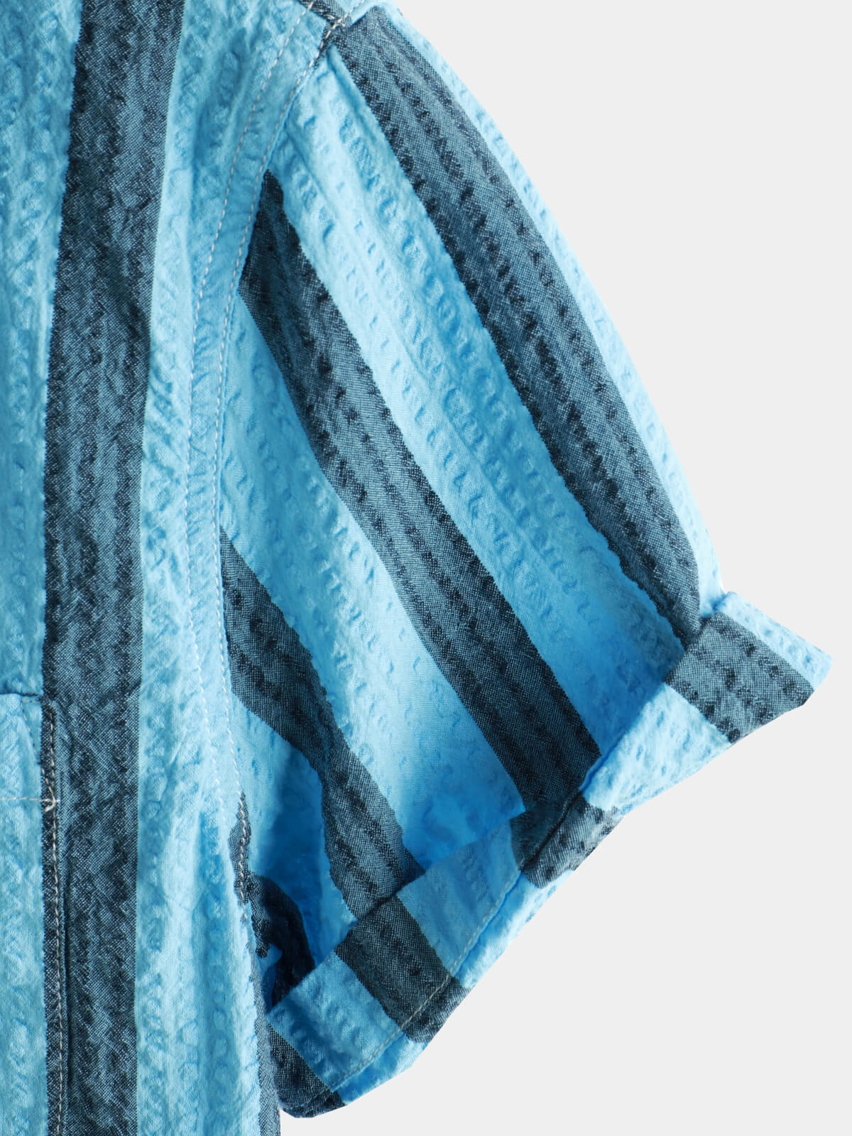 Men's Striped Cotton Casual Pocket Hawaiian Holiday Button Up Short Sleeve Shirt