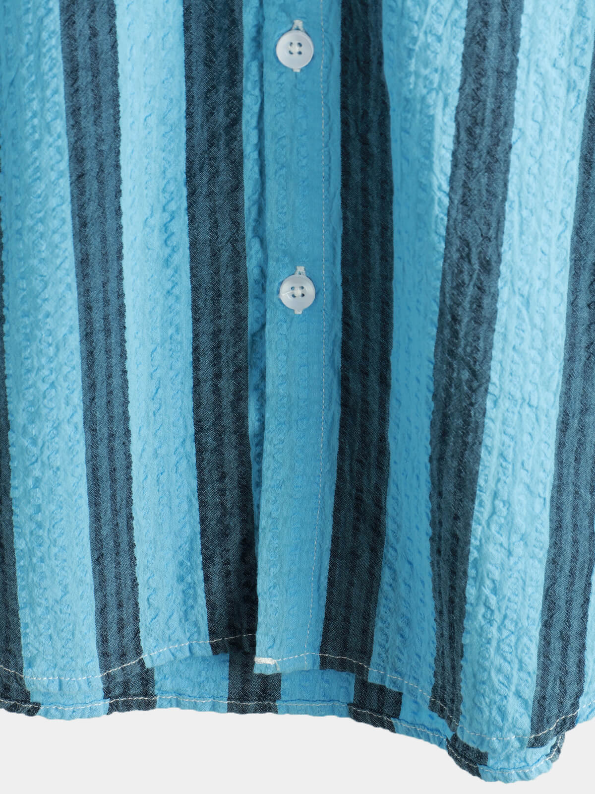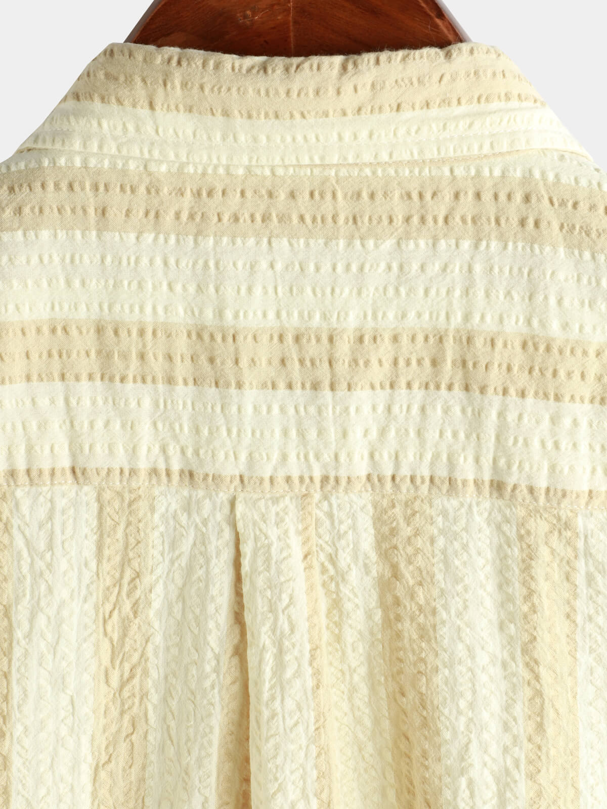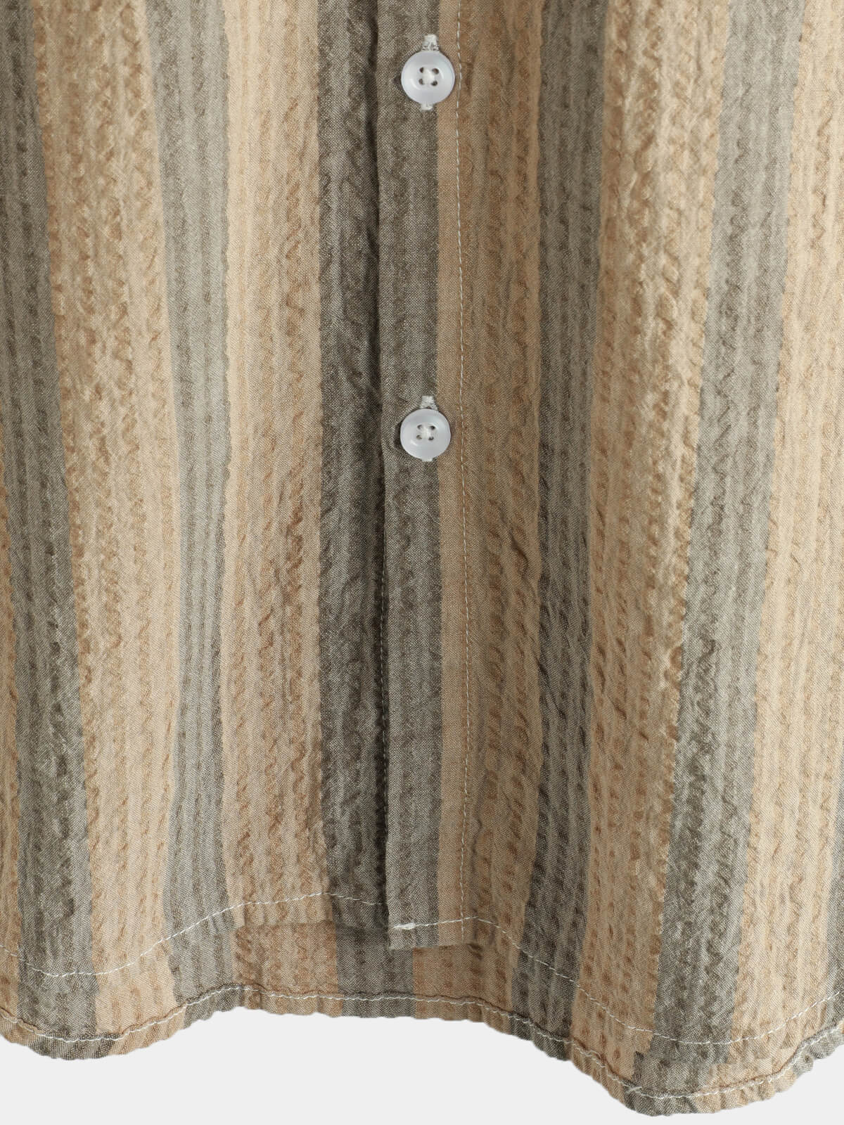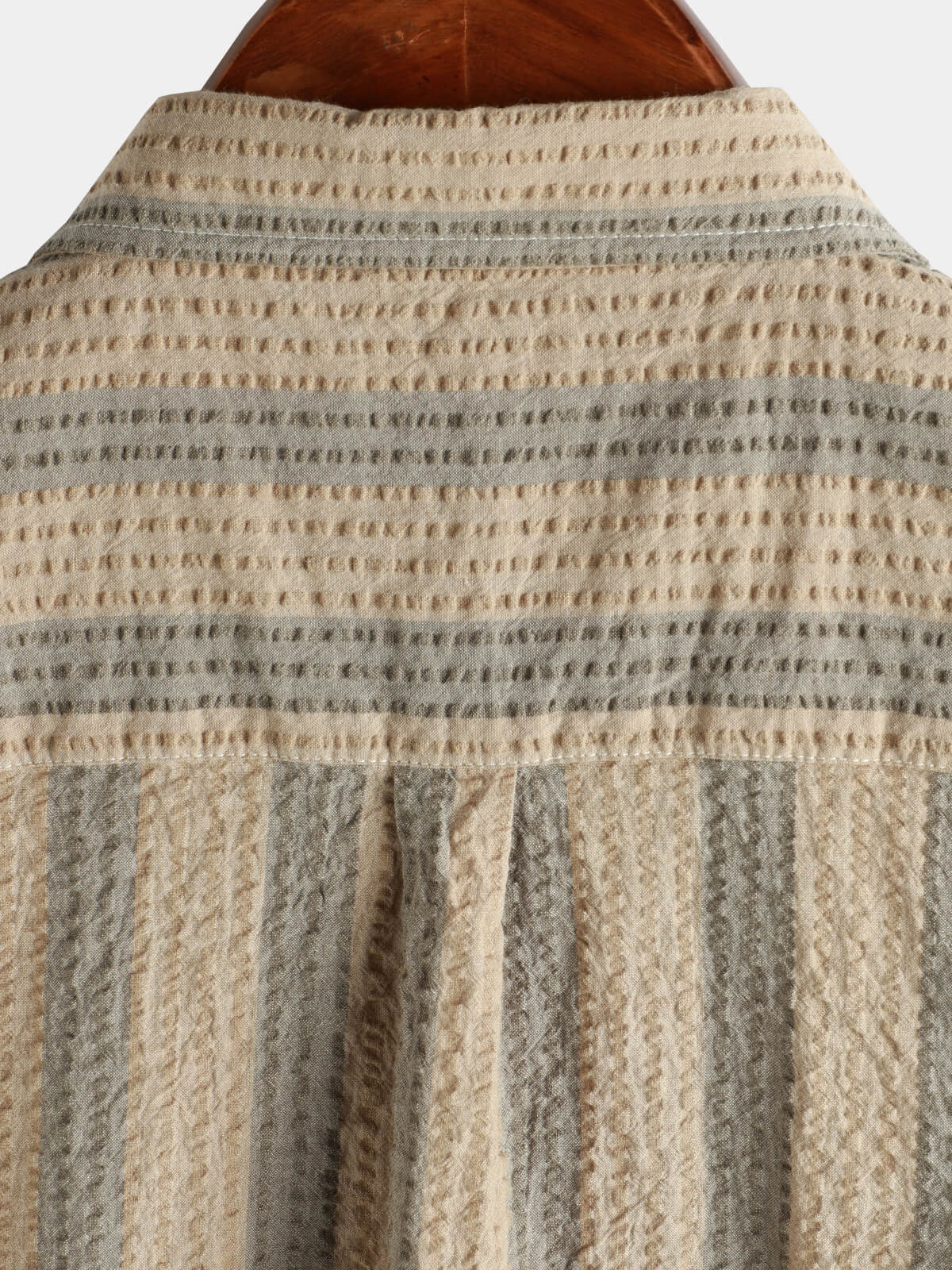 Men's Striped Cotton Casual Pocket Hawaiian Holiday Button Up Short Sleeve Shirt